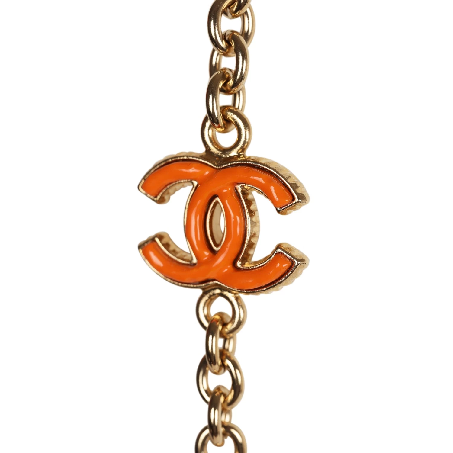 This 23A Chanel CC Beaded Long Chain Necklace is in Orange and Gold Metal, features a long gold chain necklace with orange enamel CC’s and beads, with lobster clasp closure.
