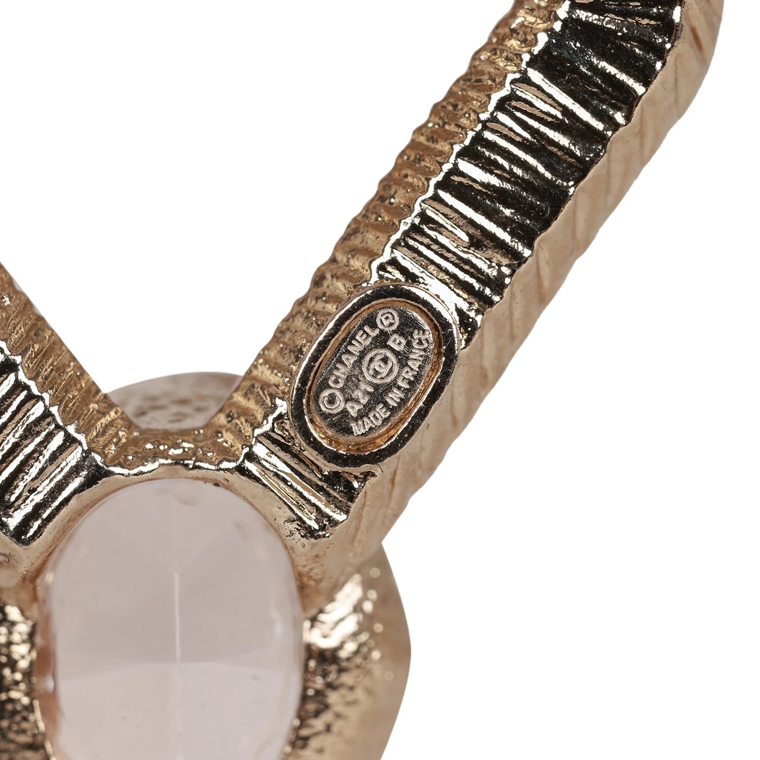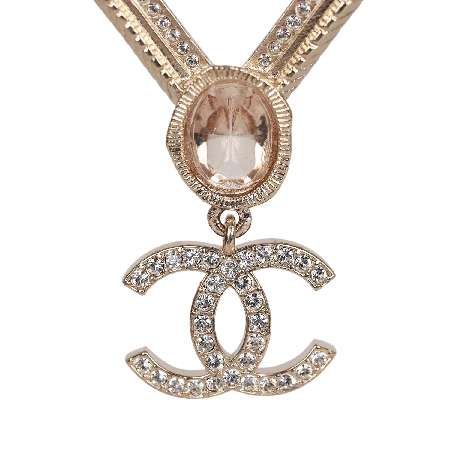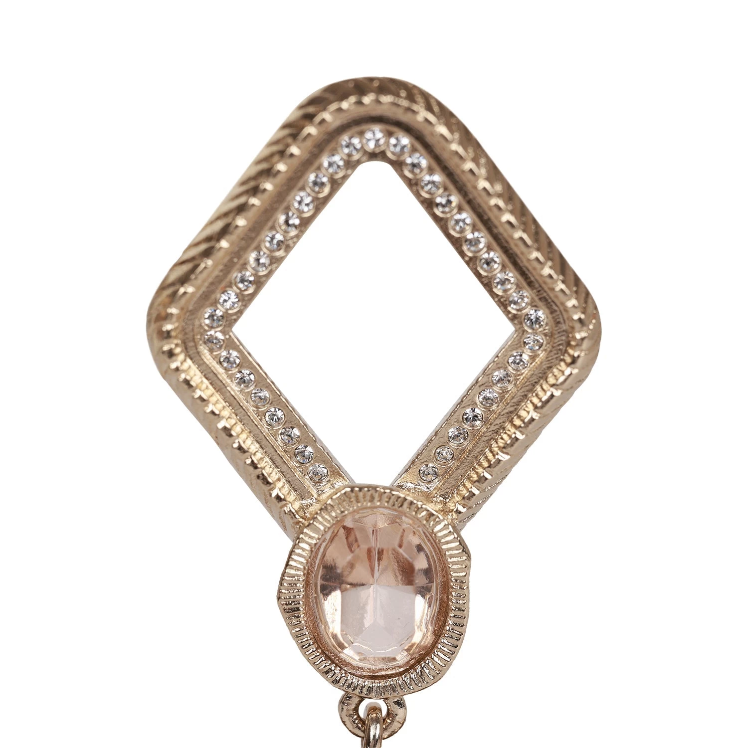 These 21A Chanel Rhombus earrings are in gold metal, featuring pink stones with dangling crystal embellished CC logos.