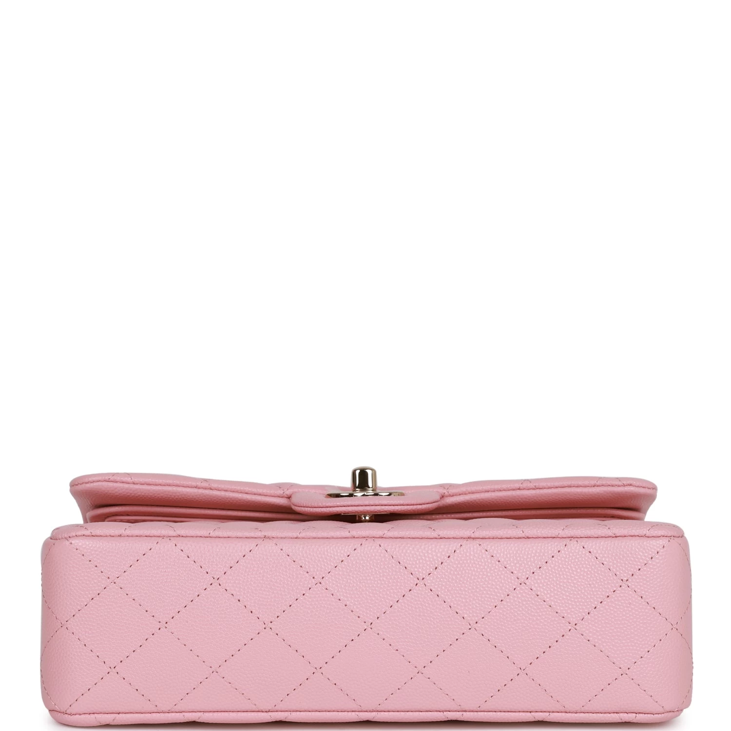 This Small Classic Flap Bag is in pink caviar leather with light gold hardware and features a front flap with CC turnlock closure, halfmoon back pocket and adjustable interwoven light gold tone chain link and pink leather shoulder/crossbody strap.