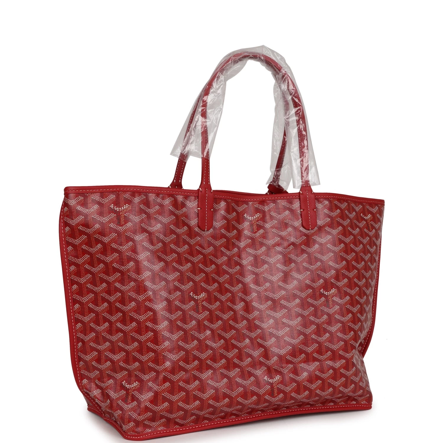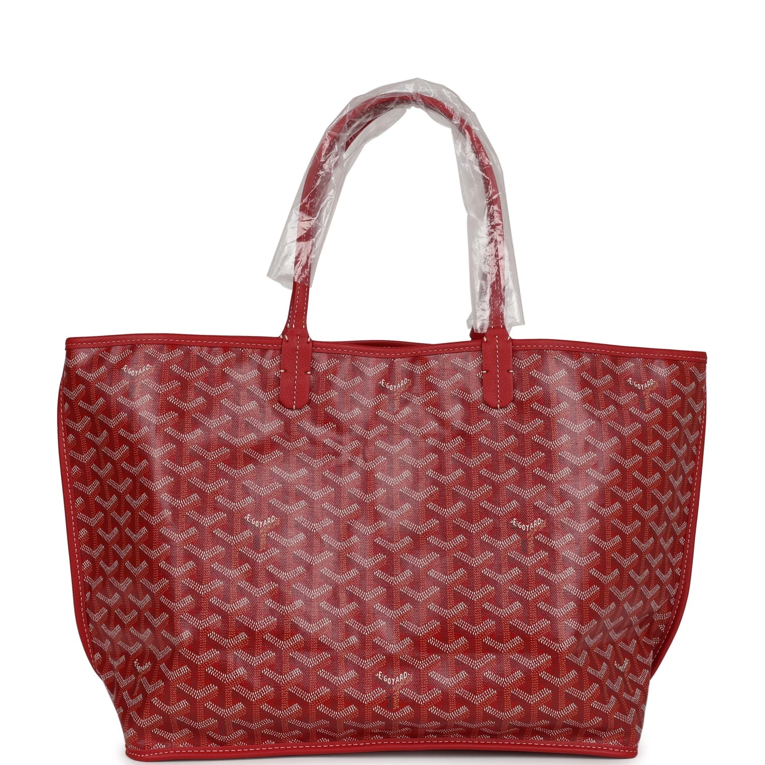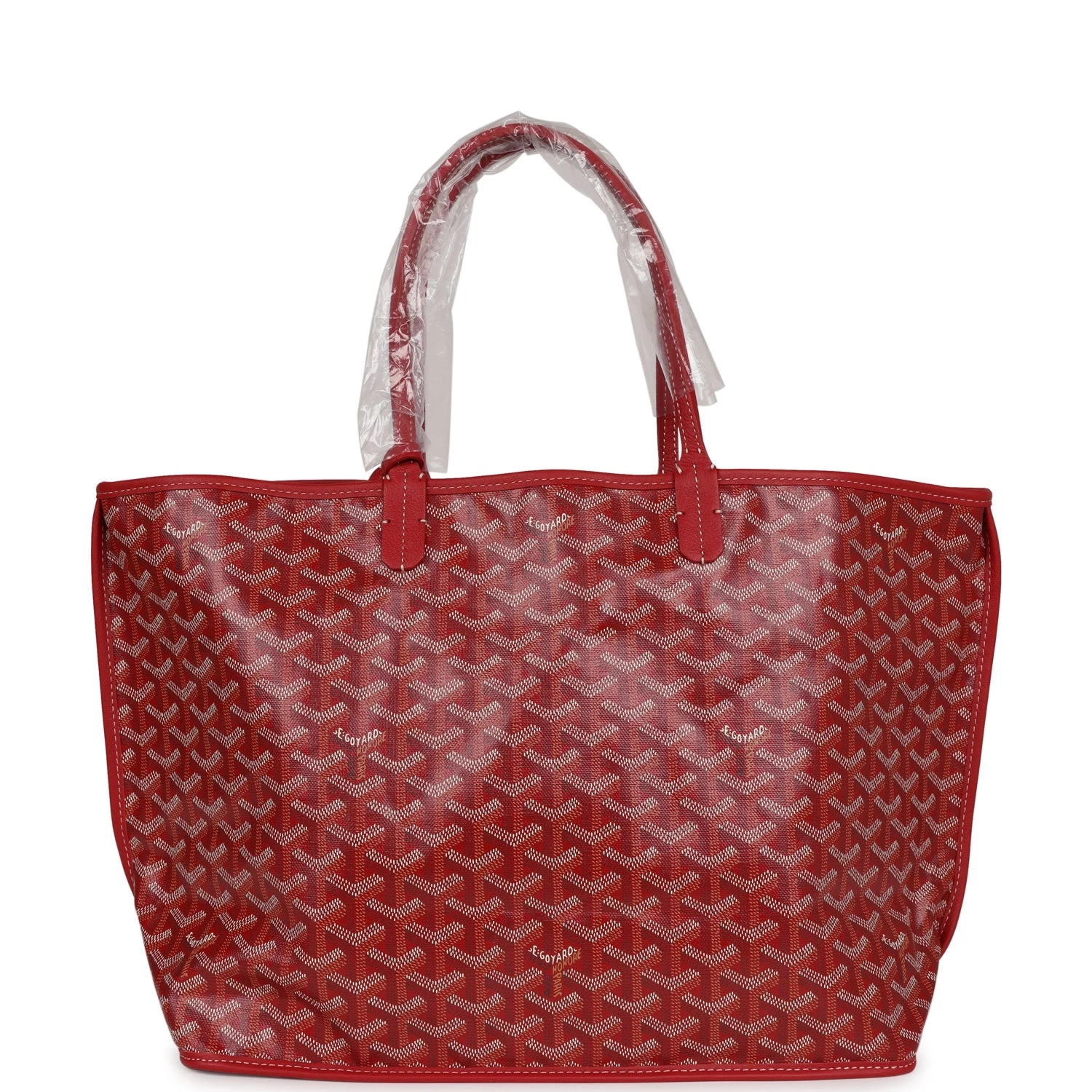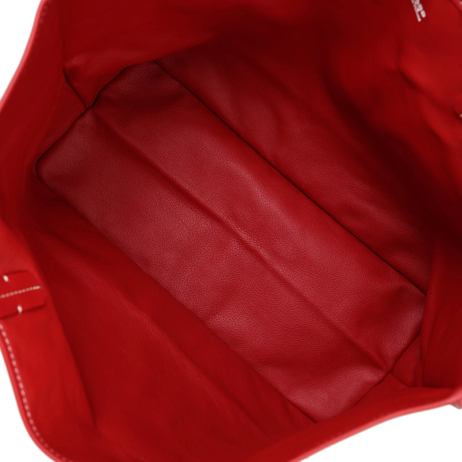 This Goyard Red Anjou PM Bag is in Goyardine Canvas with palladium hardware, tonal stitching, red Chevroches Calfskin lining, and a detachable red coin purse.
