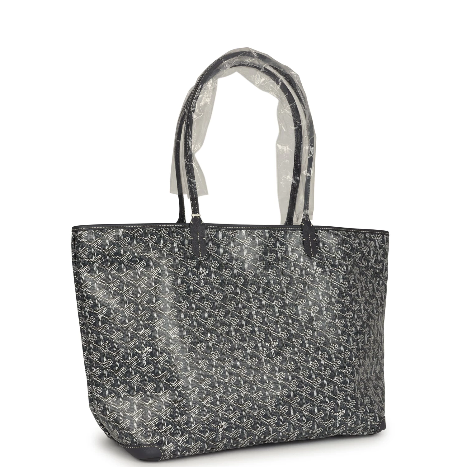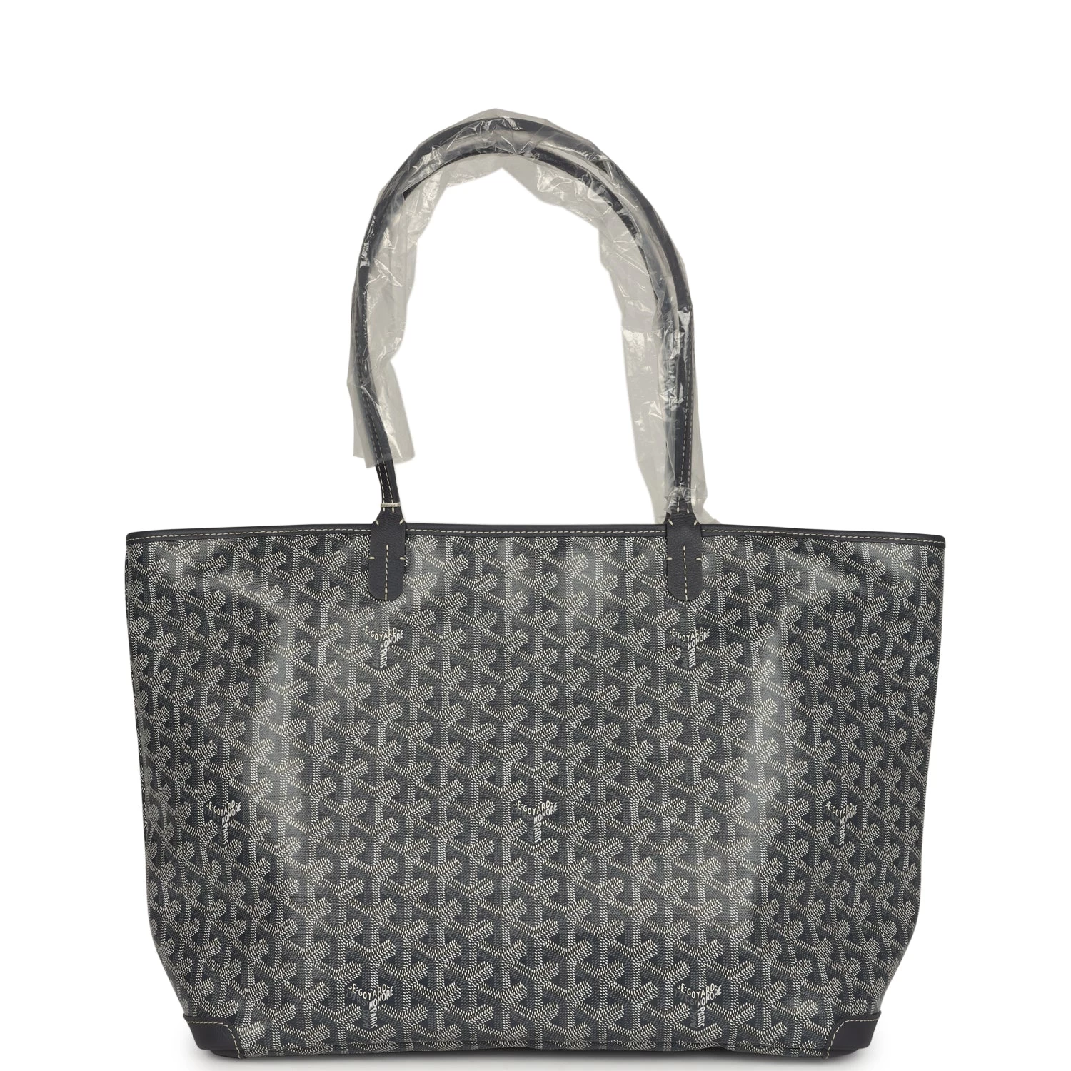 This Artois MM tote bag is in grey Goyardine canvas and tan leather trim with palladium hardware and features tan leather handles and trim, tonal stitching, and top zip closure.