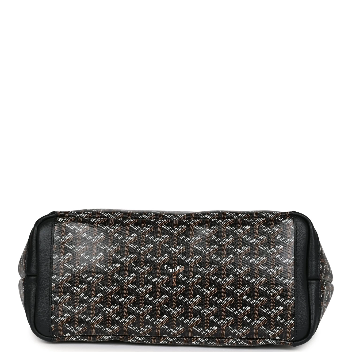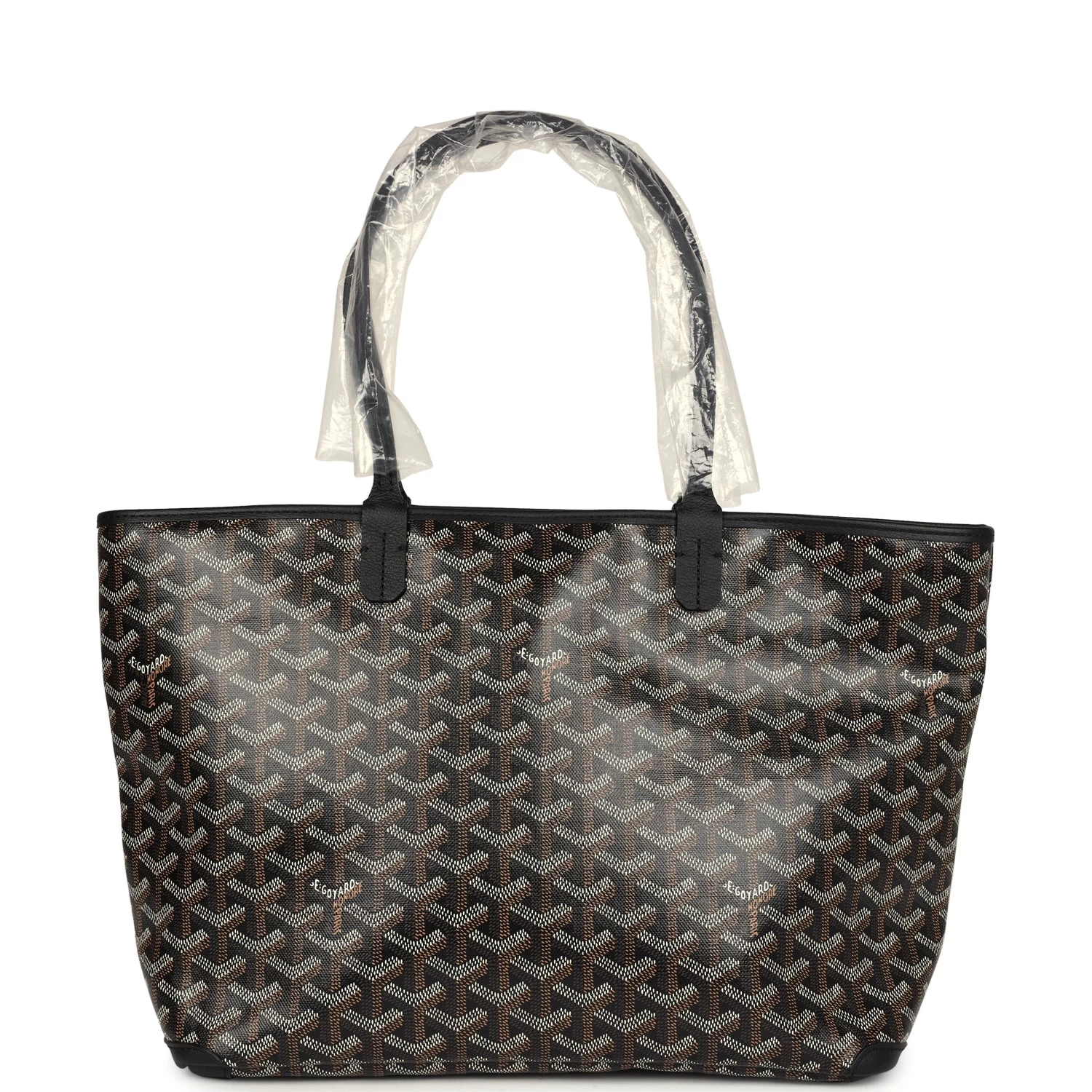 This Artois MM tote is of Black Goyardine canvas and Chevroches Calfskin leather with palladium tone hardware, features tonal stitching, two flat black leather handles, zip top closure and an inside floating pocket.