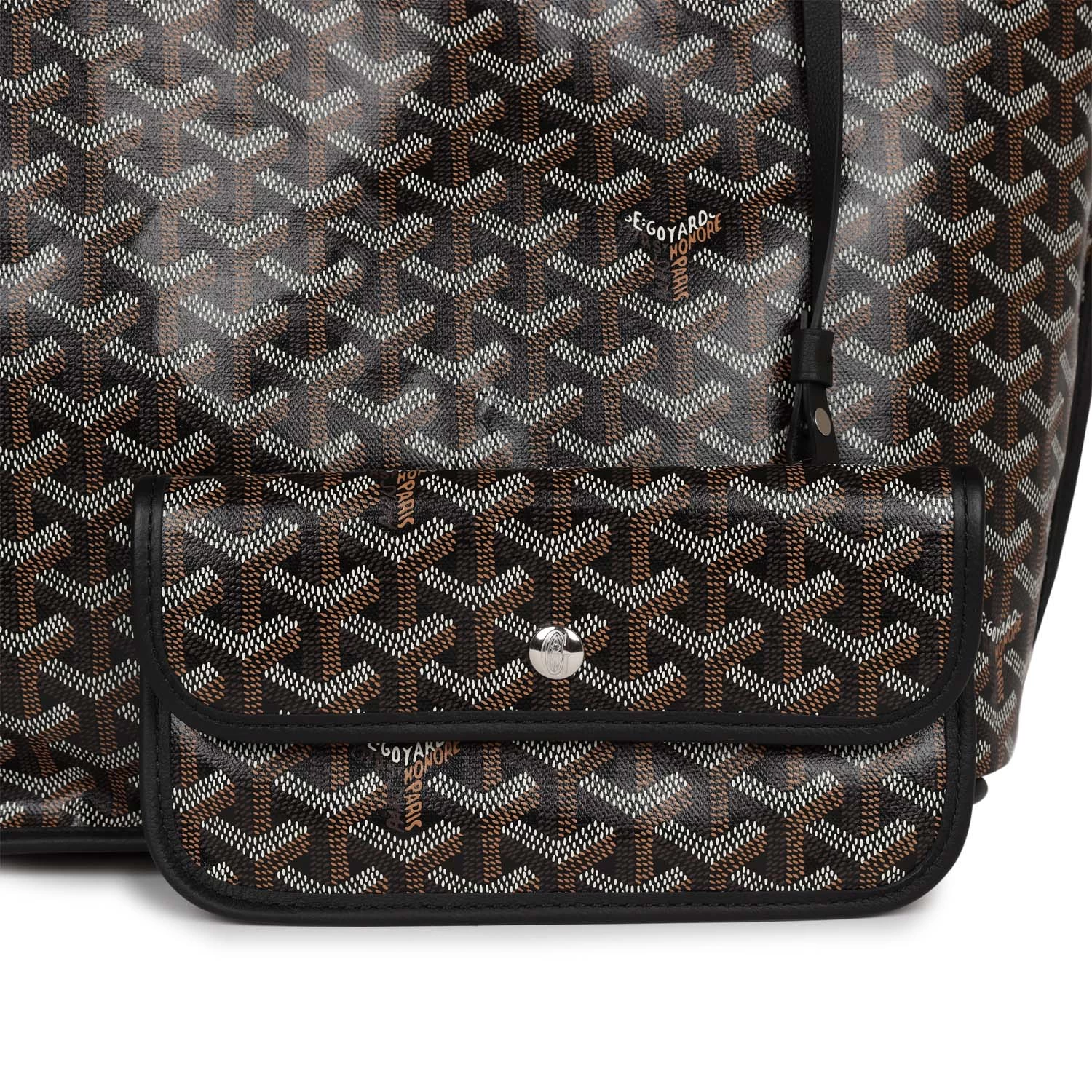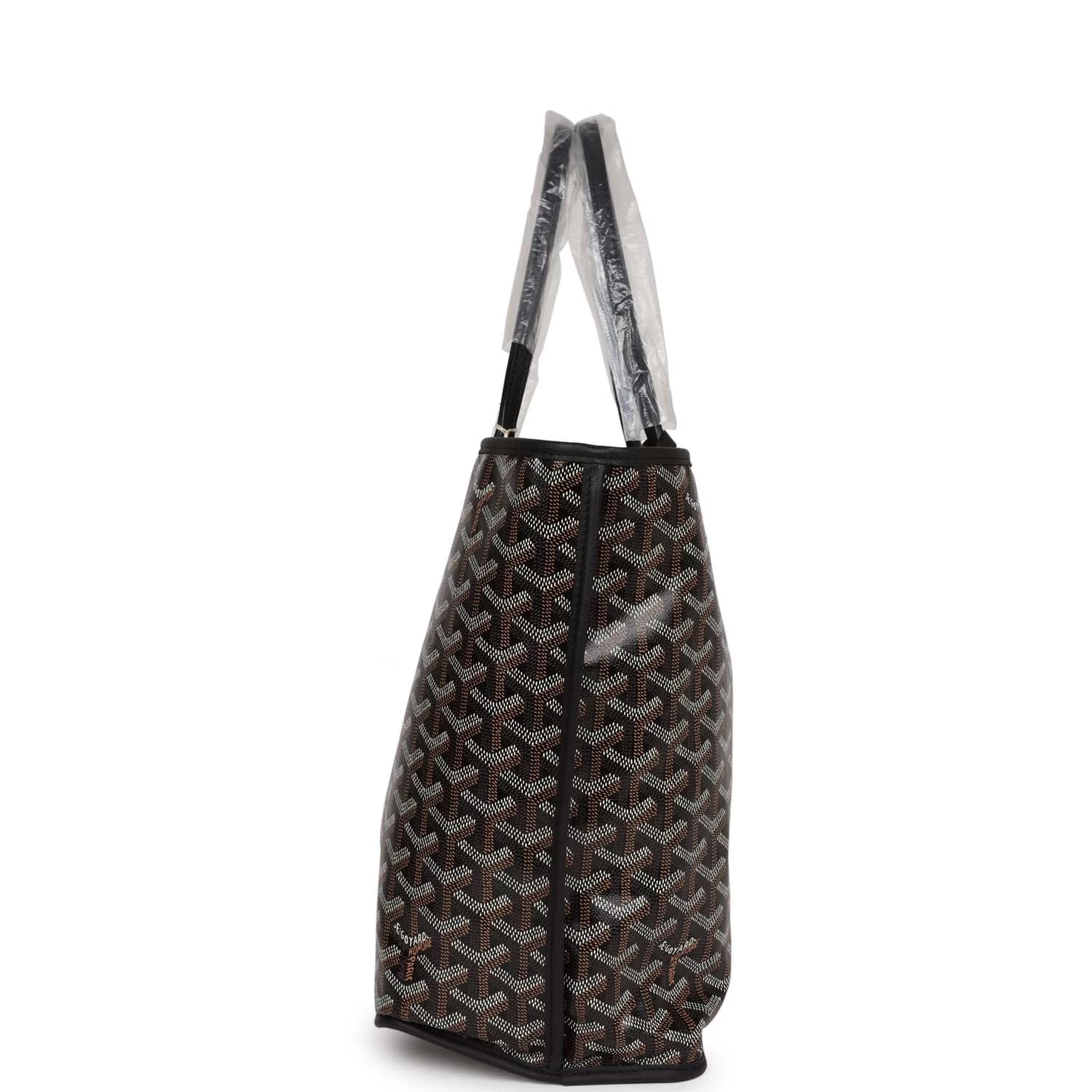 This Goyard Black Anjou PM Bag is in Goyardine Canvas with palladium hardware, tonal stitching, black Chevroches Calfskin lining, and a detachable black coin purse.