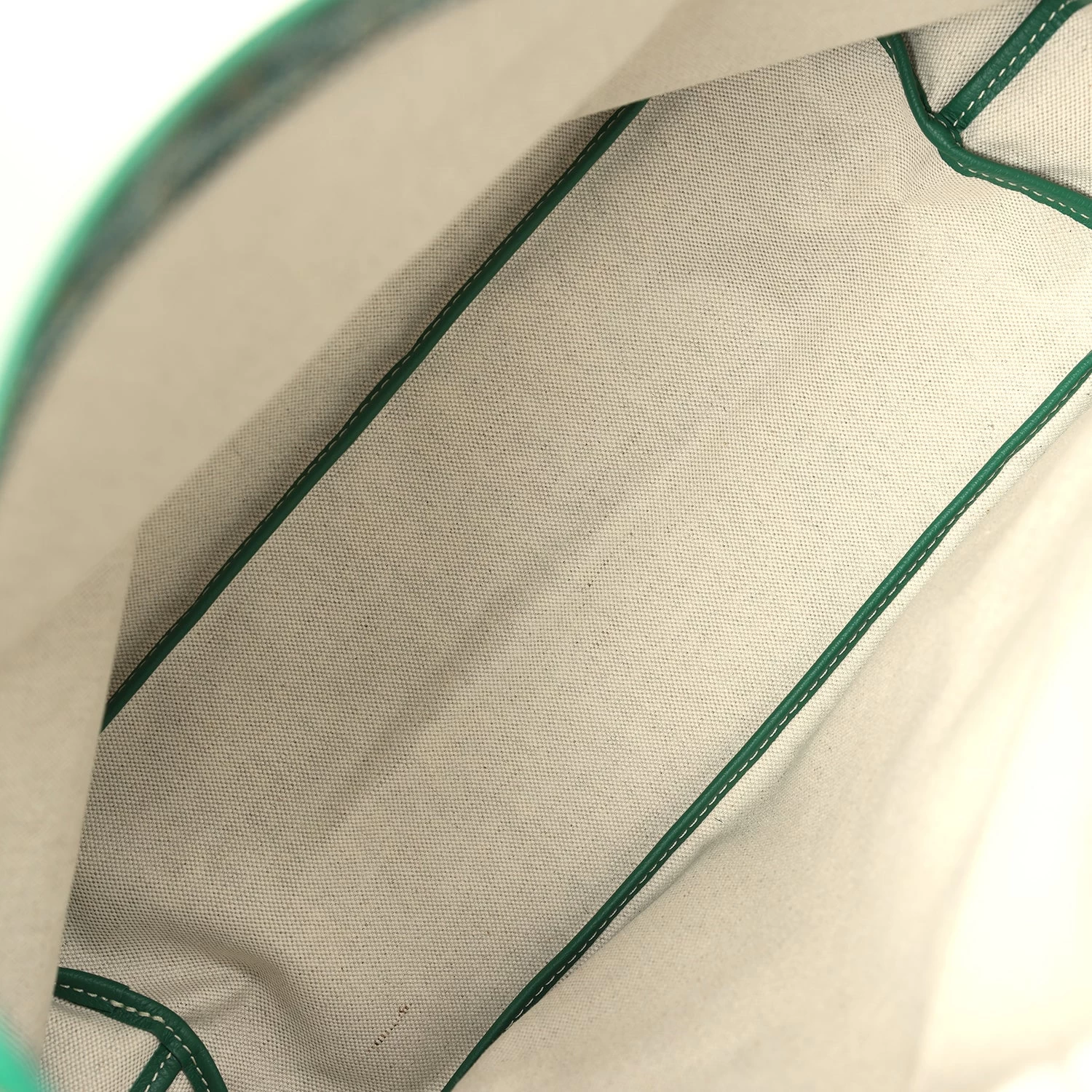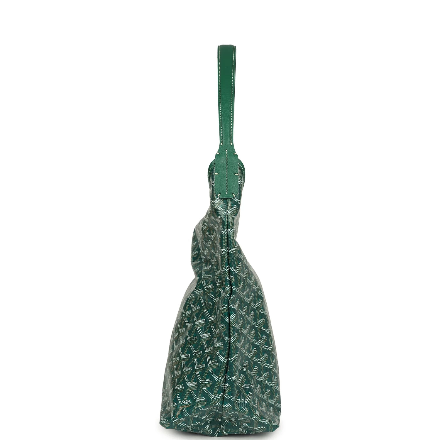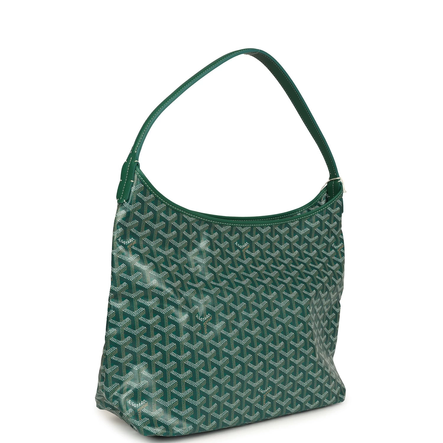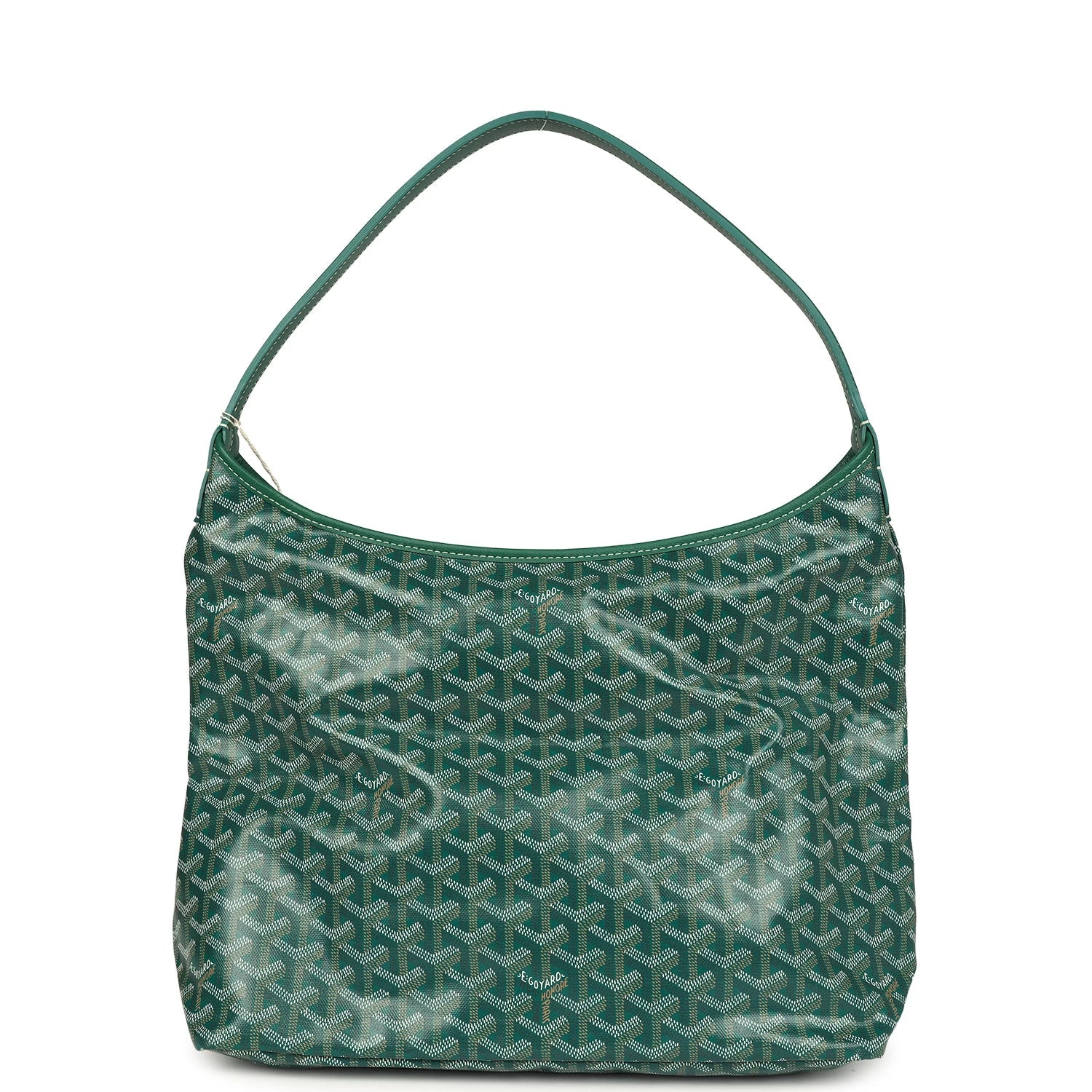 This Boheme Hobo bag is in green goyardine canvas with palladium hardware, contrast white stitching, chevroches calfskin lining, a zip closure, a detachable pouch, and a shoulder strap.