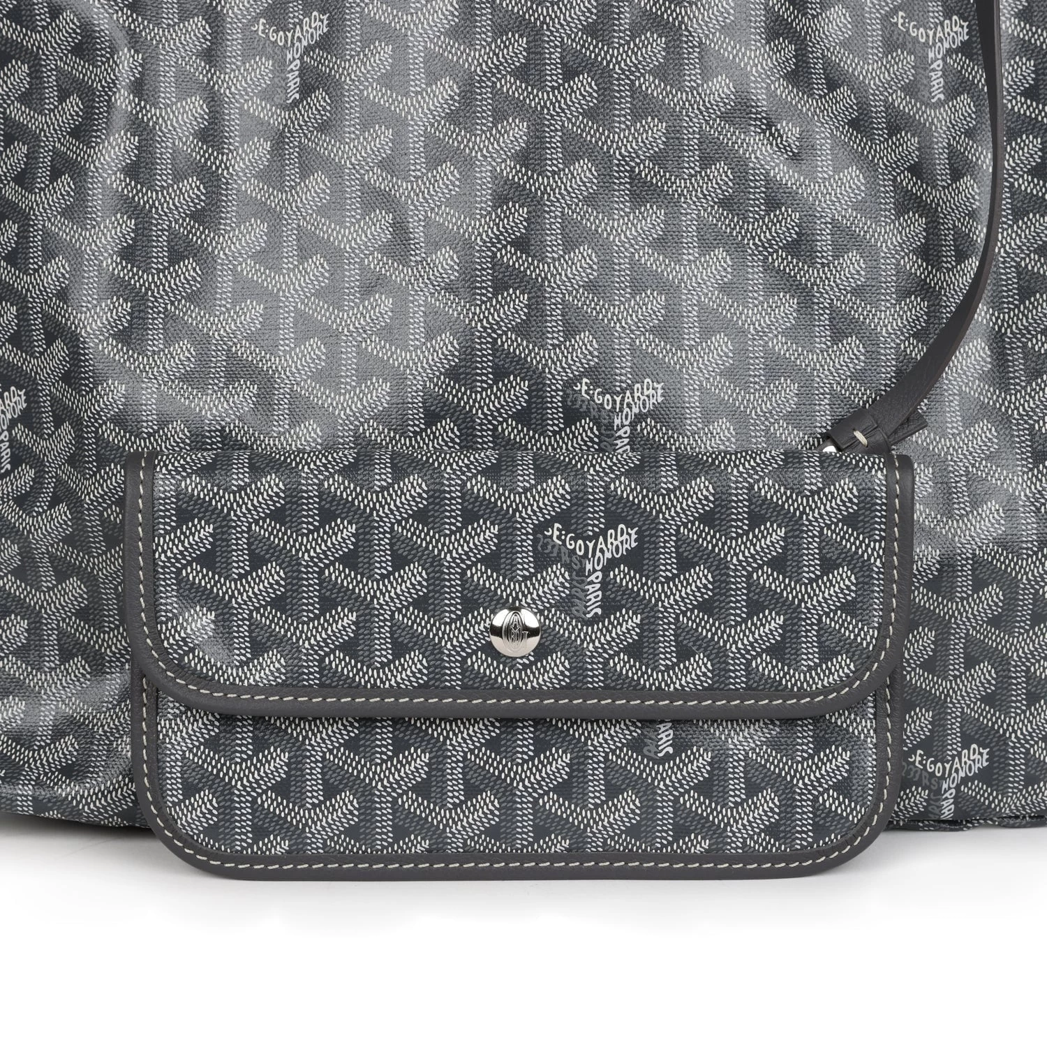 This St Louis GM tote bag is in Grey Goyardine canvas with palladium hardware, tonal stitching, and has a matching detachable button closure wallet.