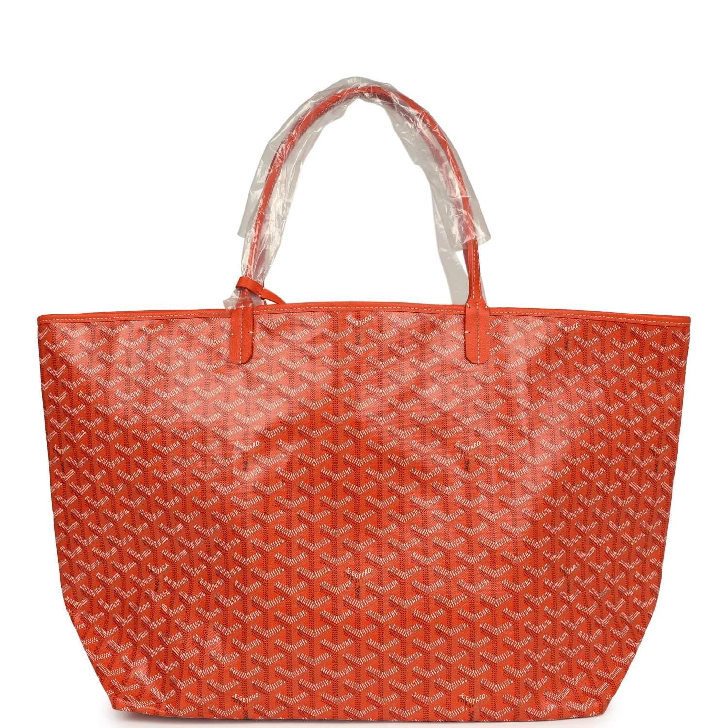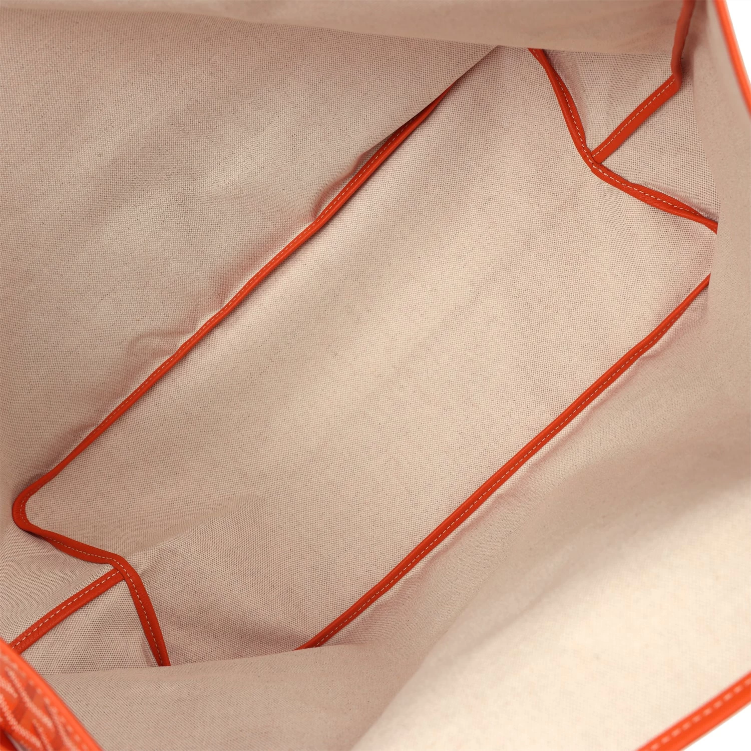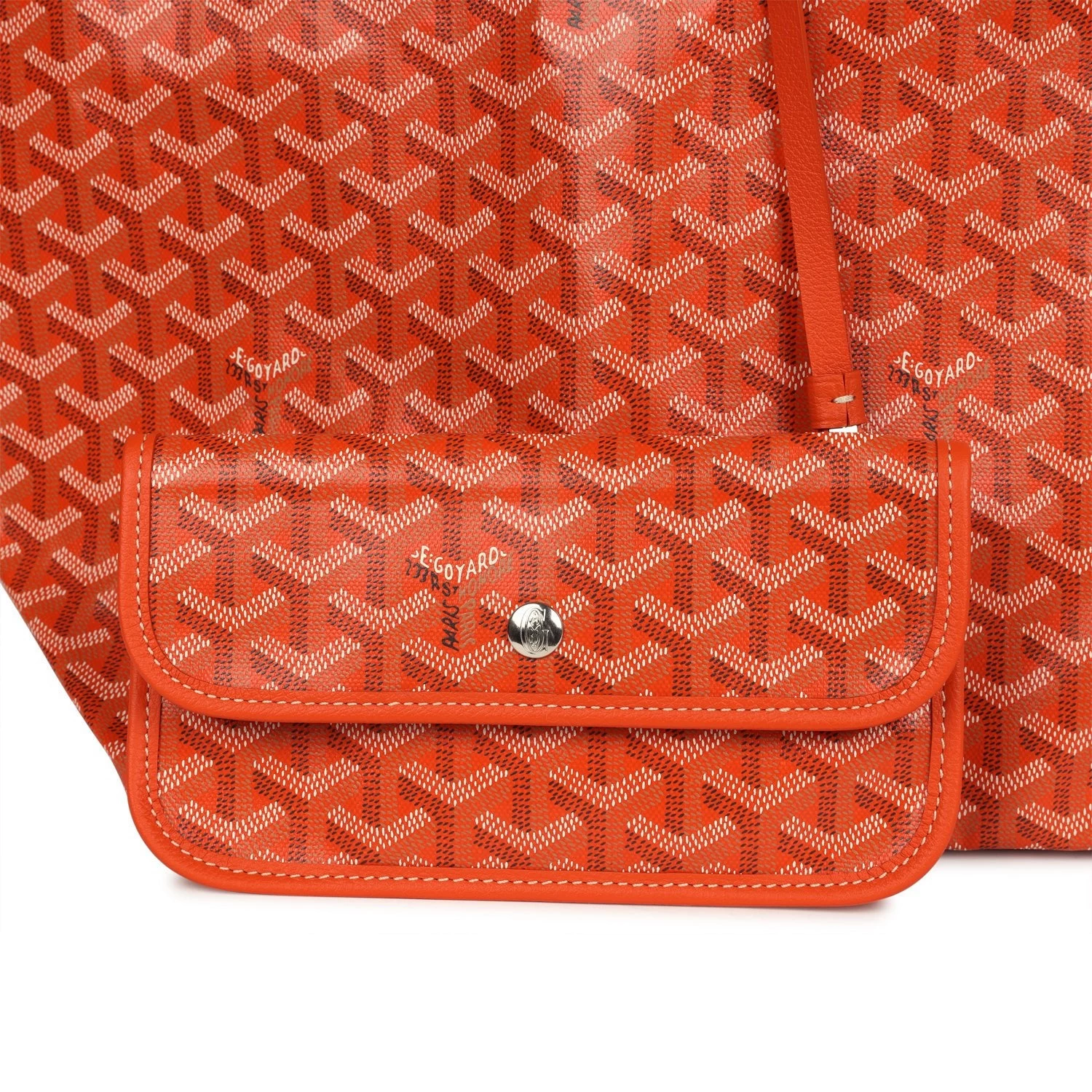This Goyard St. Louis Tote GM bag is in orange canvas with palladium hardware and has contrast white stitching, and a matching detachable button closure wallet