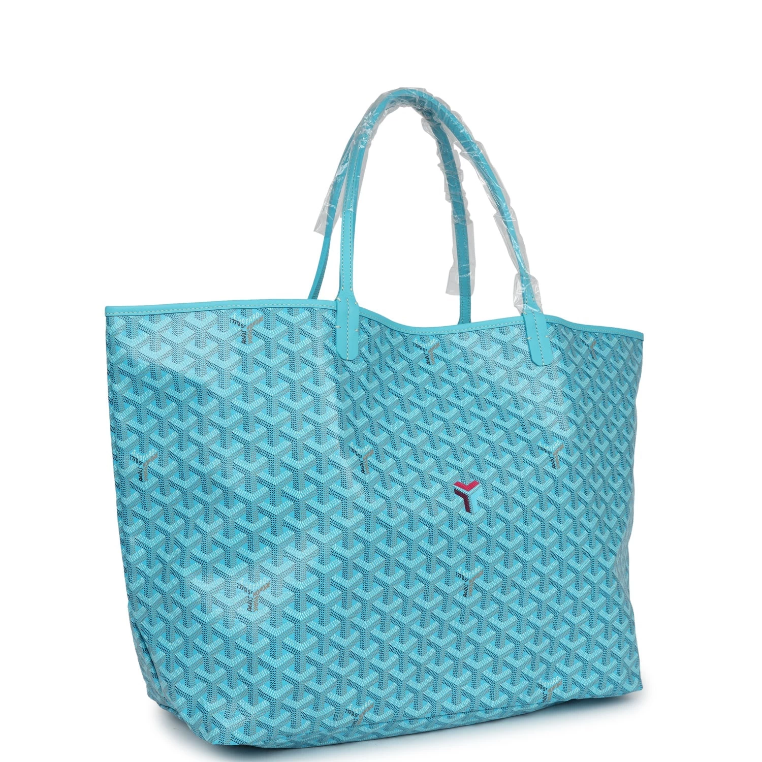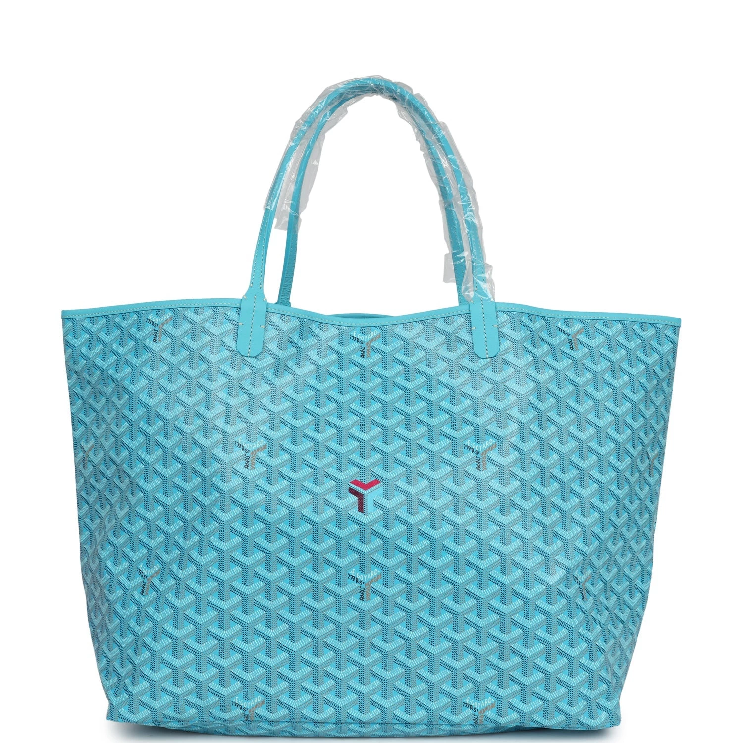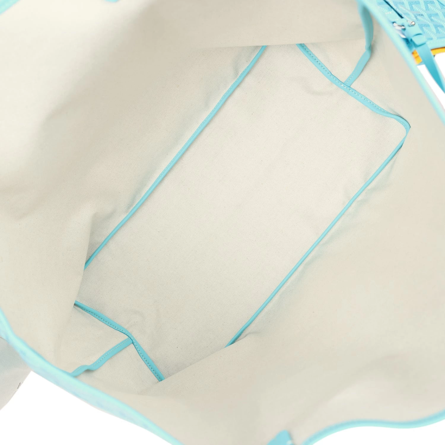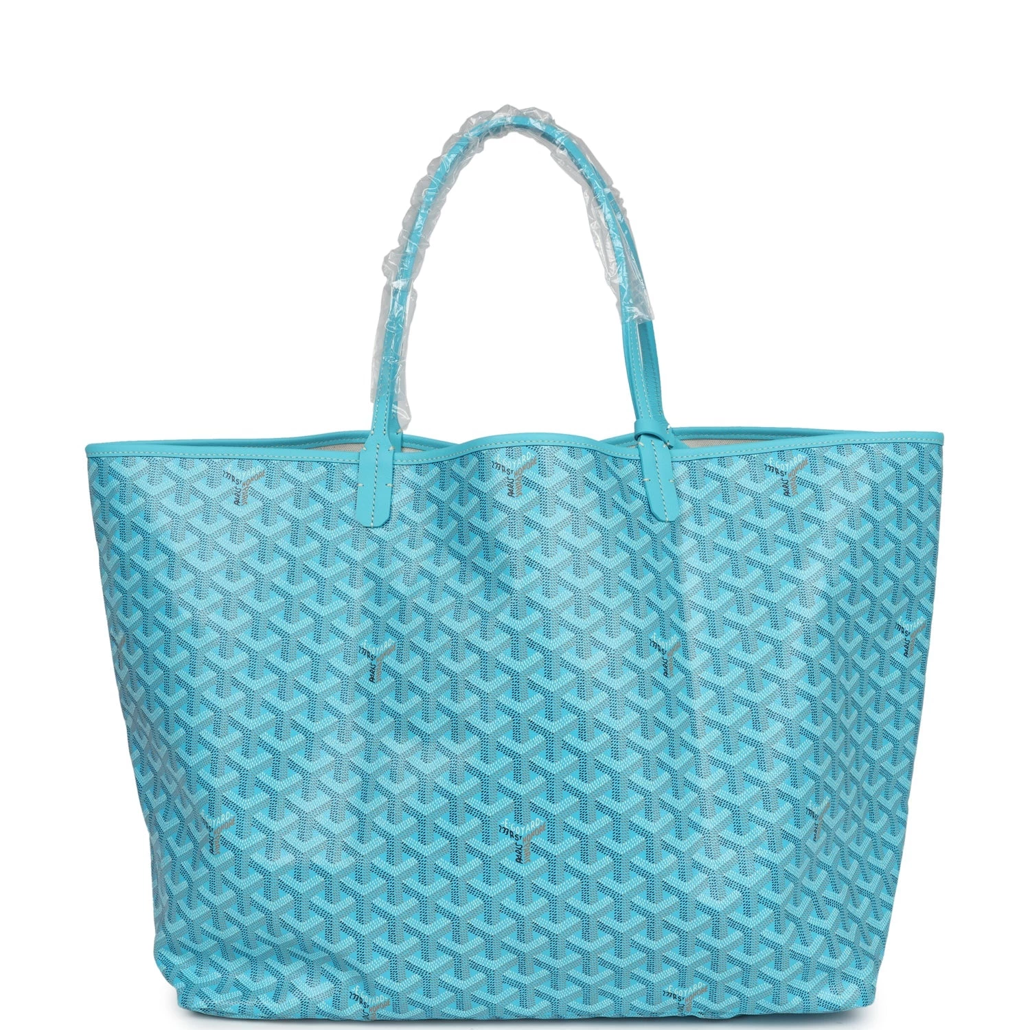 This Limited Edition St. Louis GM tote bag with a large Balise beach towel is in turquoise blue Goyardine coated canvas and chevroches calfskin leather with palladium hardware, contrast stitching, and comes matching detachable button closure wallet.