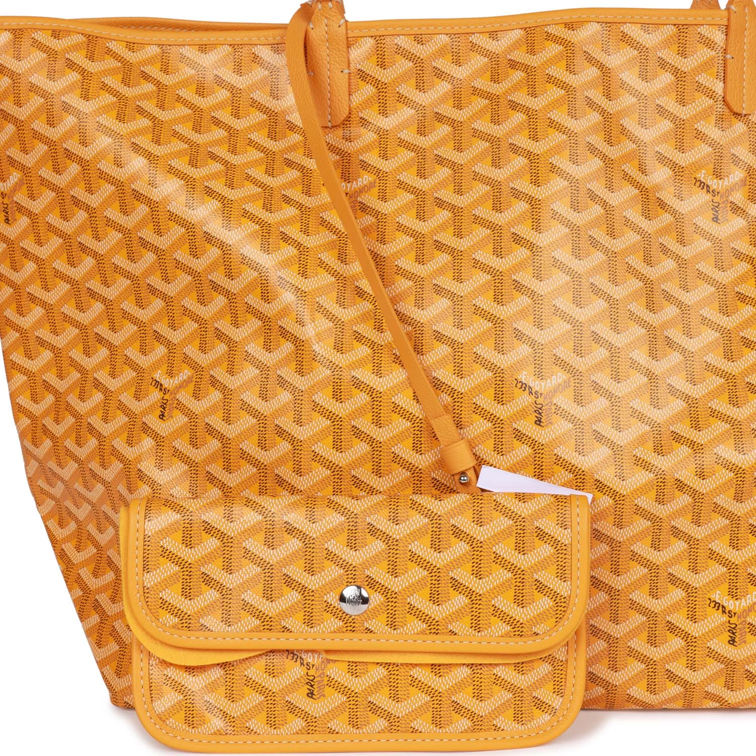 This St. Louis GM tote is of yellow Goyardine canvas with palladium hardware and features contrast stitching, and has a matching detachable button closure wallet