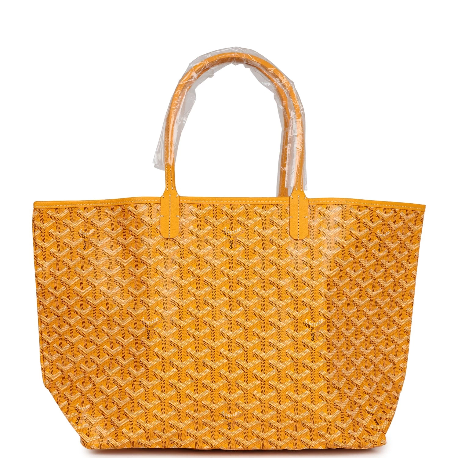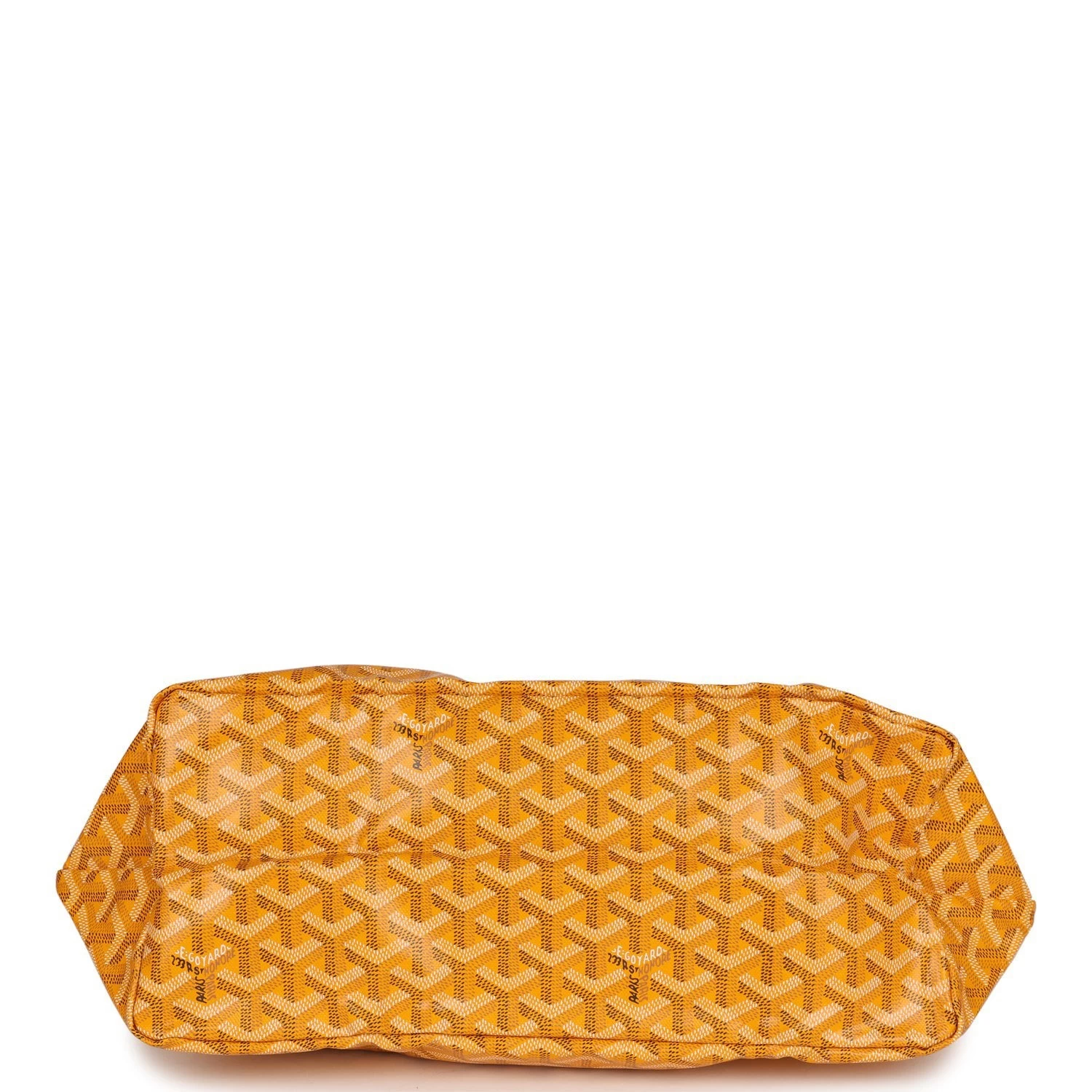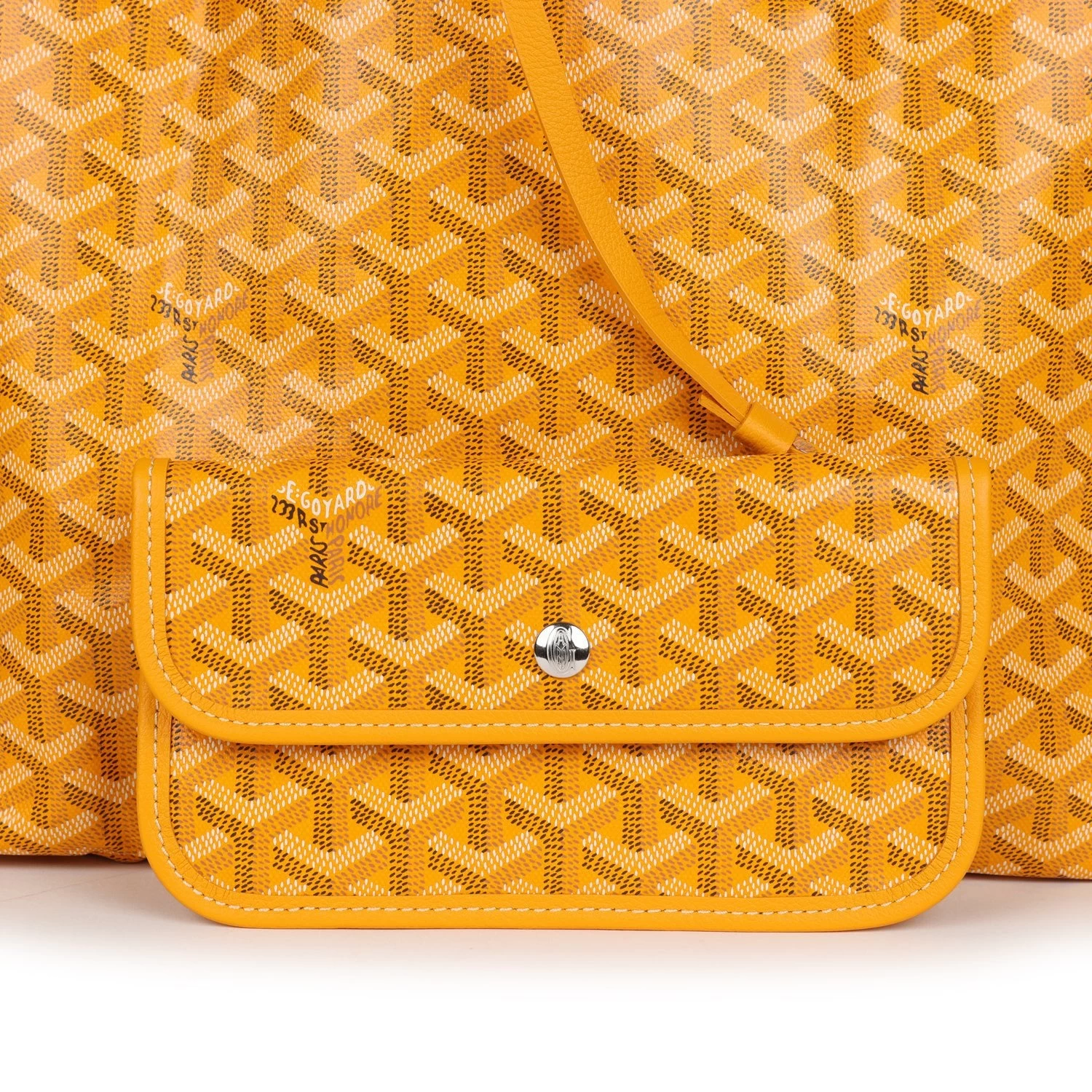 This St. Louis PM tote is of yellow Goyardine canvas with palladium hardware, contrast stitching, and has a matching detachable button closure walletÂ