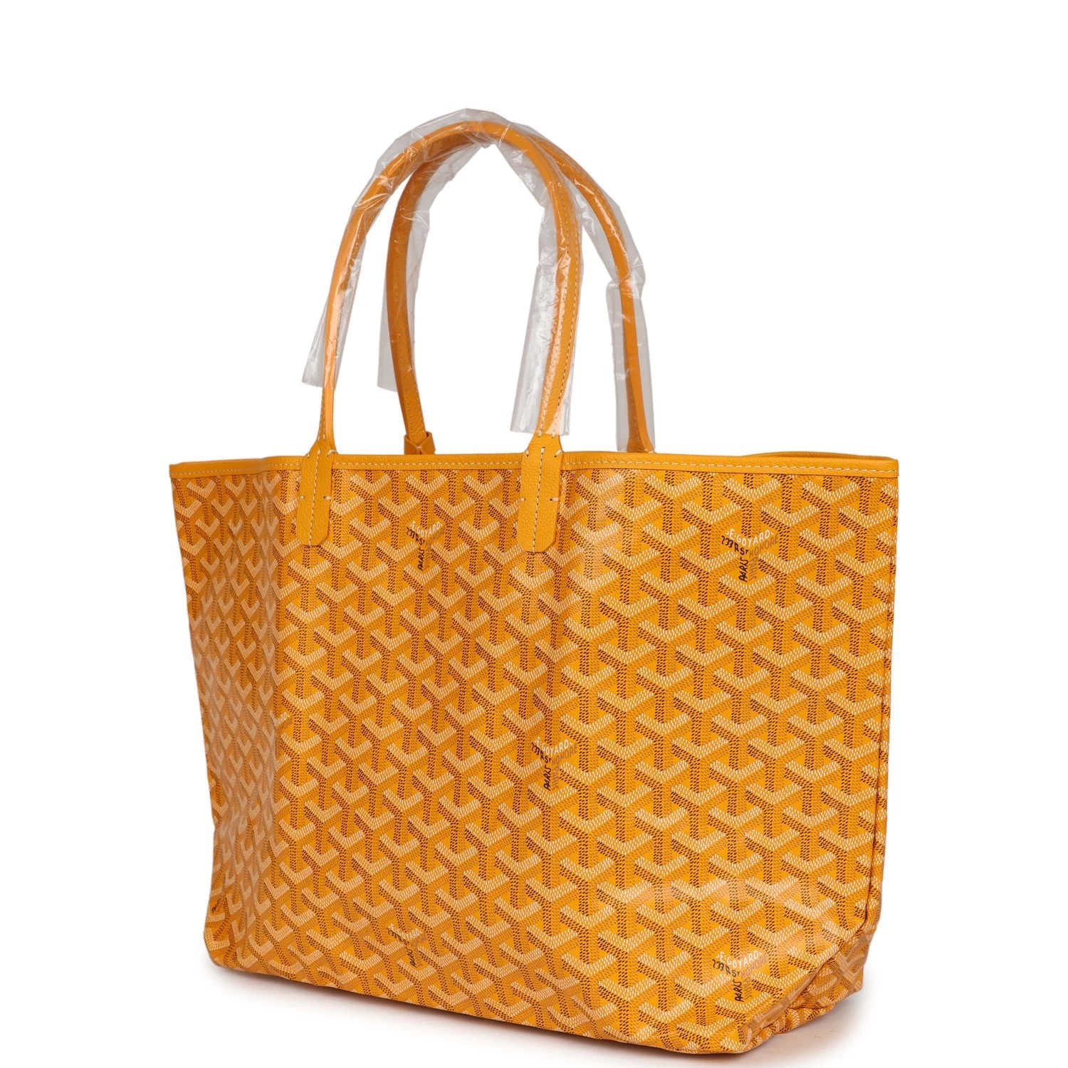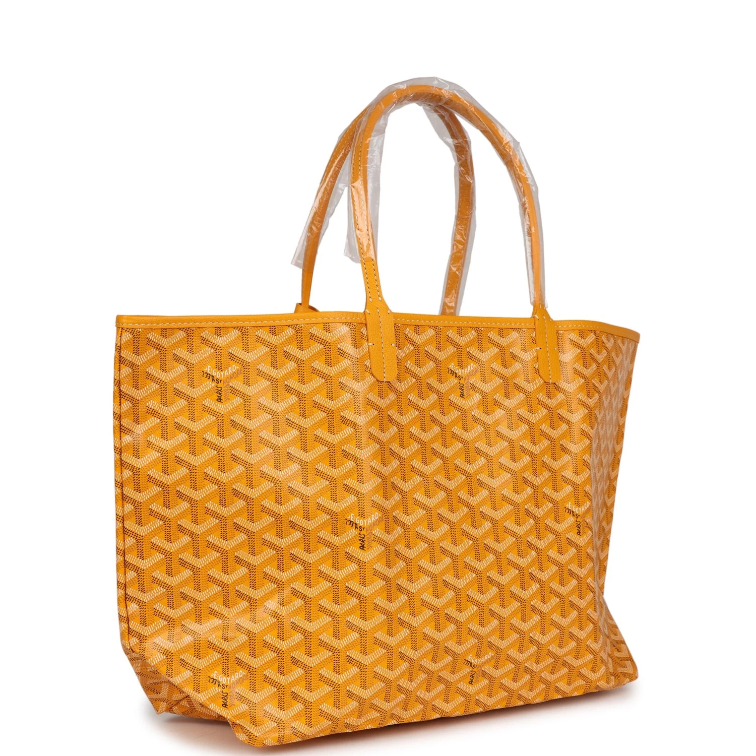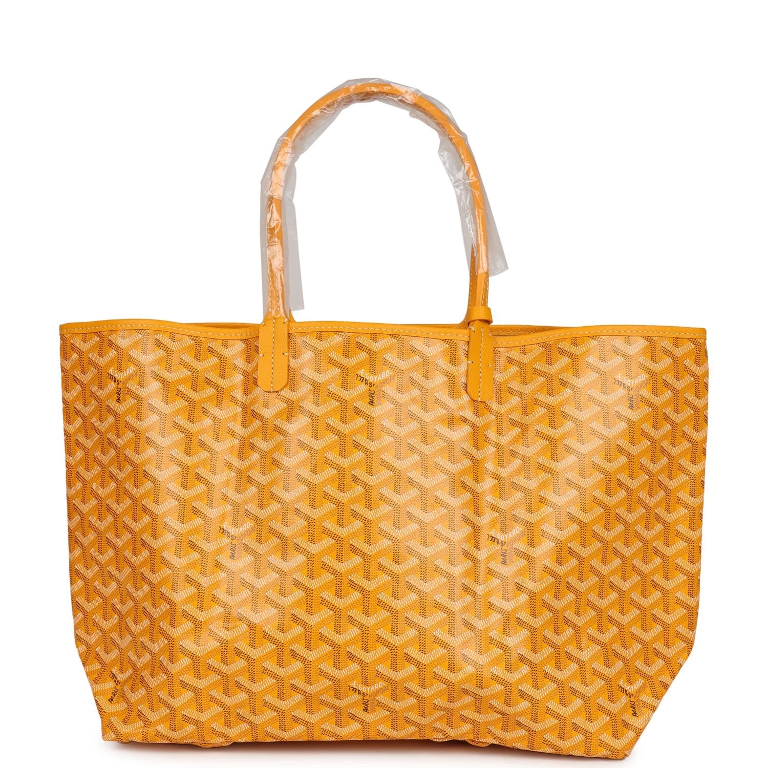 This St. Louis PM tote is of yellow Goyardine canvas with palladium hardware, contrast stitching, and has a matching detachable button closure walletÂ