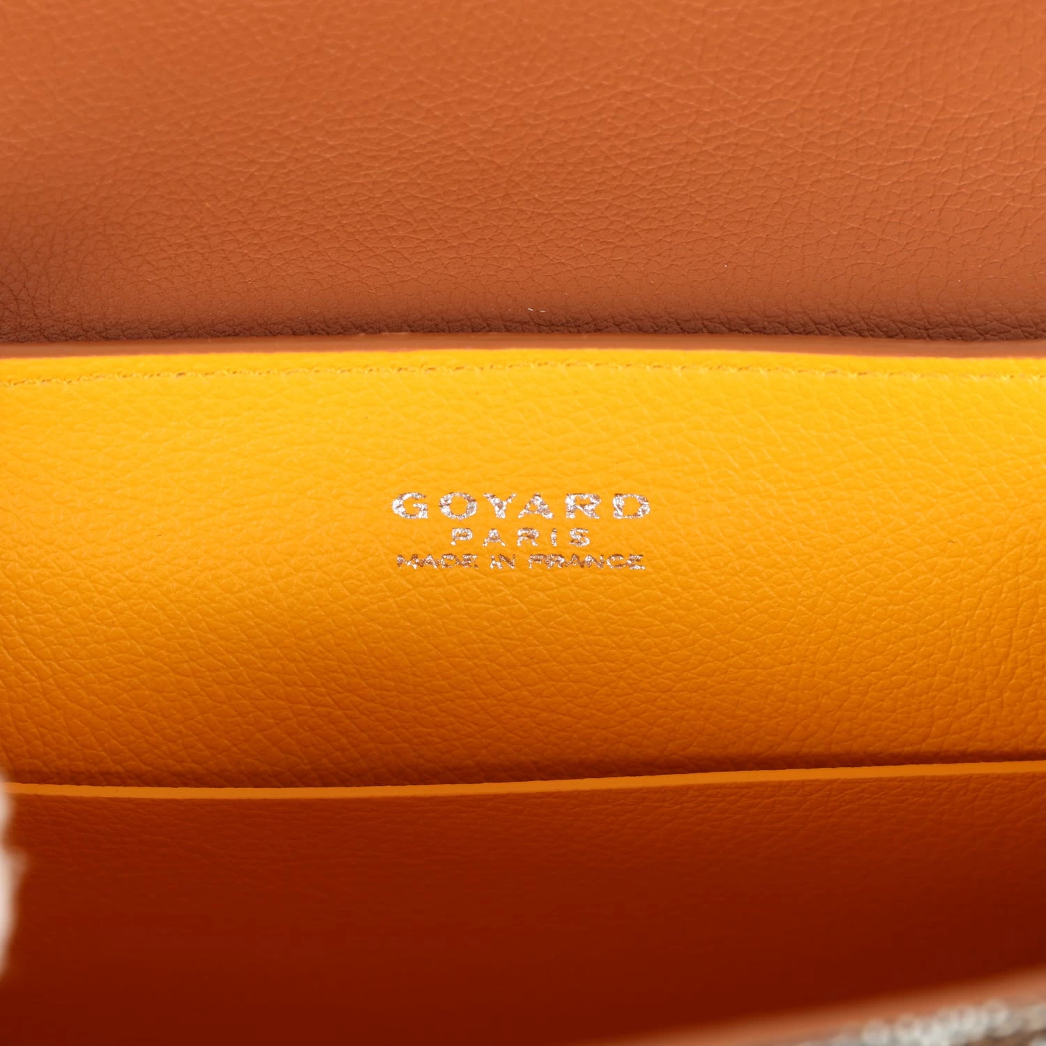 The interior is lined with Yellow Nièvre Goatskin Lining with one slip pocket.