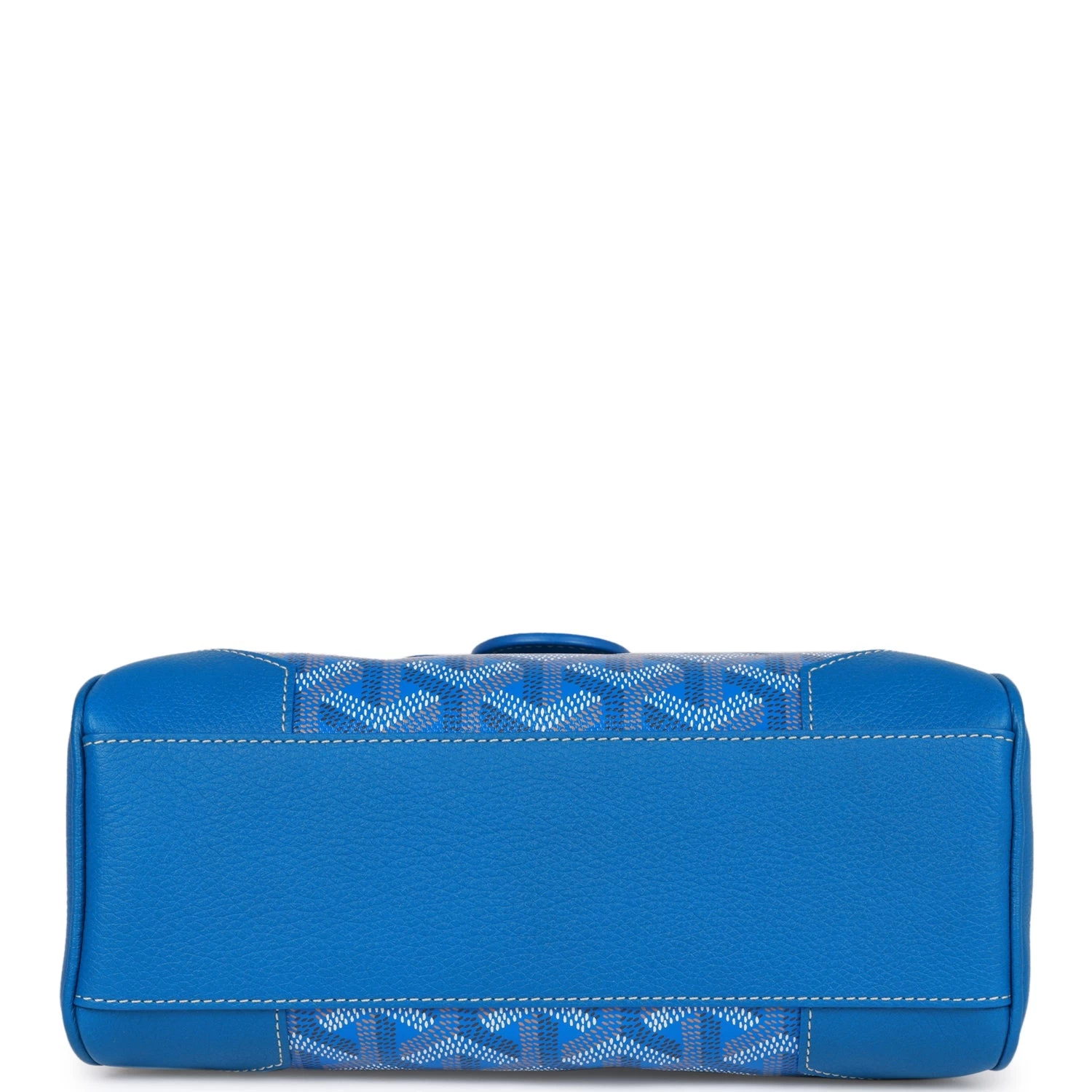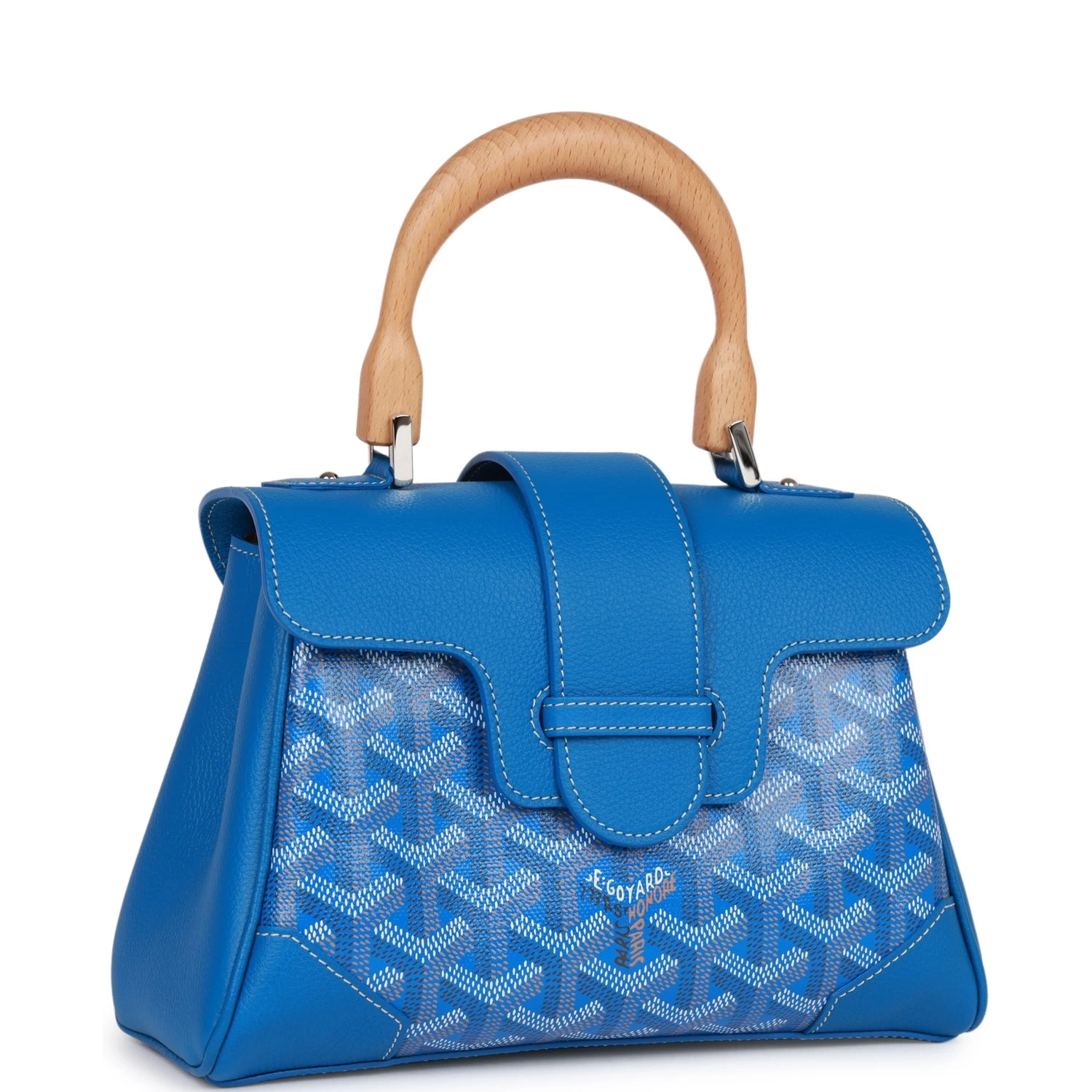 This Saigon Souple Mini is of blue calfskin leather and goyardine canvas with silver tone hardware and features front flap, top handle, removable strap and tonal stitching.