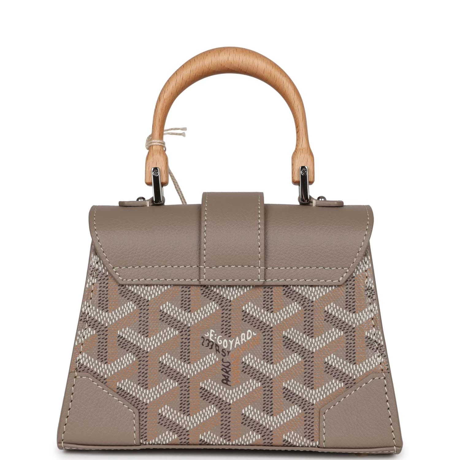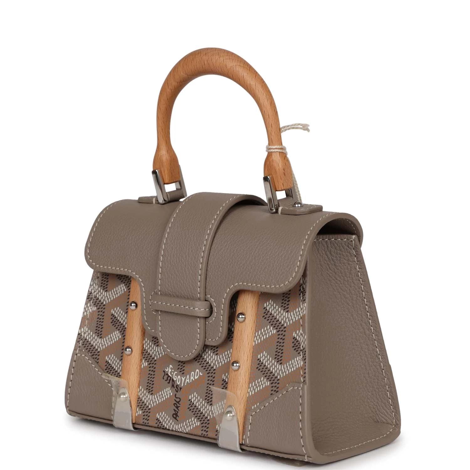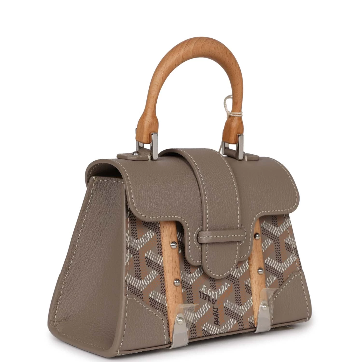 This Saigon Structure Nano Bag is in Grege Goyardine canvas and Clamecy Cowhide with palladium hardware, tonal stitching, yellow goatskin interior leather, and detachable shoulder strap.