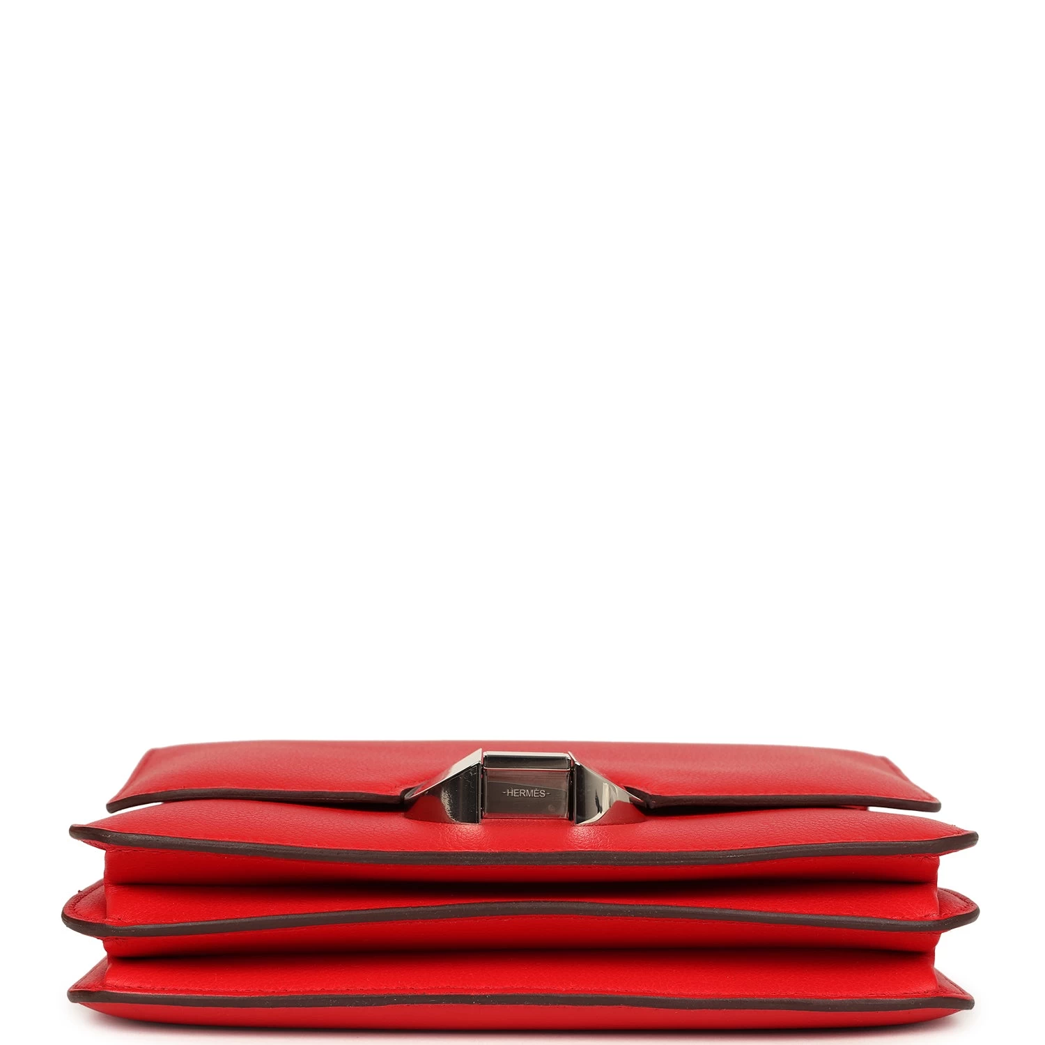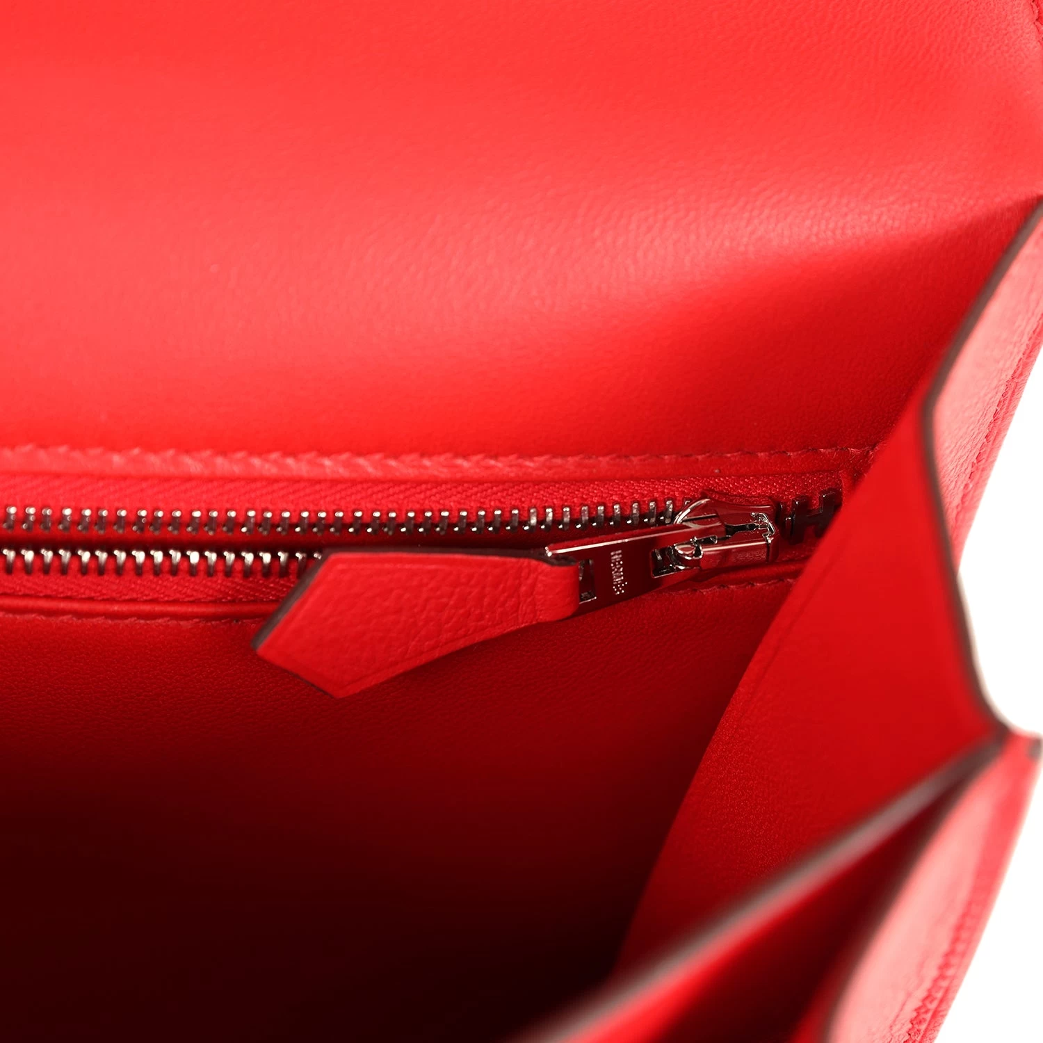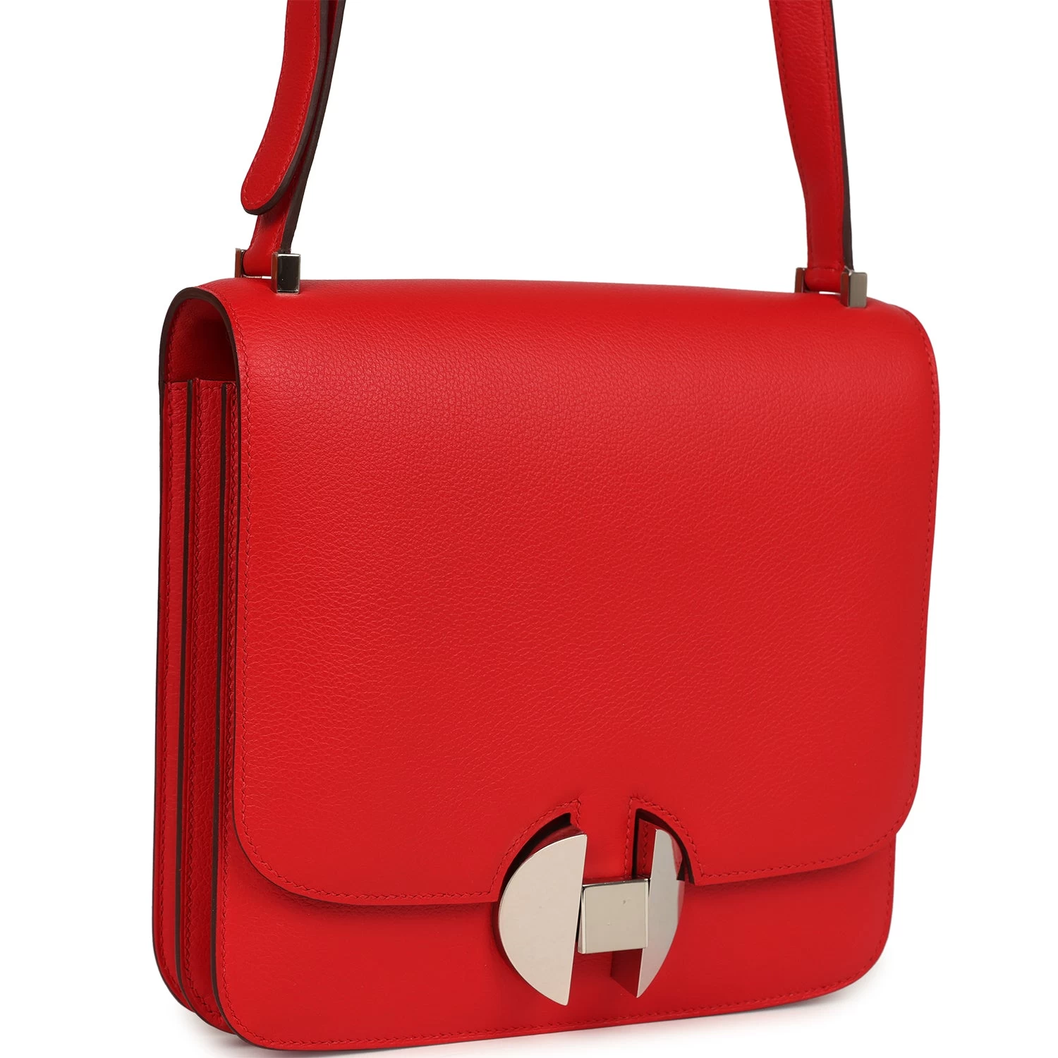 This Hermes 2002-20 is of Rouge De Coeur evercolor leather with palladium hardware, features tonal stitching, front flap with clasp closure, adjustable flat leather shoulder strap with palladium buckle and one exterior back pocket.