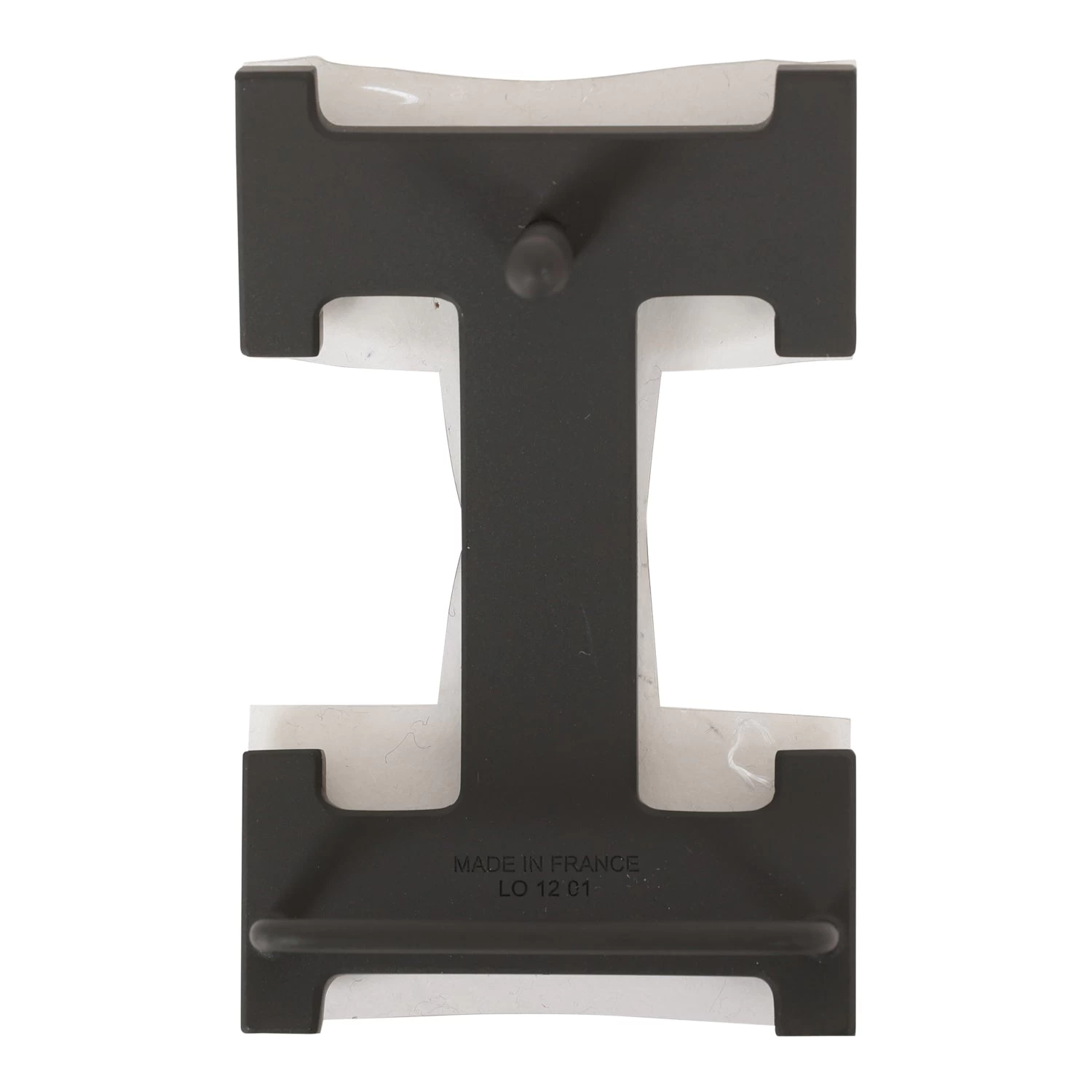 This Constance Belt kit has a wide belt strap in black calfskin leather reversing to chocolate togo leather accompanied by removable H buckle of black plated hardware.