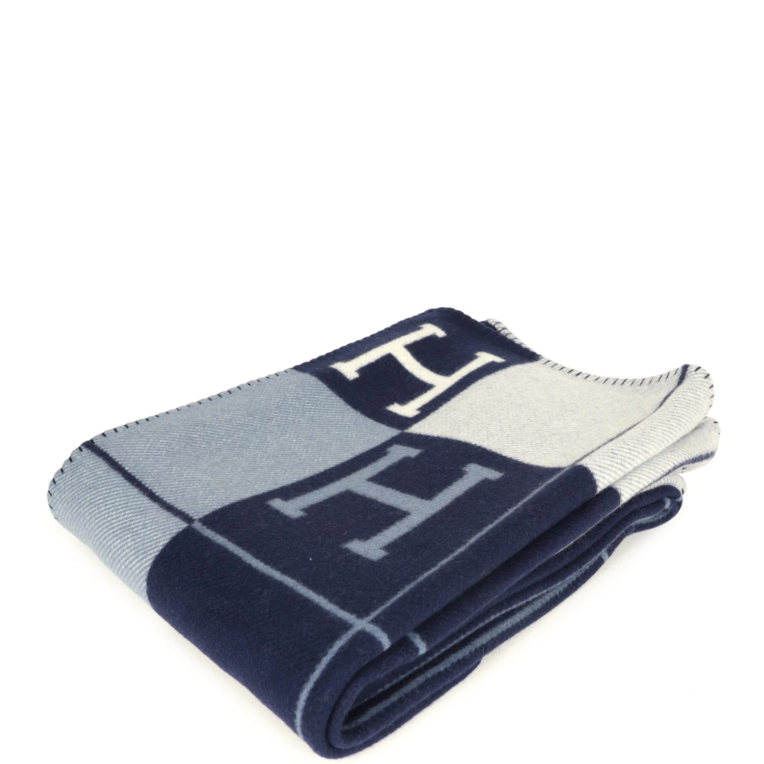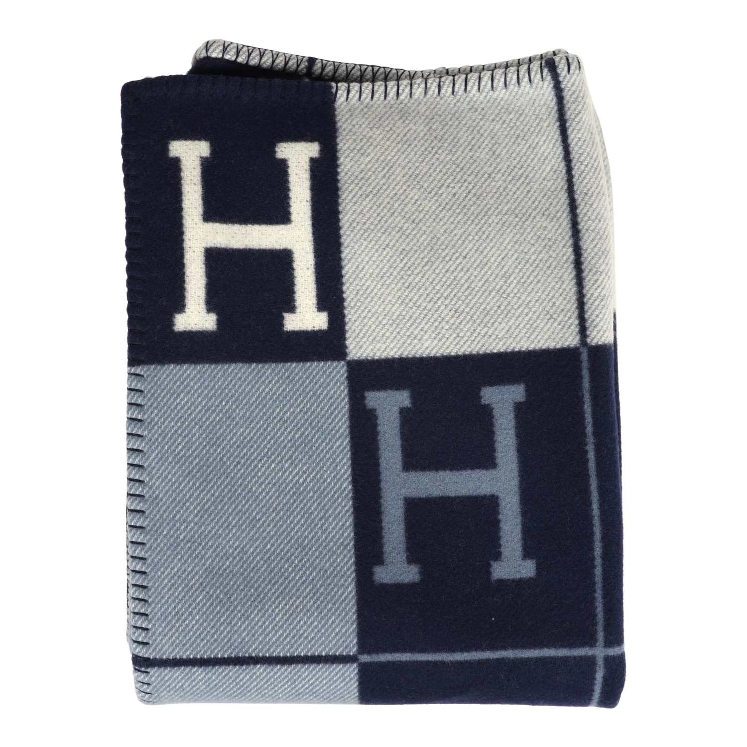 This Hermes Classic Avalon III Signature H Throw blanket is in Ecru and Caban and made of 90% merino wool and 10% cashmere.