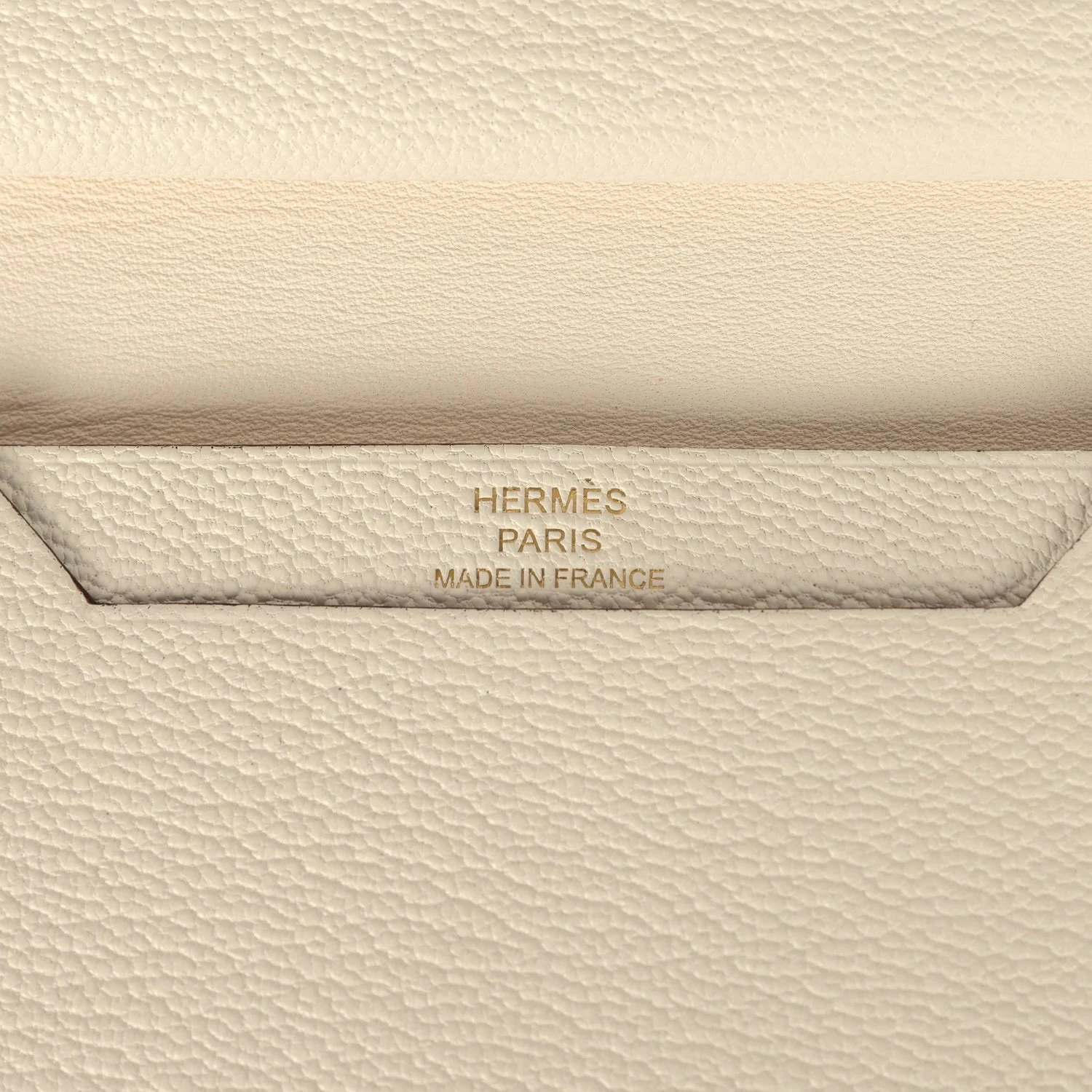 This Bearn Mini Wallet is in Nata chevre leather with gold hardware, contrast stitching, and a loop closure that tucks into a gold H.