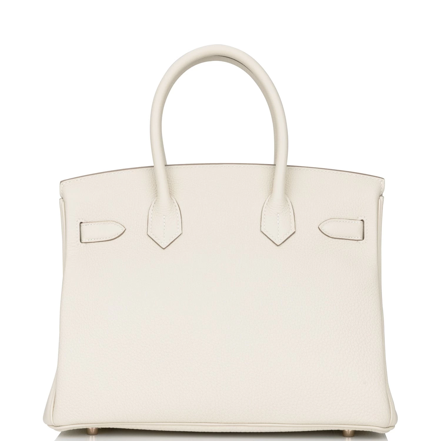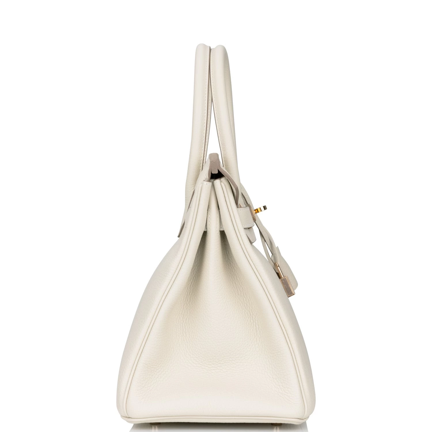 This Birkin is in Craie togo leather with rose gold hardware and has tonal stitching, front flap, two straps with center toggle closure, clochette with lock and two keys, and double rolled handles.