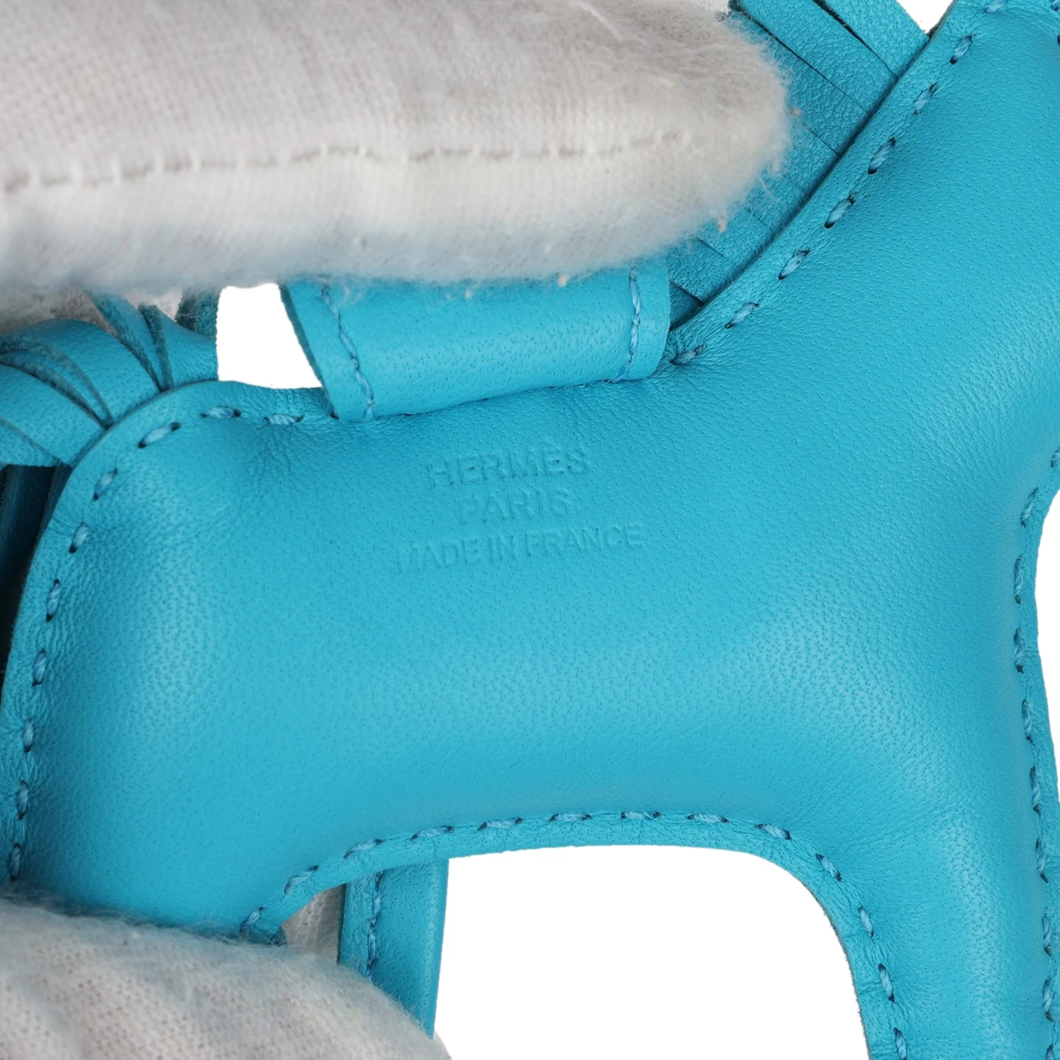 This Hermes Rodeo Bag Charm PM is in Bleu Aztec milo lambskin leather and accented with a Rubis mane, tail, eyes, holder and saddle.