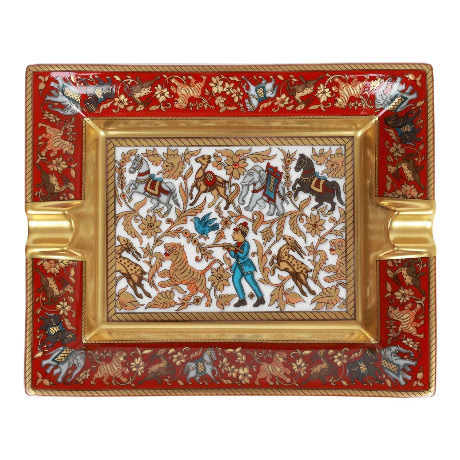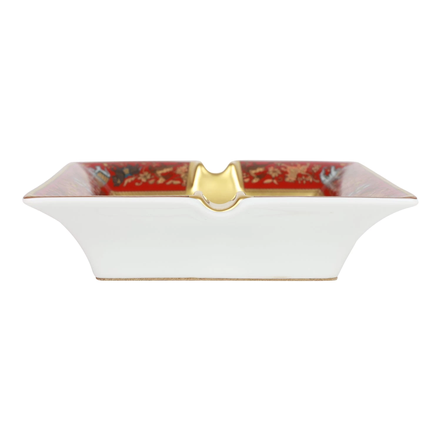 Hermes “Chasse en Inde” ashtray of porcelain in rouge.