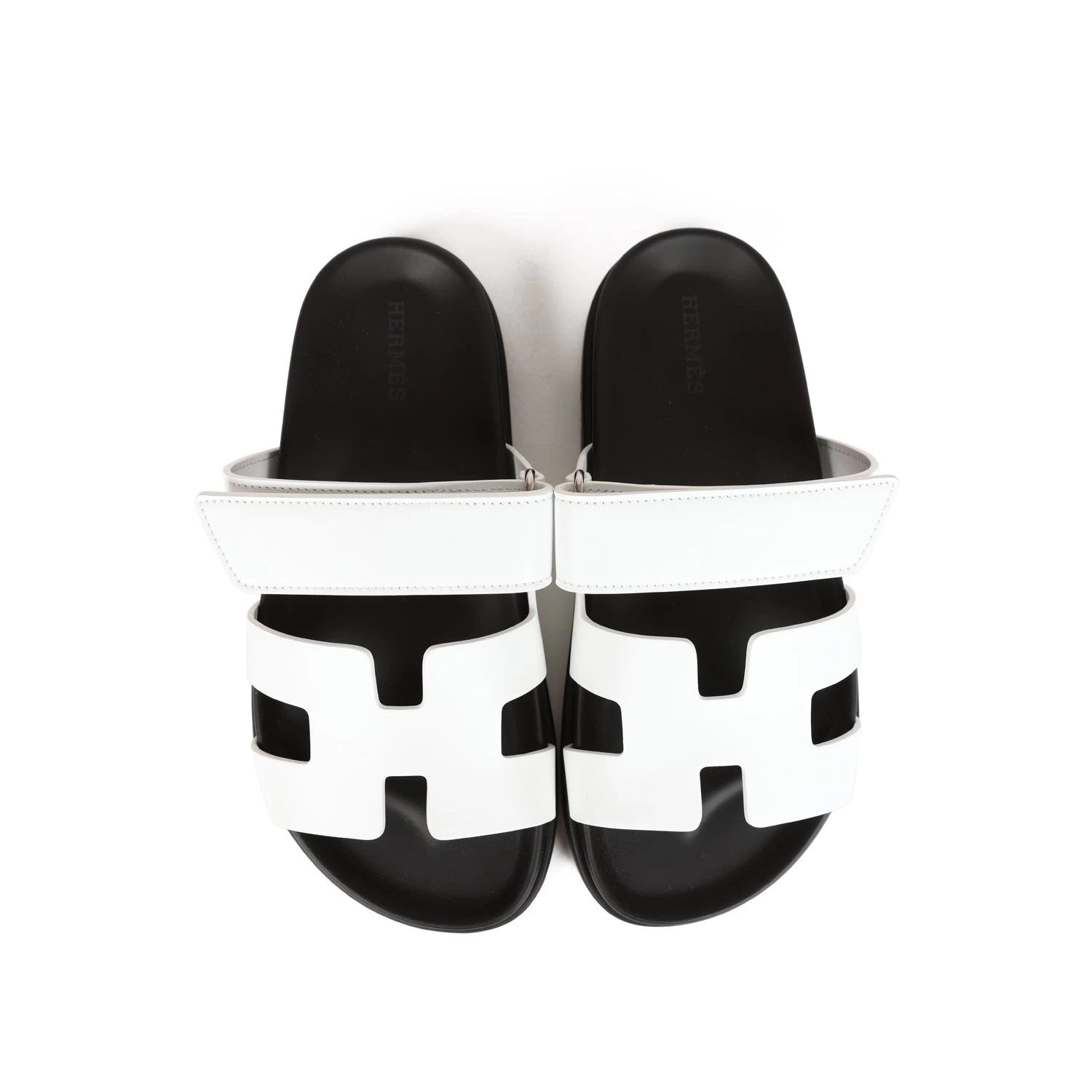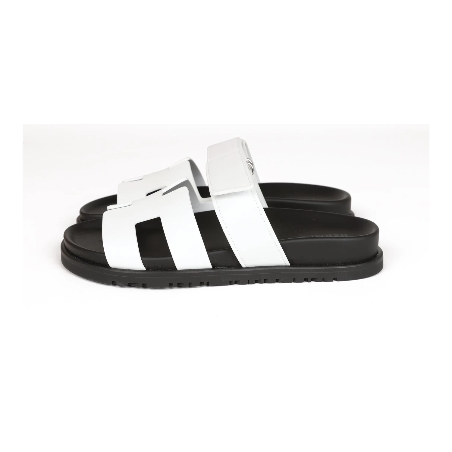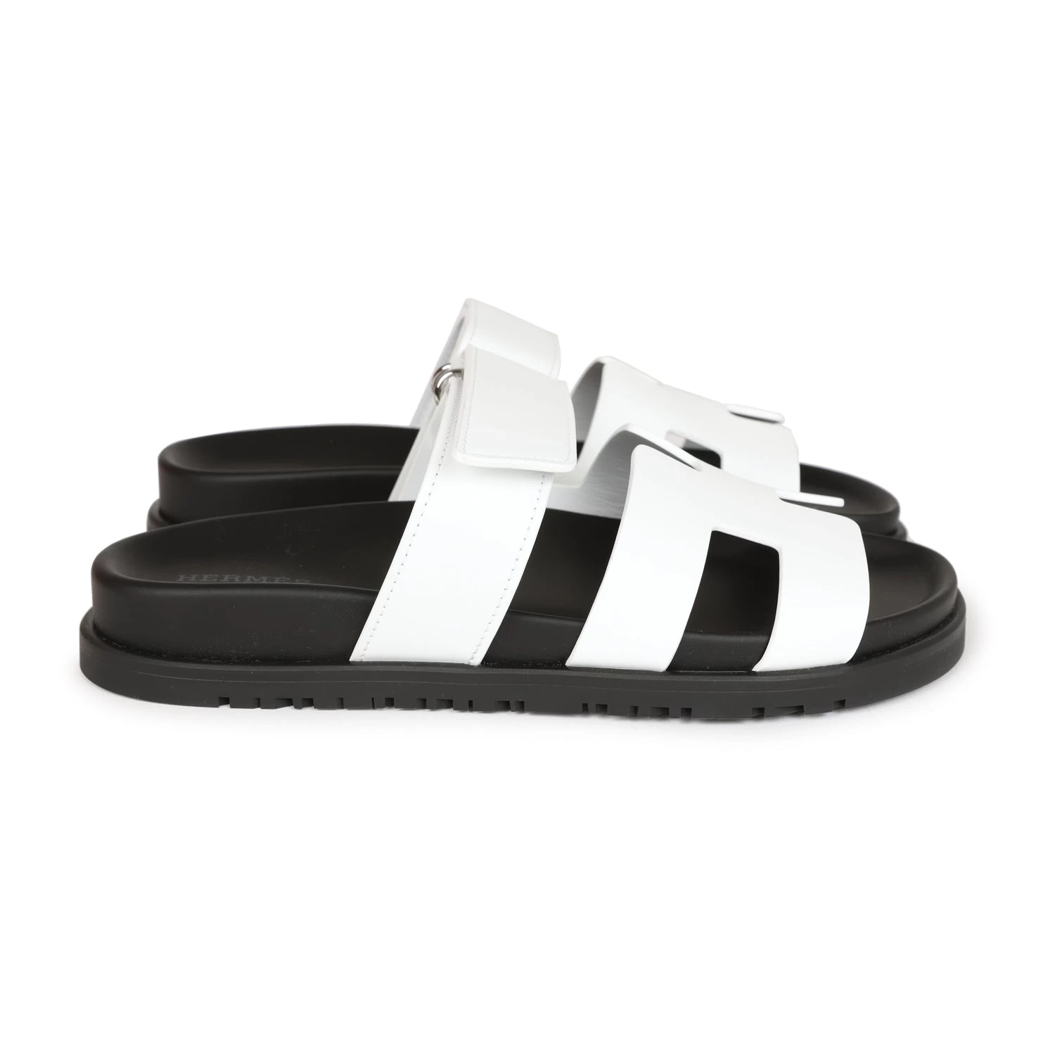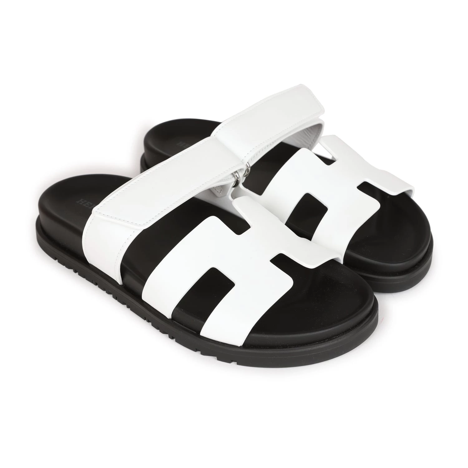 This pair of Chypre sandals are in white and feature the iconic H and a velcro crossover strap.
