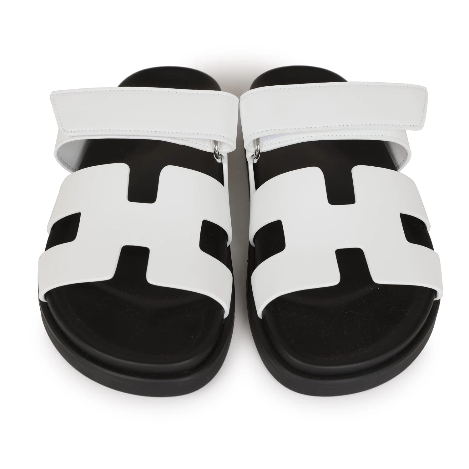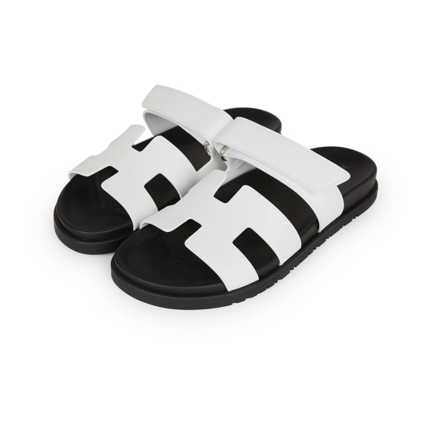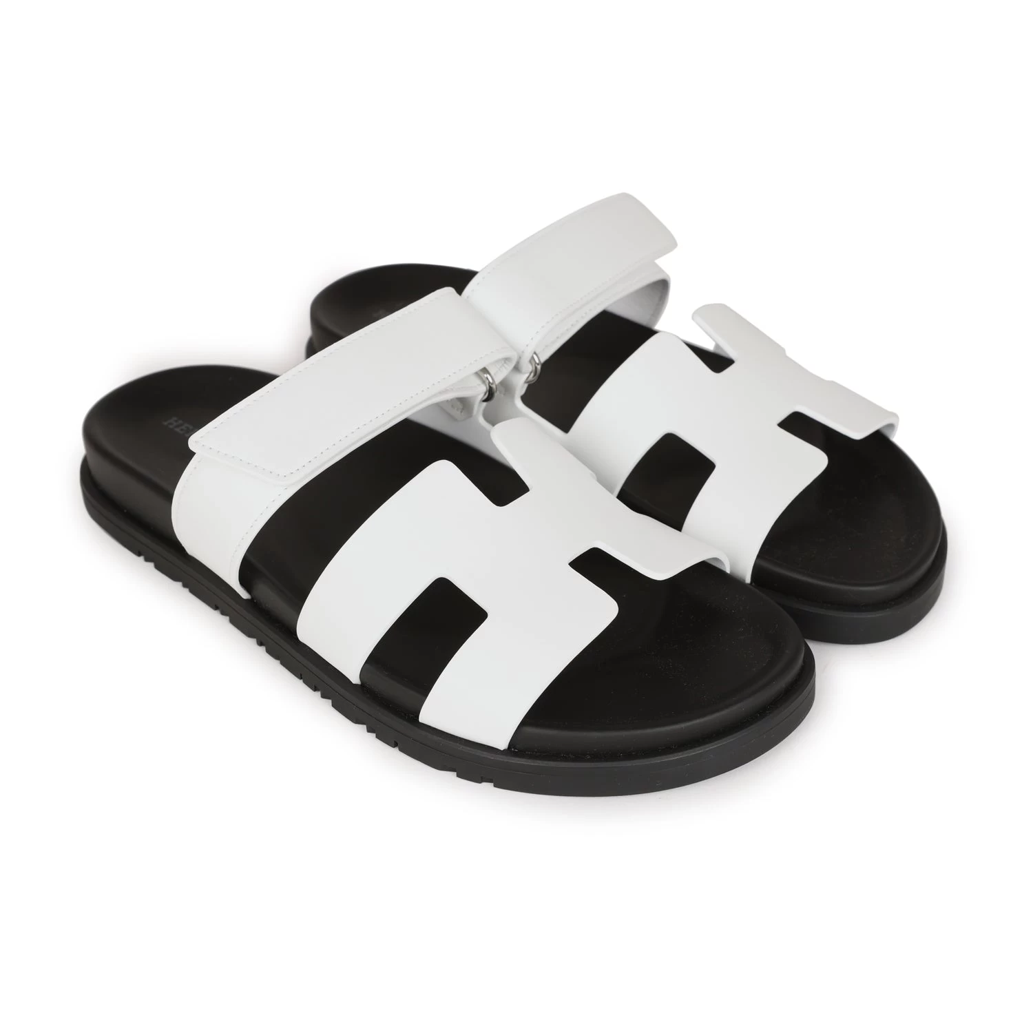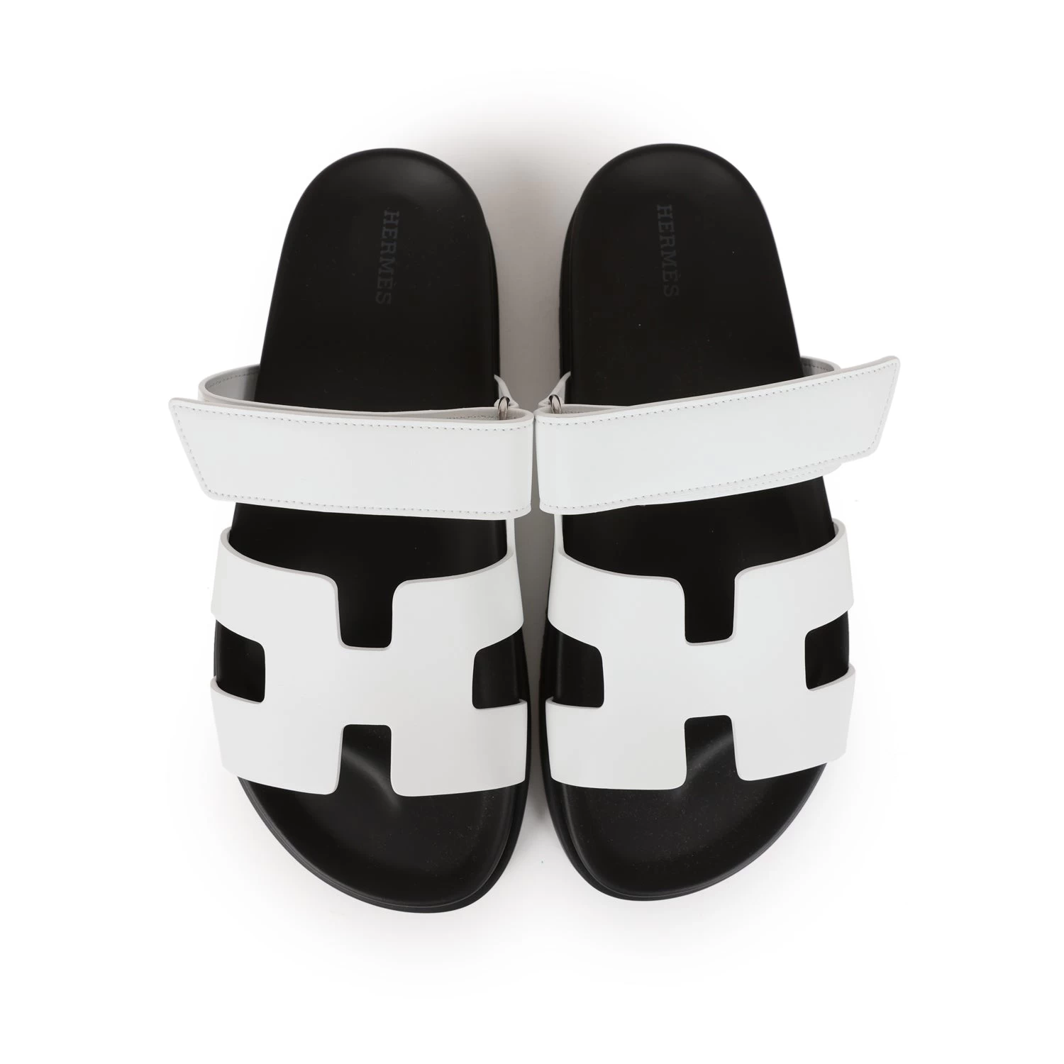 This pair of Chypre sandals are in white and feature the iconic H and a velcro crossover strap.