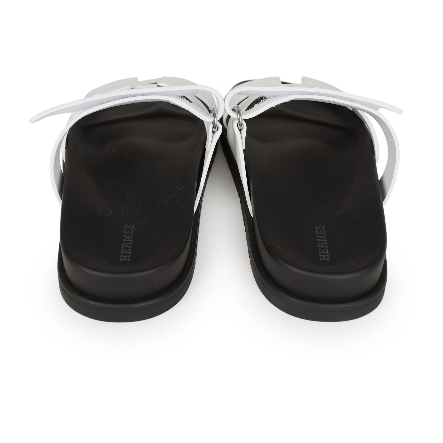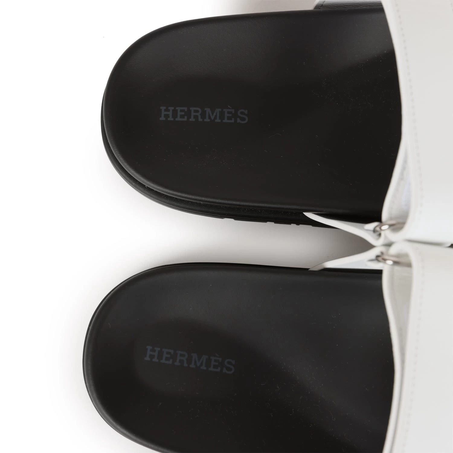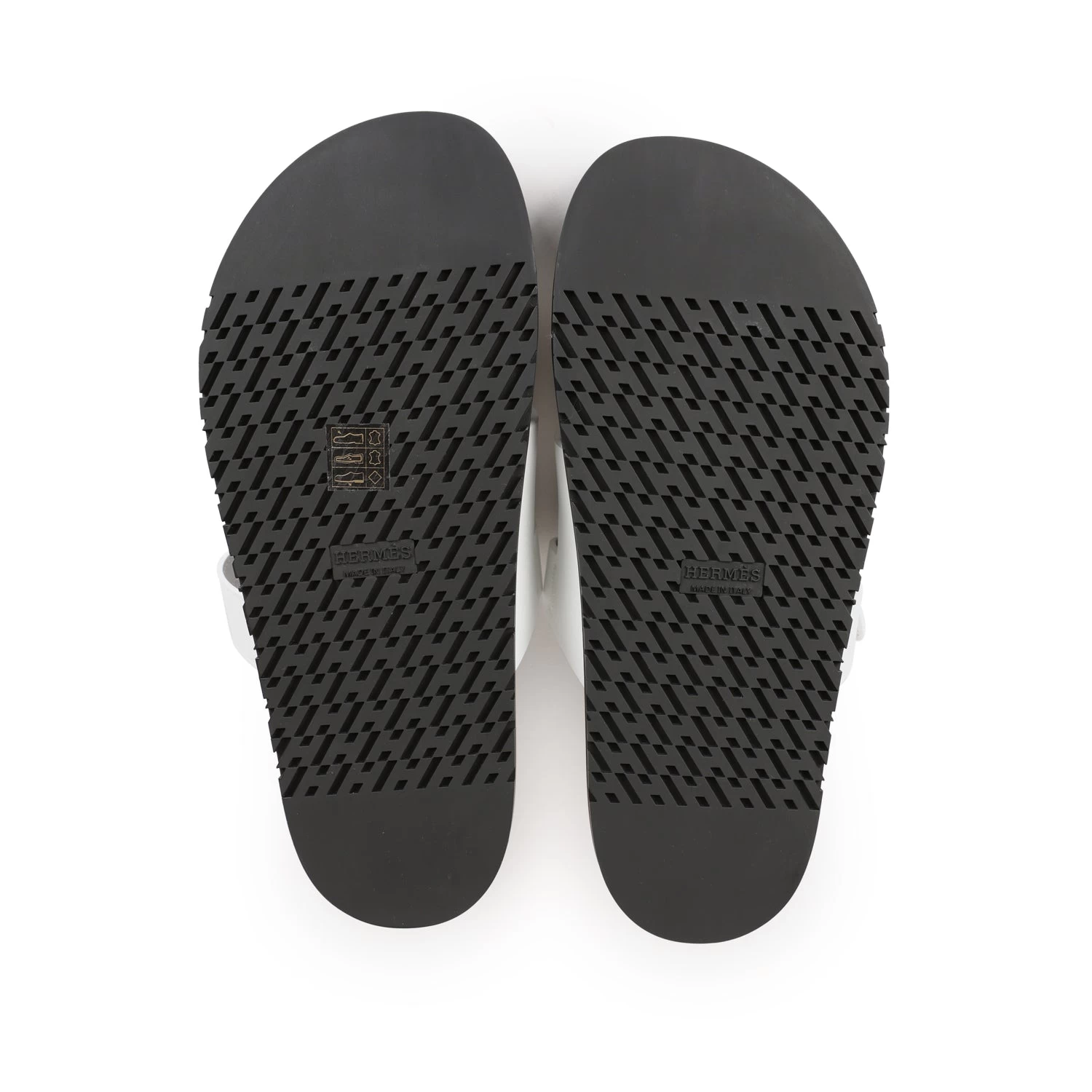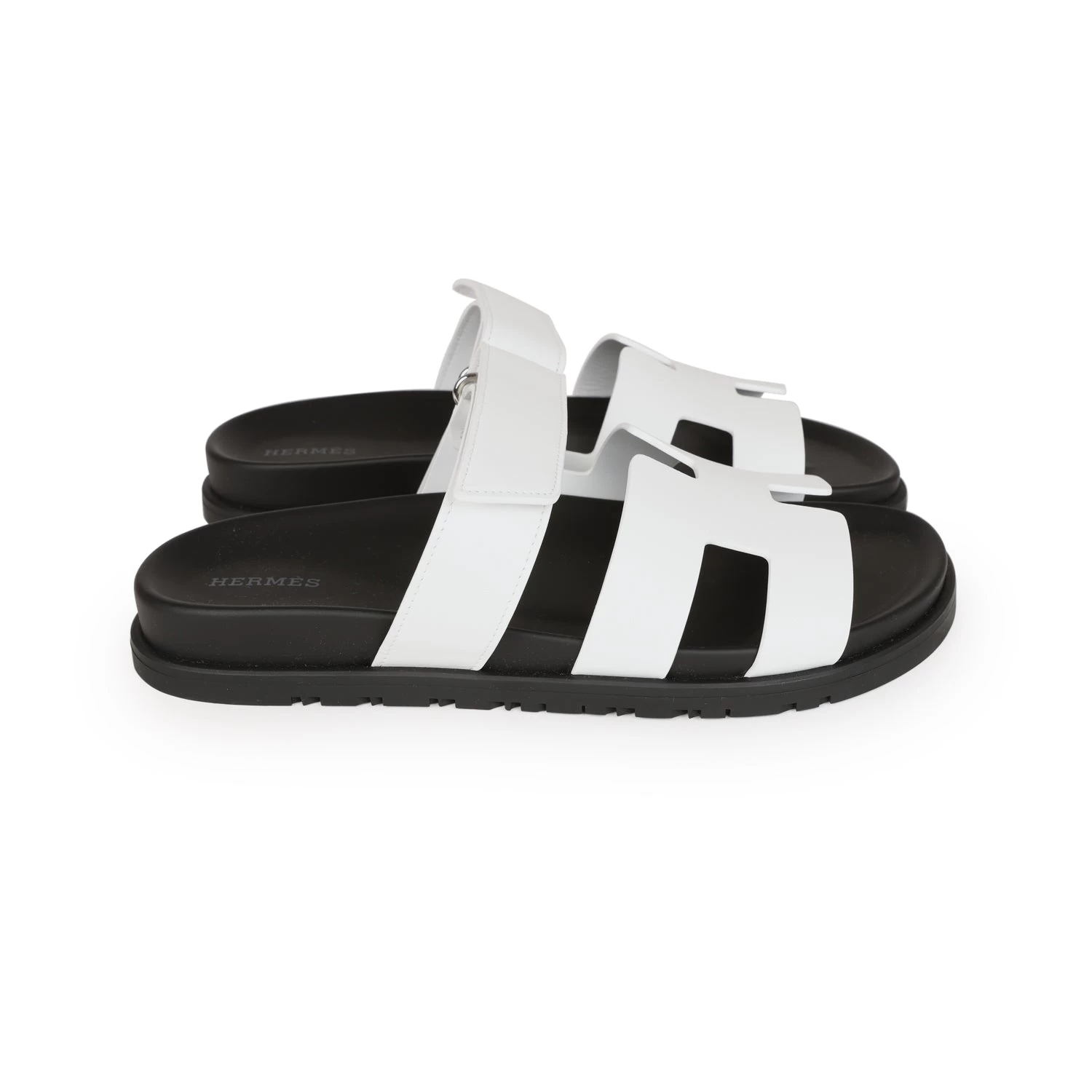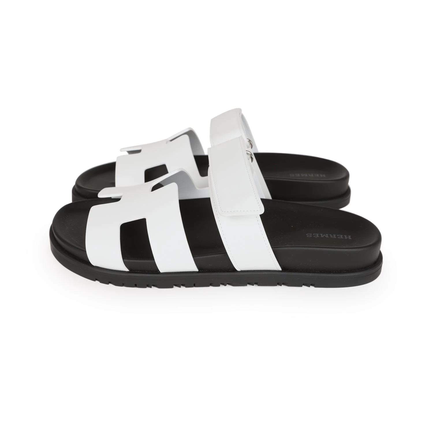 This pair of Chypre sandals are in white and feature the iconic H and a velcro crossover strap.
