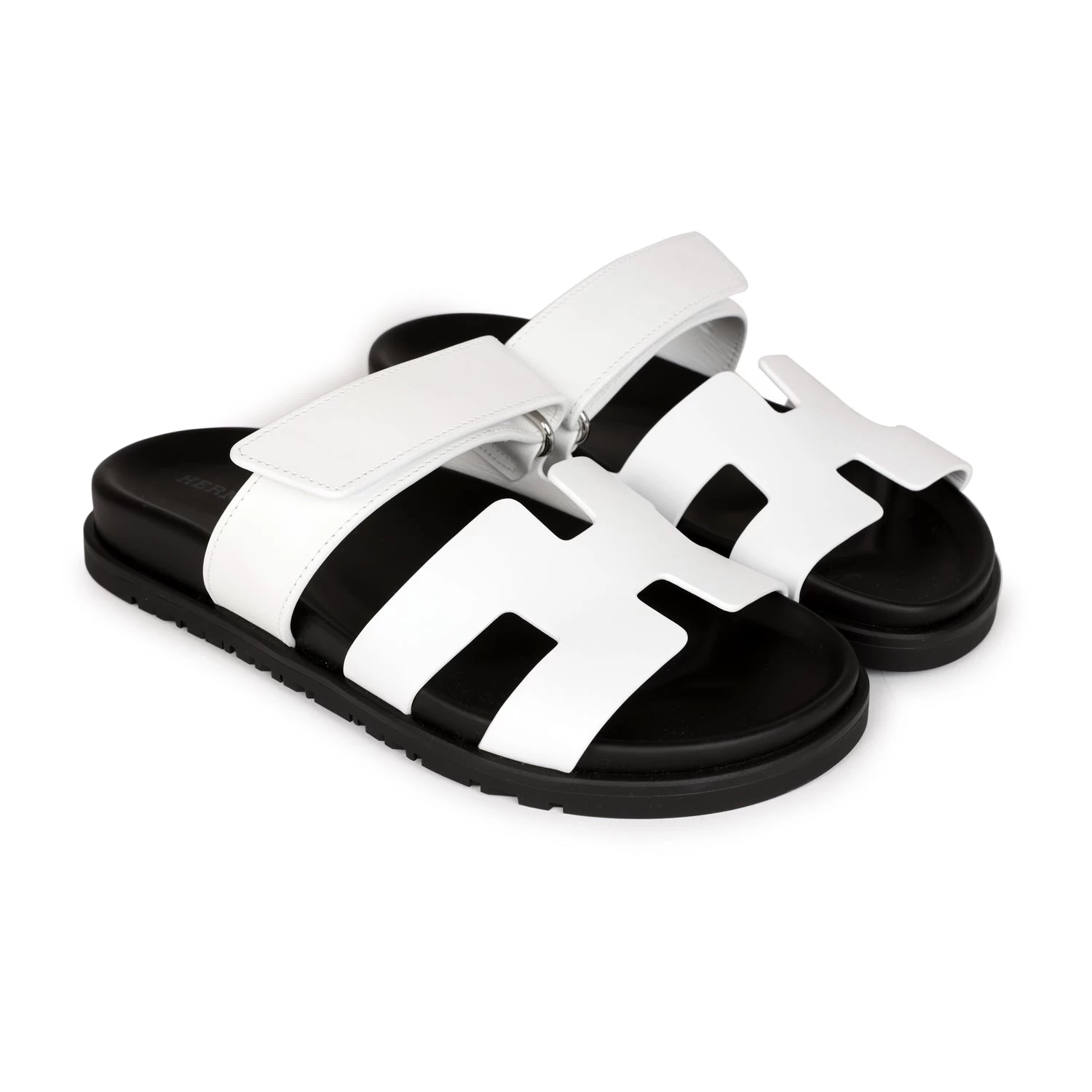 This pair of Chypre Techno sandals are in white and feature the iconic H and a velcro crossover strap.