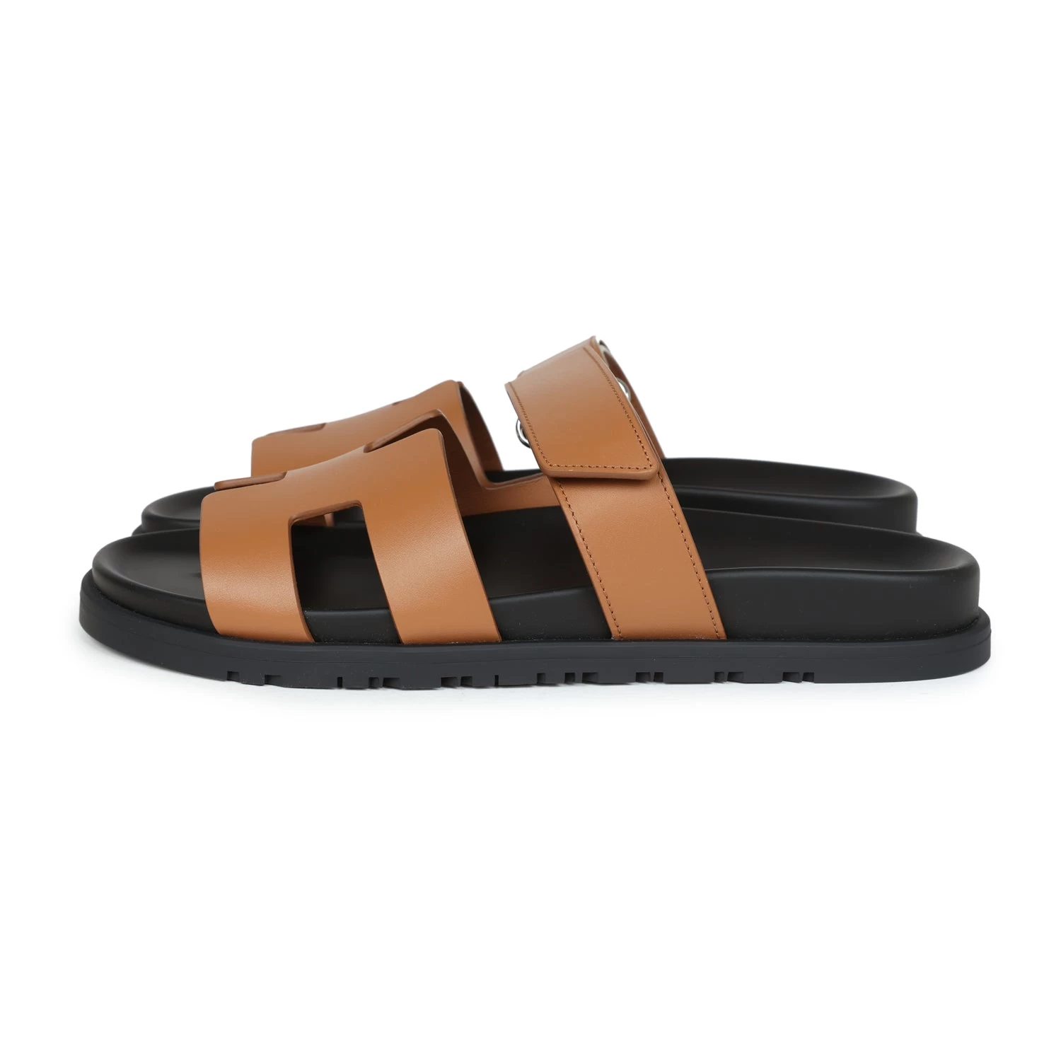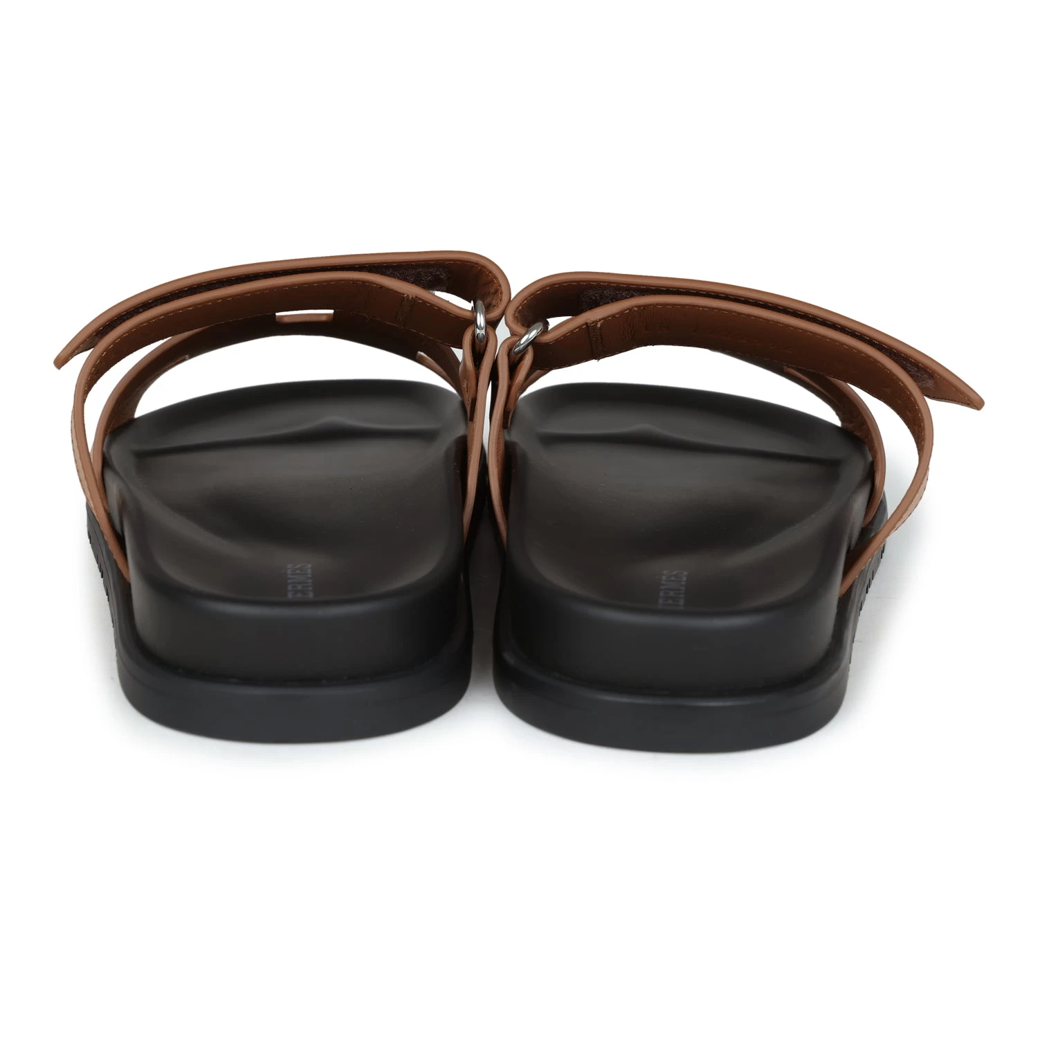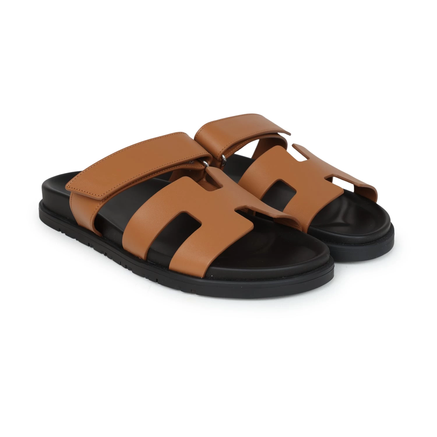 This pair of Chypre Techno sandals are in Naturel and Black calfskin and feature the iconic H and a velcro crossover strap.