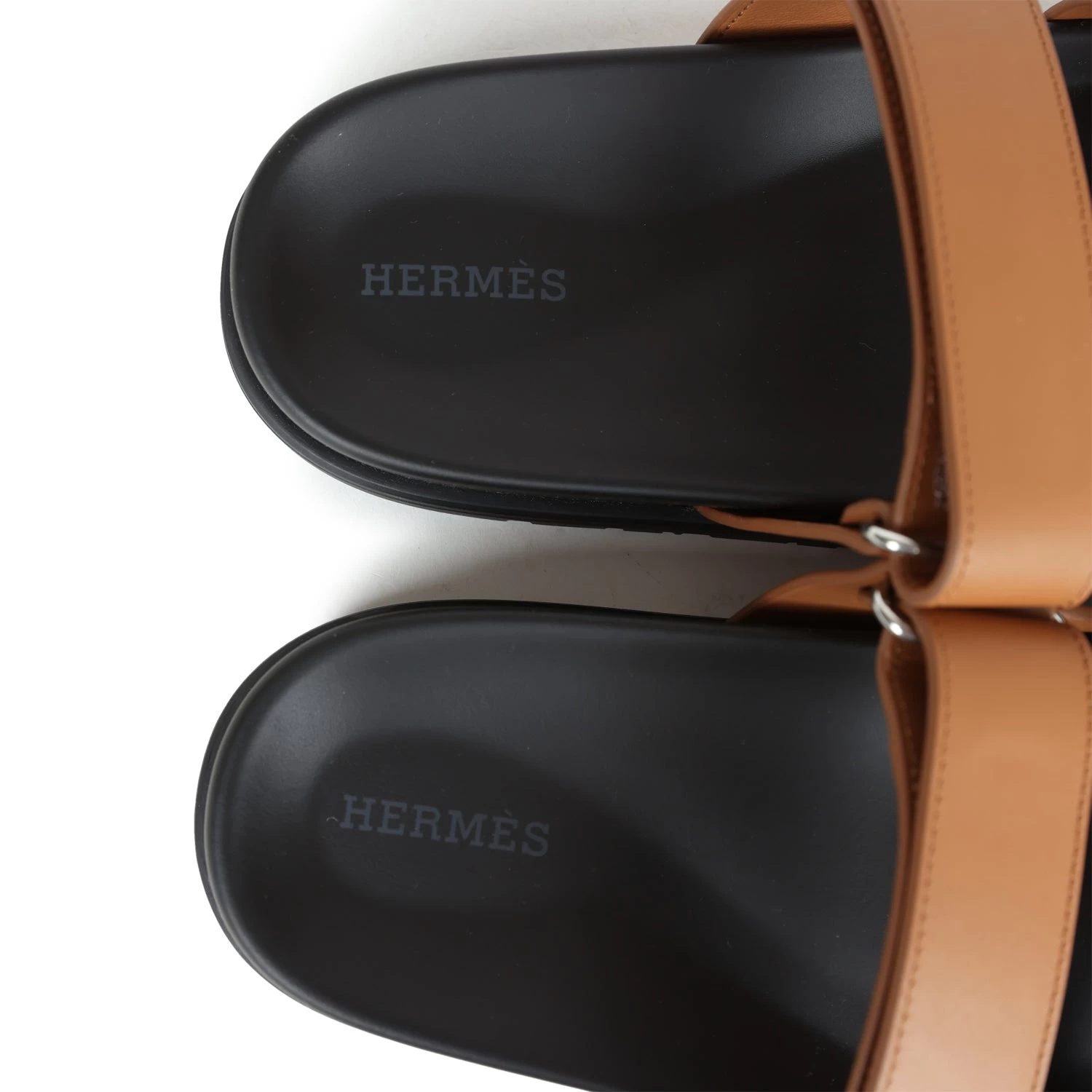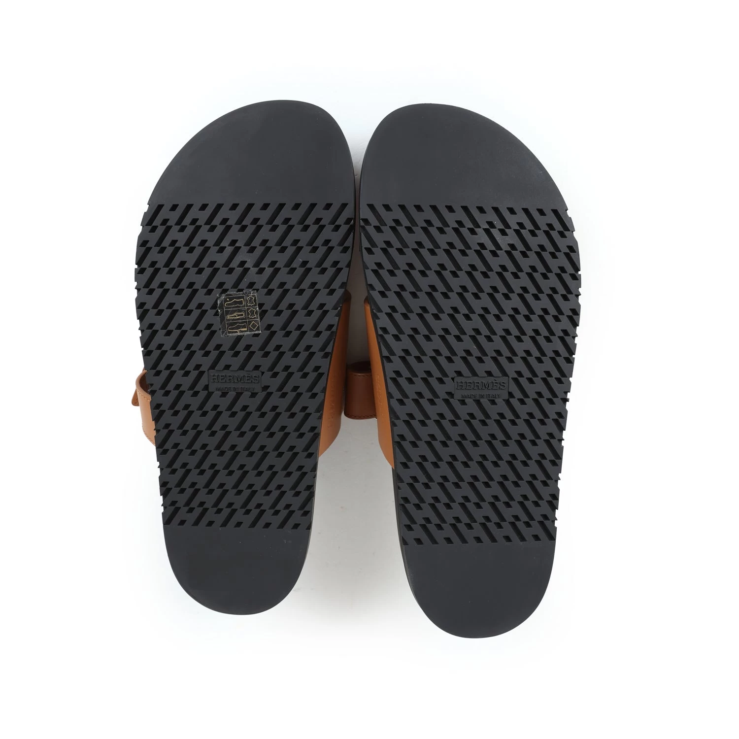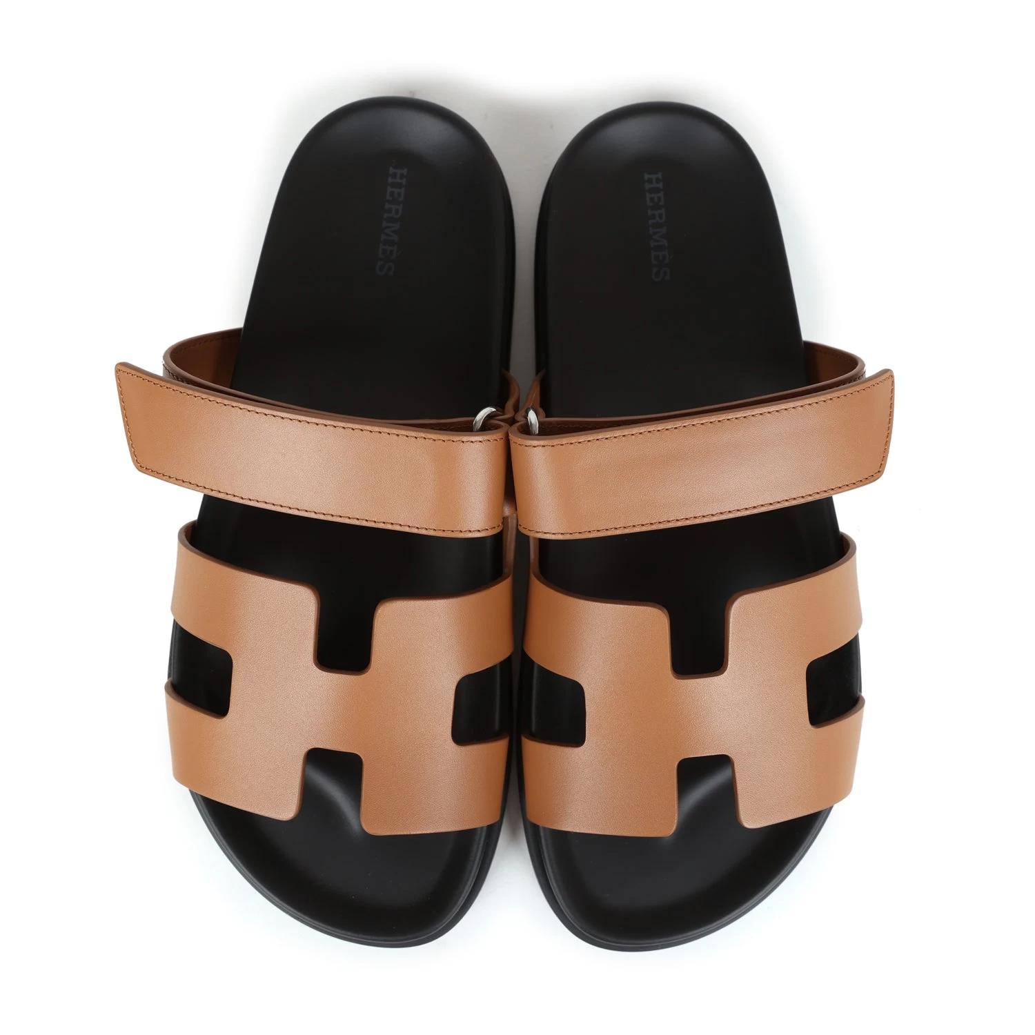 This pair of Chypre Techno sandals are in Naturel and Black calfskin and feature the iconic H and a velcro crossover strap.