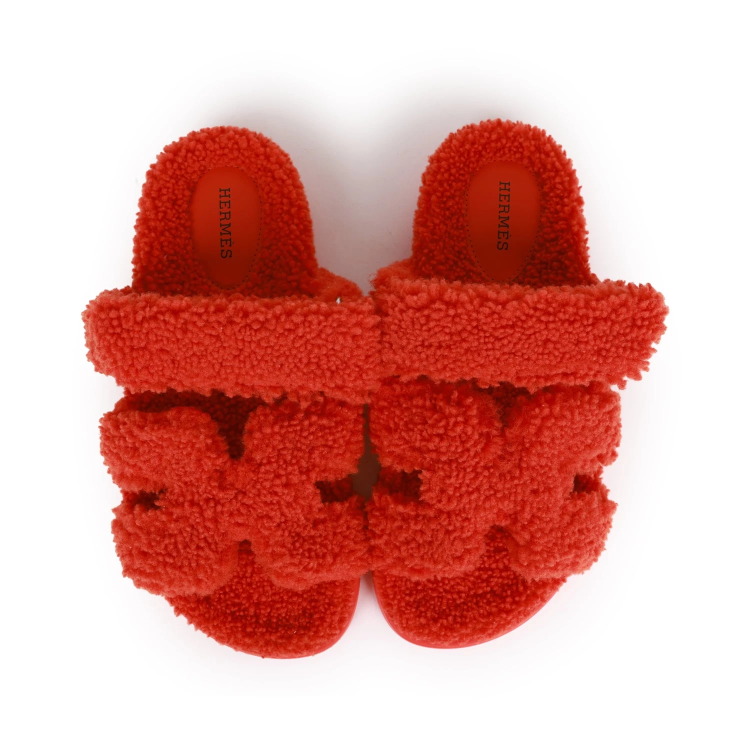 This pair of Cypre Techno sandals are in orange woolskin and feature the iconic H and a velcro crossover strap.