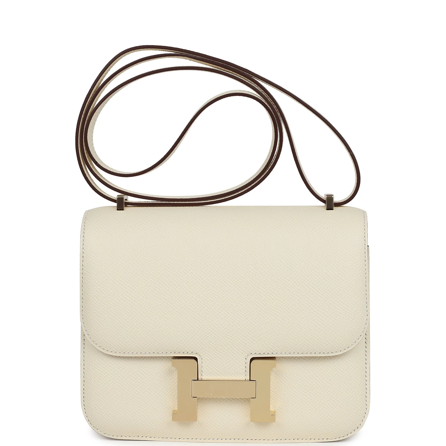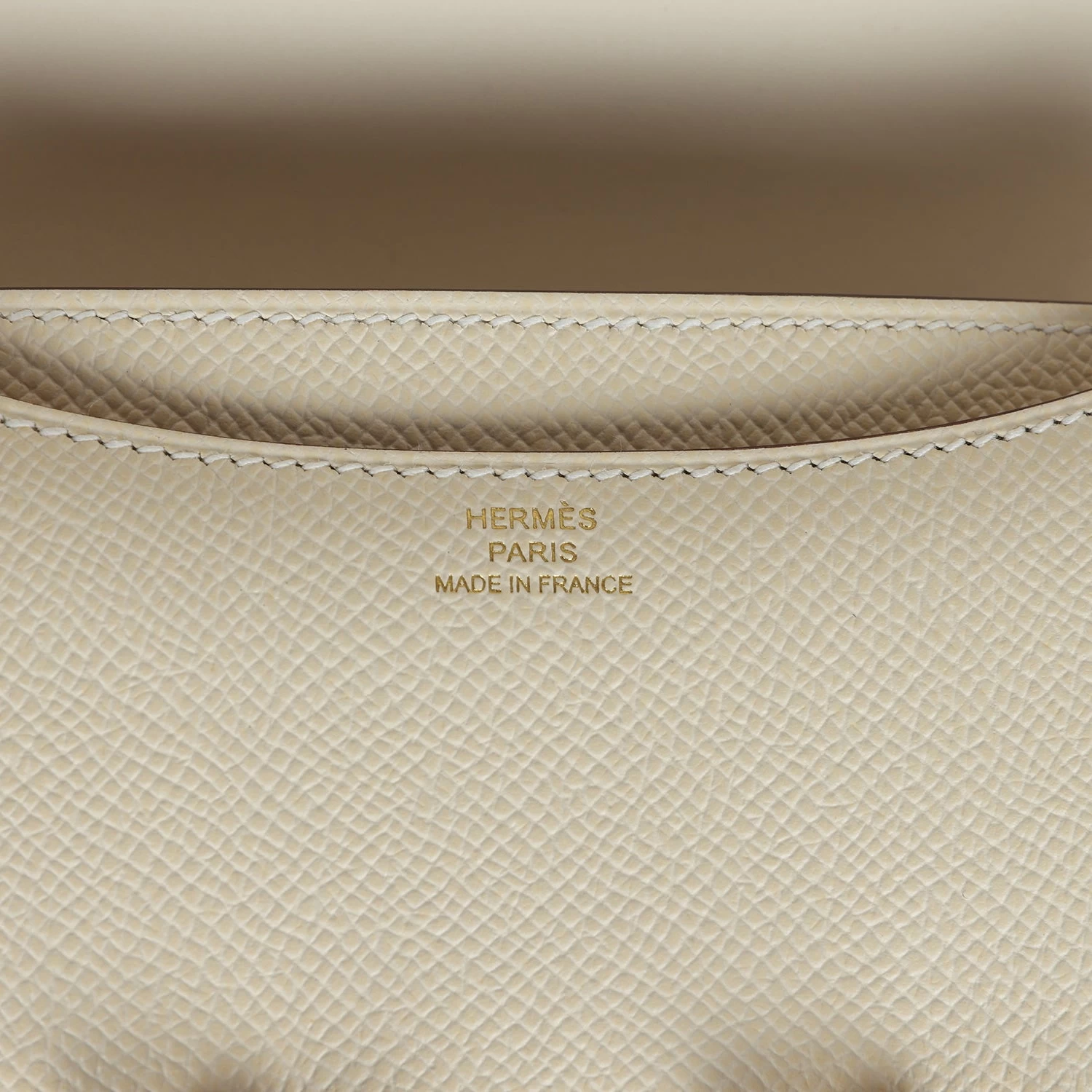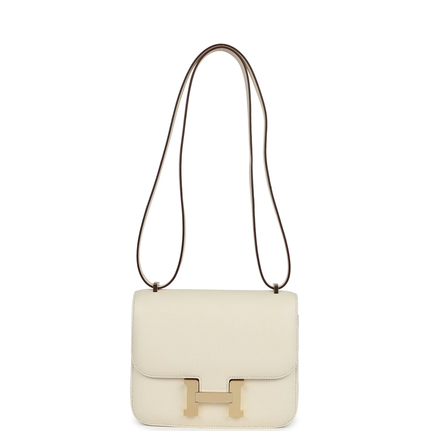 This Constance is in Nata epsom leather with Permabrass hardware and has tonal stitching, a metal “H” snap lock closure and adjustable shoulder strap.