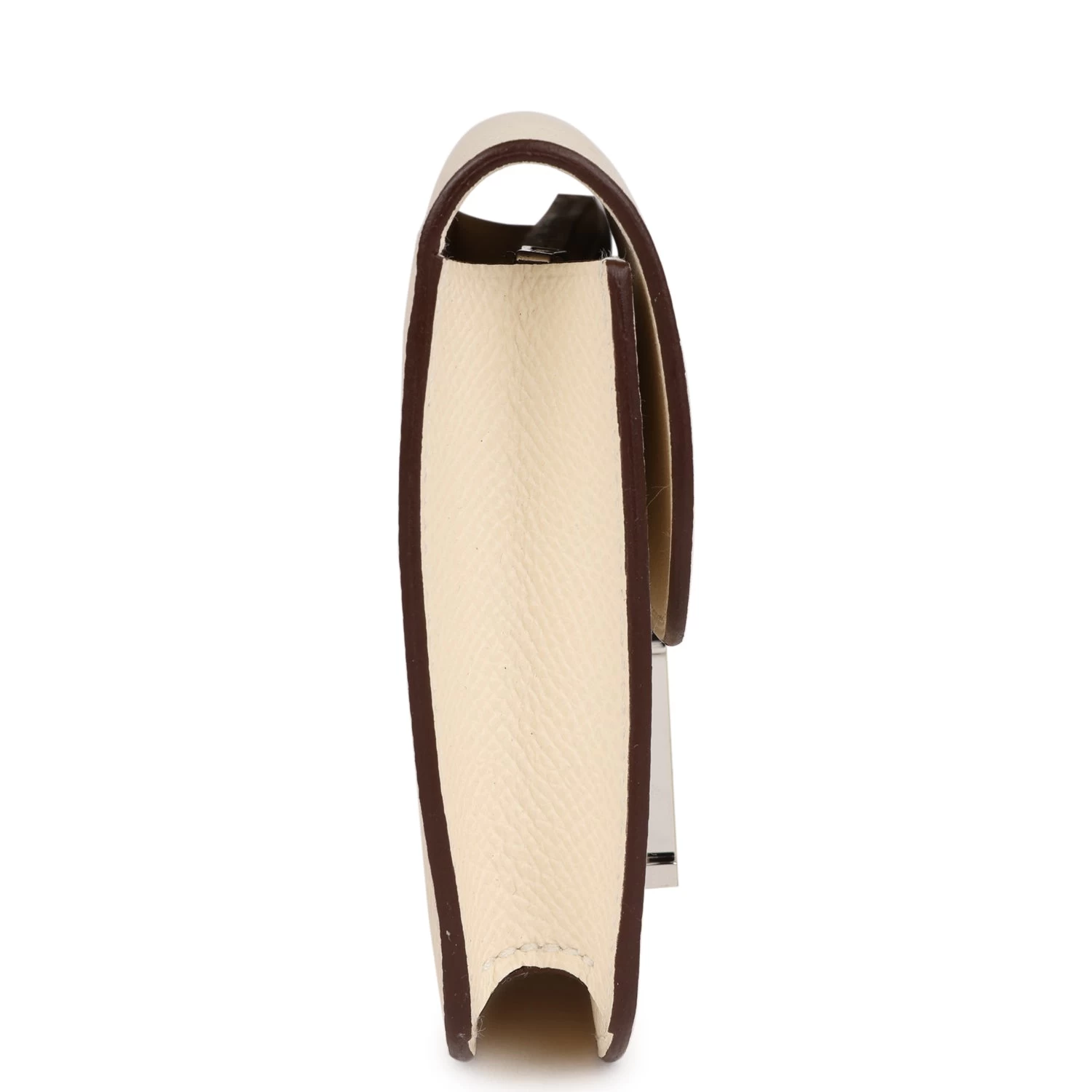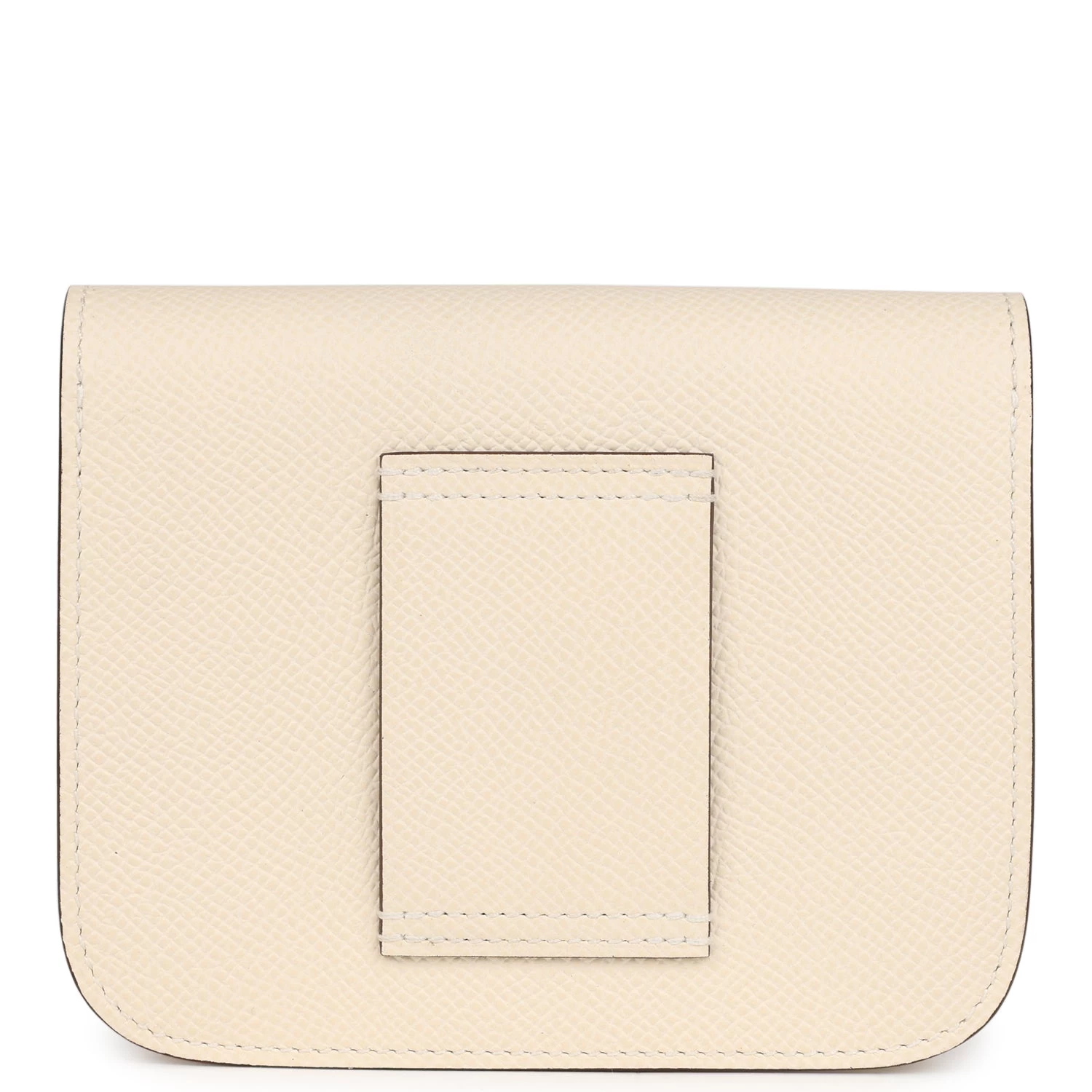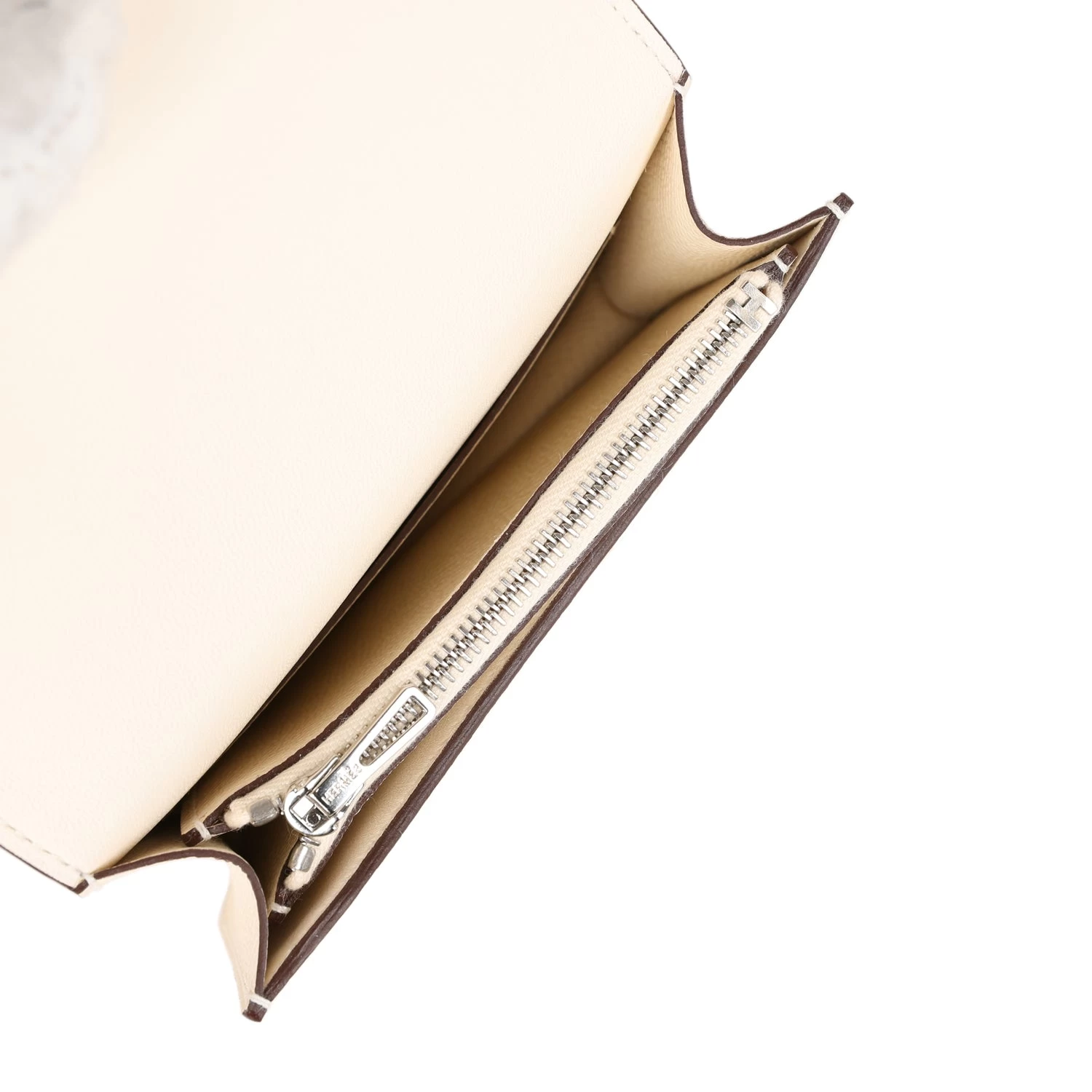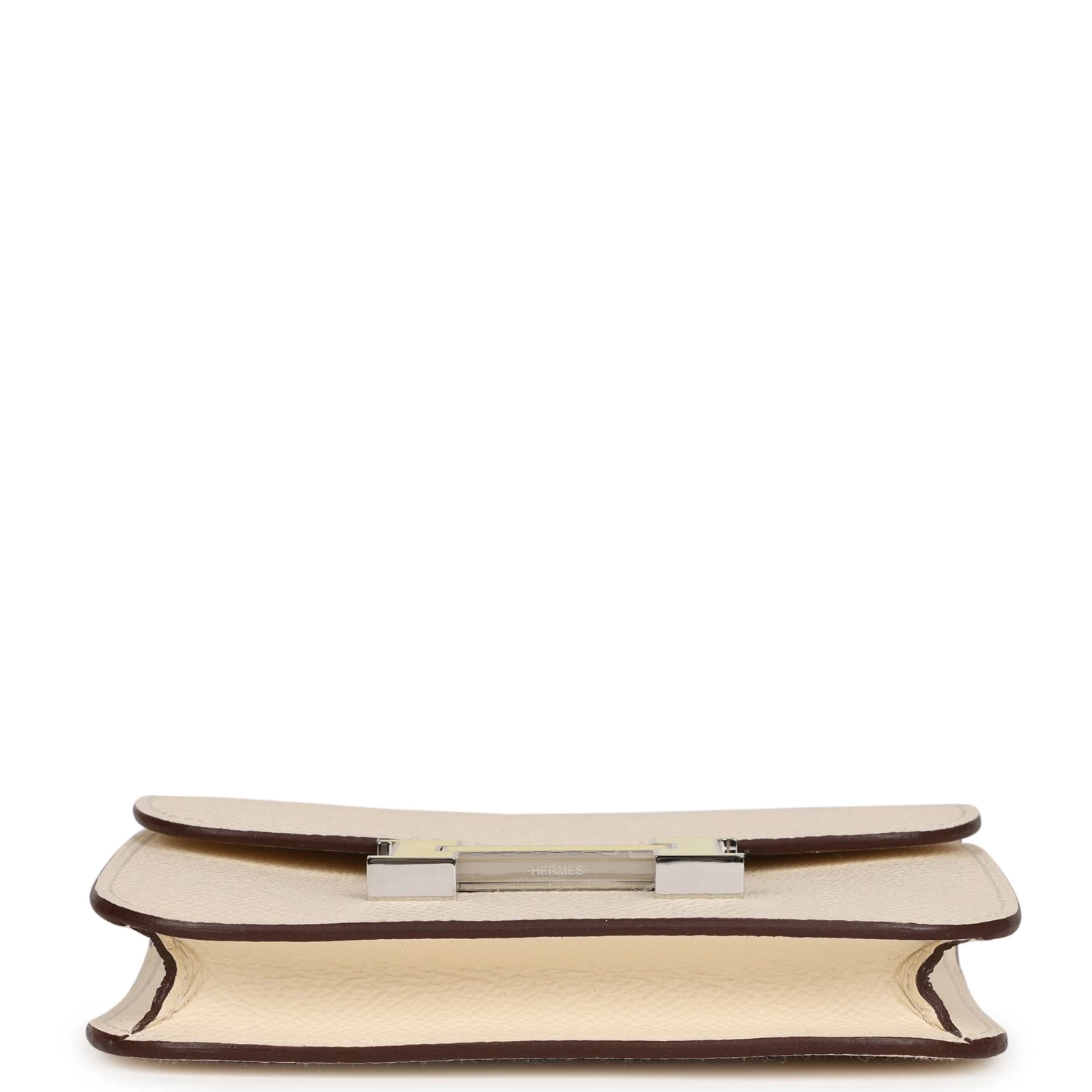 The interior is lined with Craie lambskin and features one slip pocket on the rear wall and one on the front wall pocket with snap “H” lock closure.