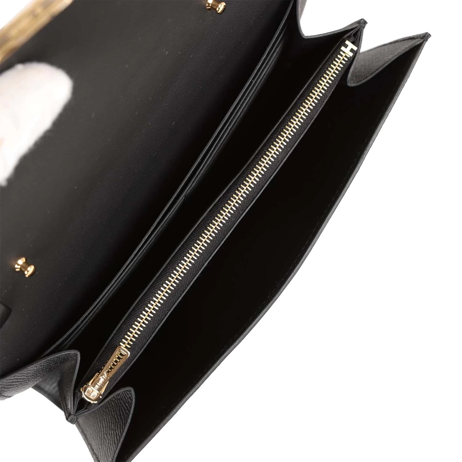 The interior is lined with Black epsom leather and two main compartments with six credit card slots and a zippered center compartment with Hermes H lock pull.