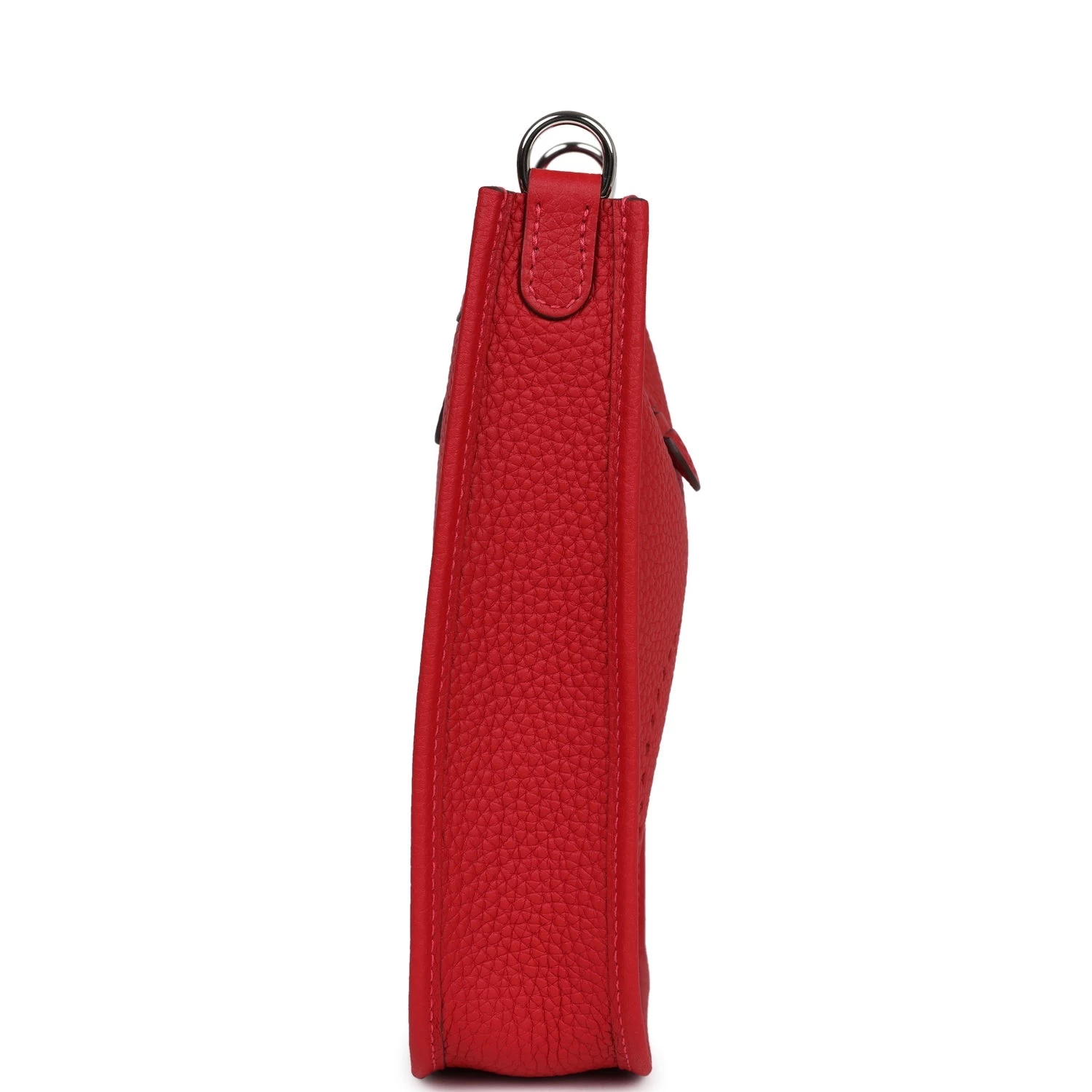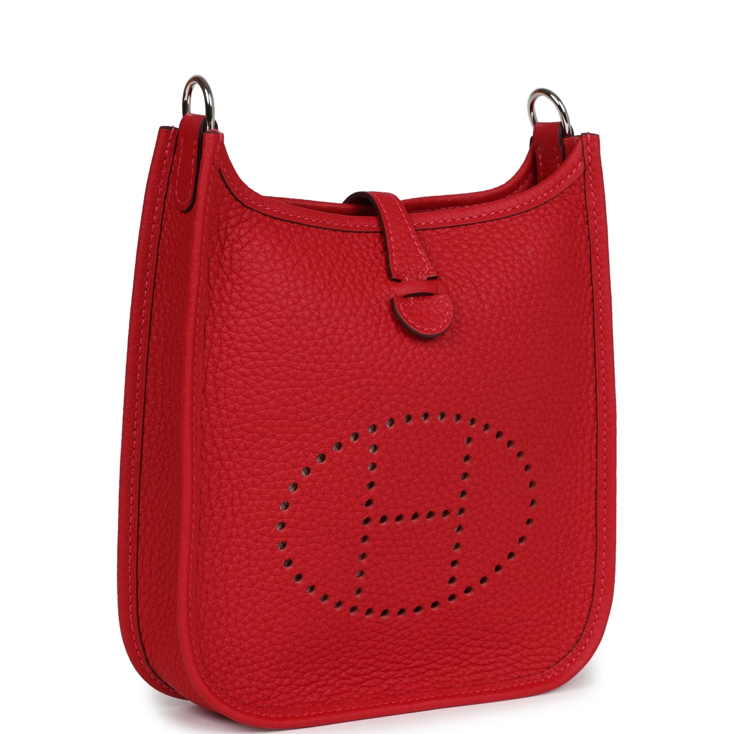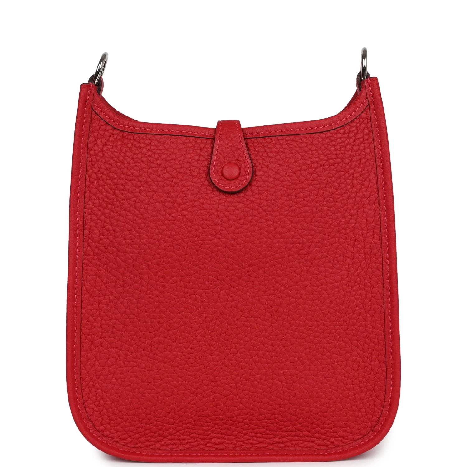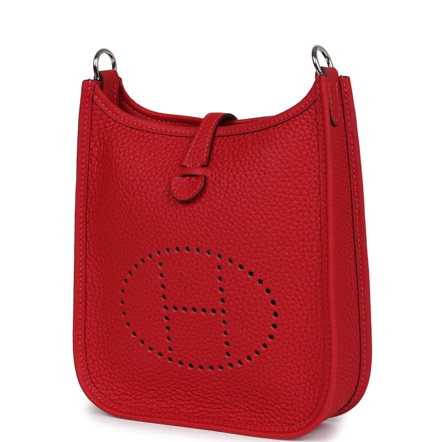 This Evelyne TPM is in Vermillion clemence leather with palladium hardware and features tonal stitching, pull tab top closure and a matching removable canvas and leather shoulder/crossbody strap.