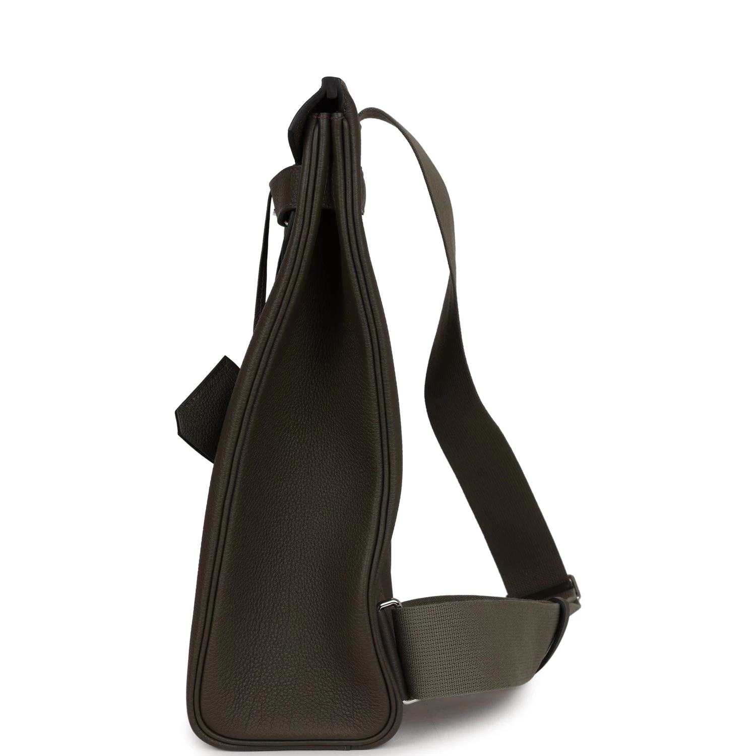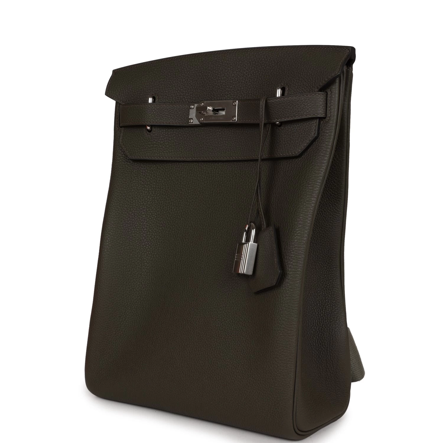 This HAC A Dos PM Backpack is in Vert De Gris Togo leather with palladium hardware and has tonal stitching, two straps with front toggle closure, and an adjustable shoulder strap.