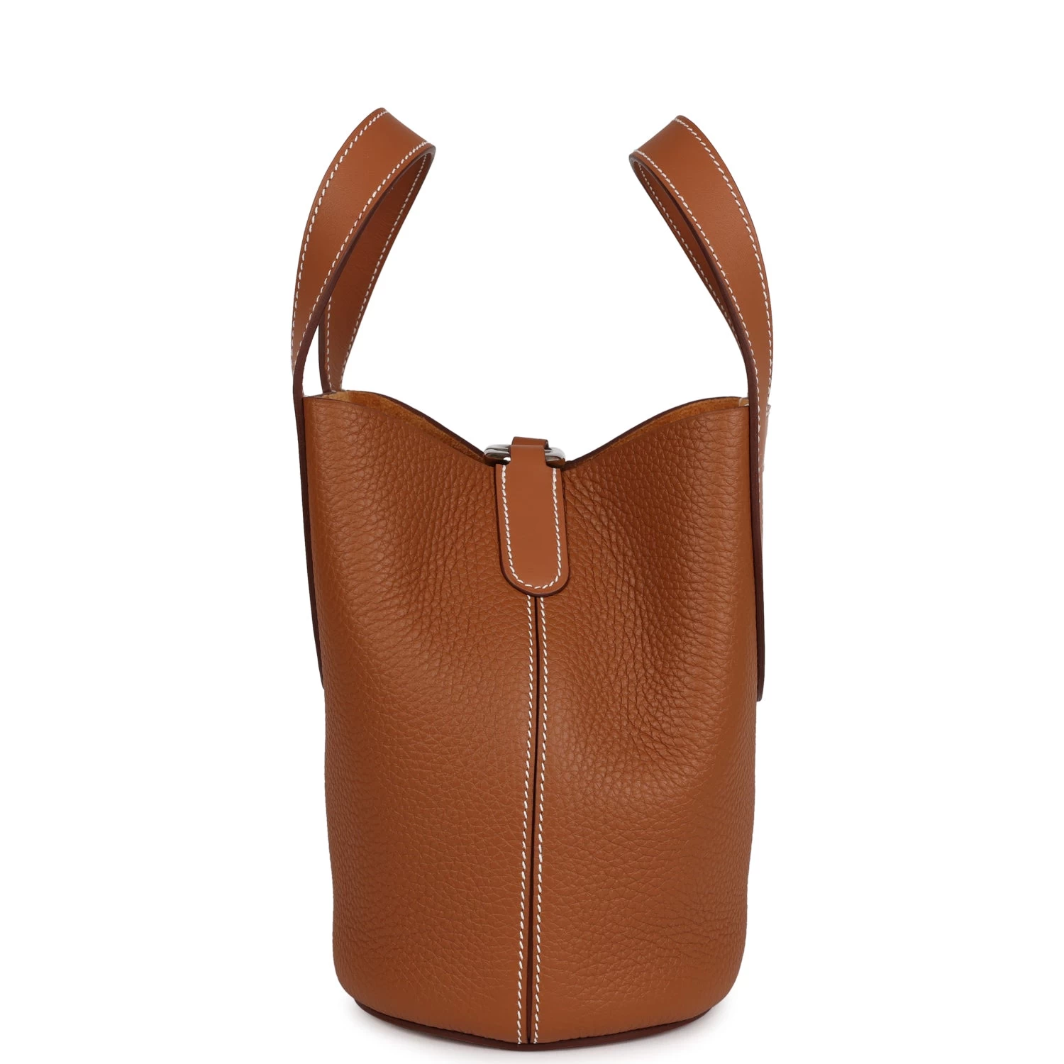 This In-The-Loop 18 is in Gold Clemence and Swift leather with palladium hardware and has contrast stitching, two Chaine d’Ancre shaped handles, single interior pocket, and Chaine d’Ancre shaped hook closure.
