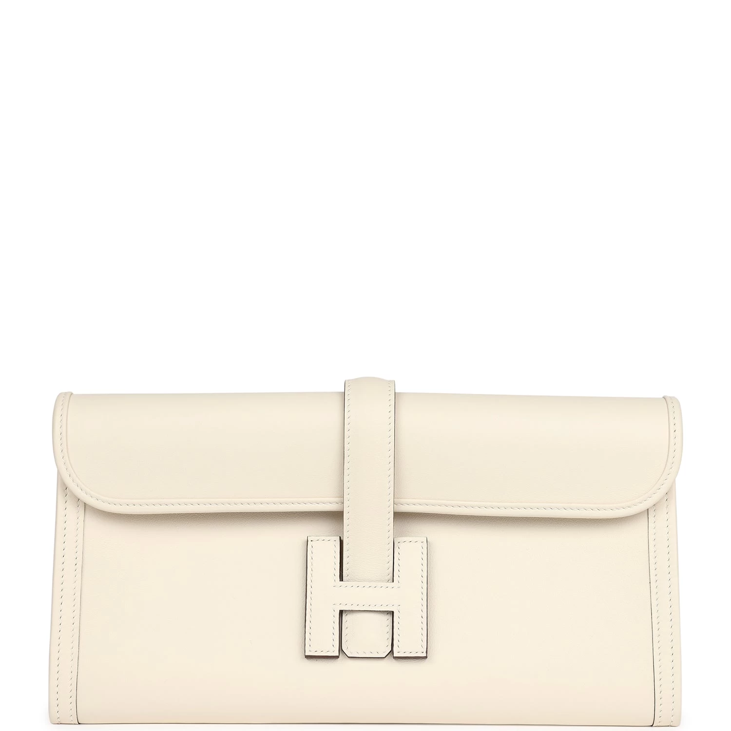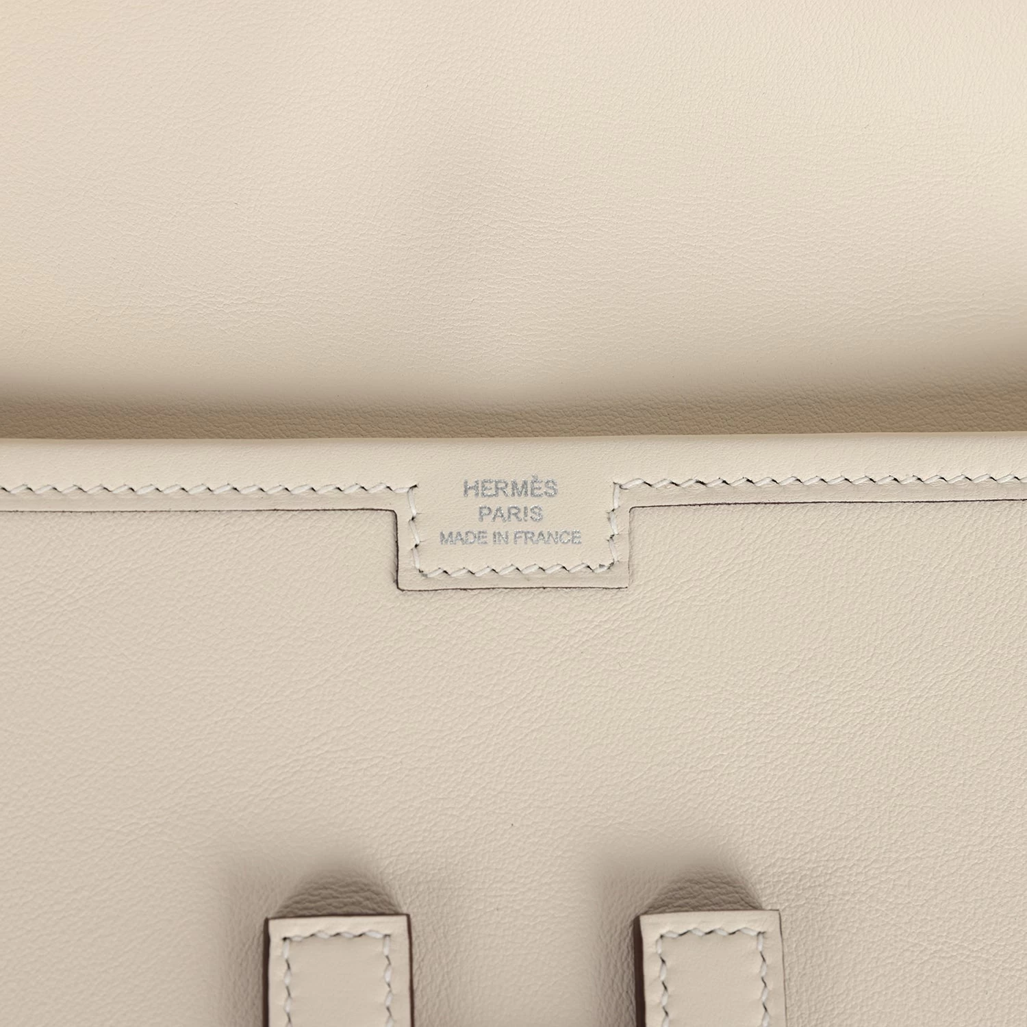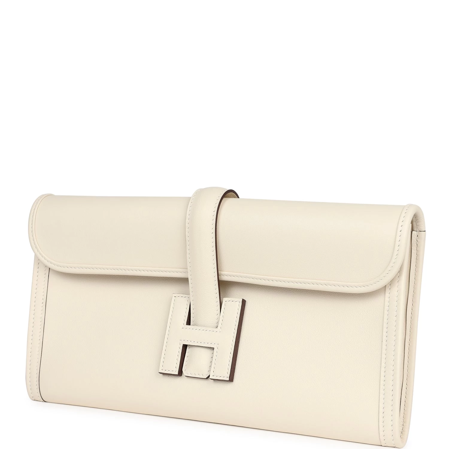 This Jige Elan is in Nata swift leather and features tonal stitching and a front “H” pullover tab closure.
