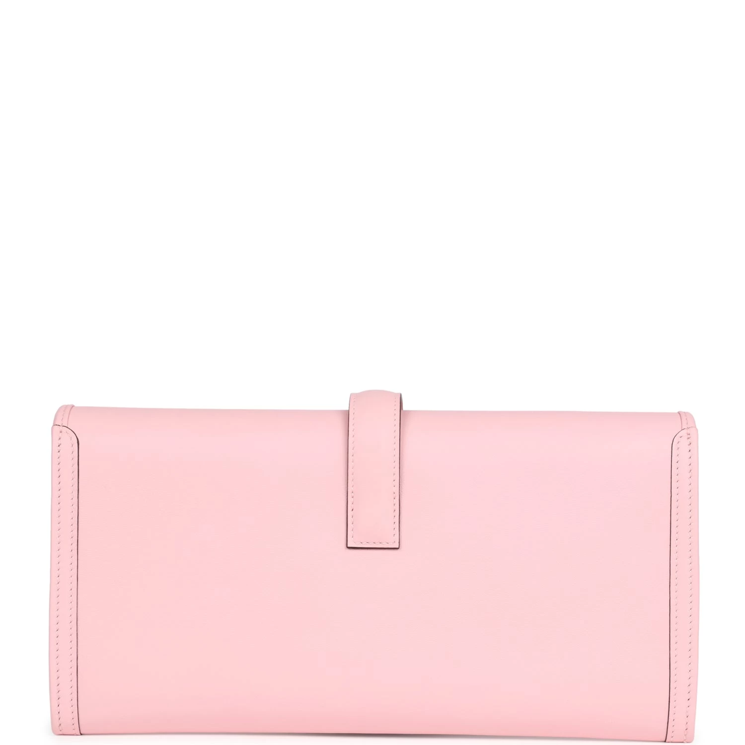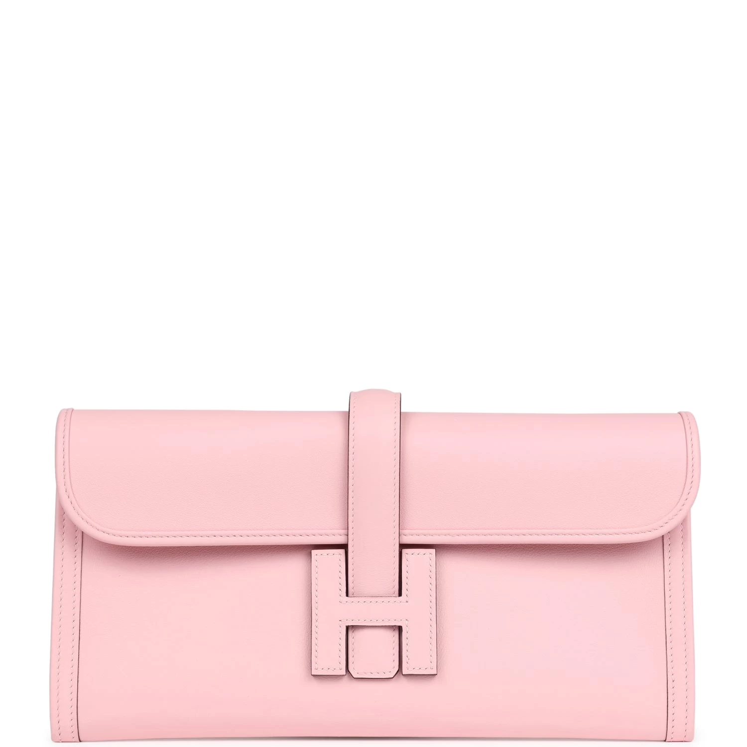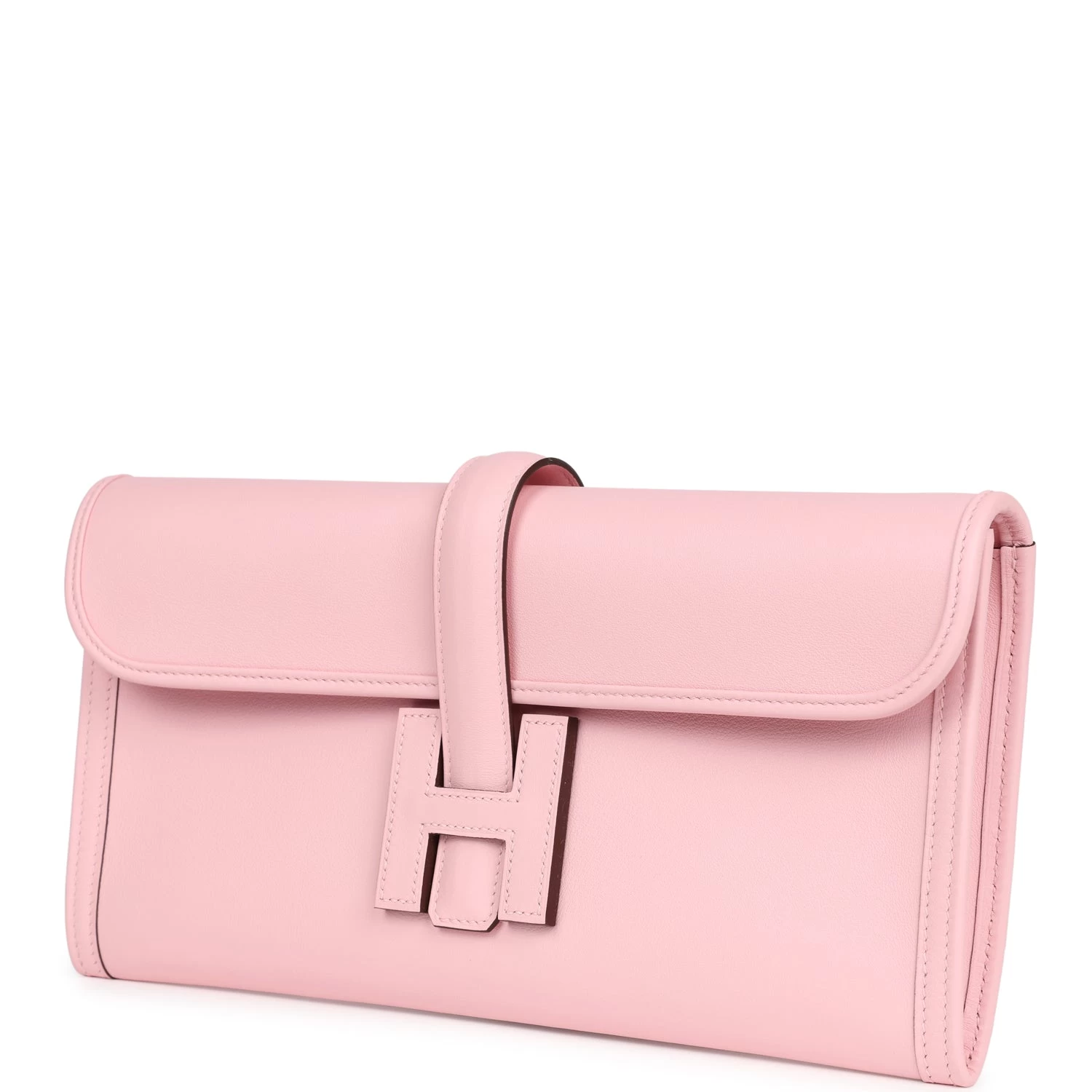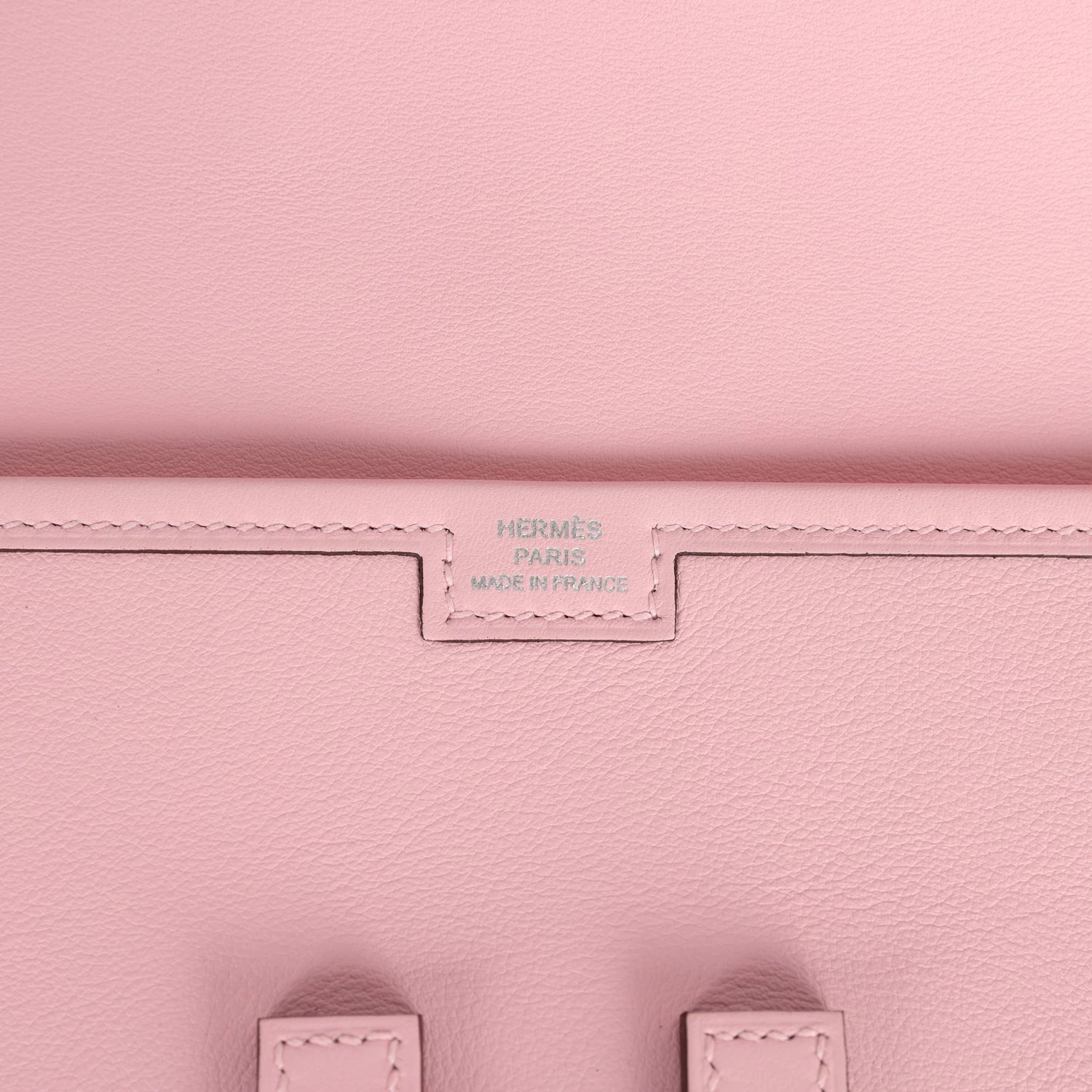 This Jige Elan is in Rose Sakura swift leather and features tonal stitching and a front “H” pullover tab closure.