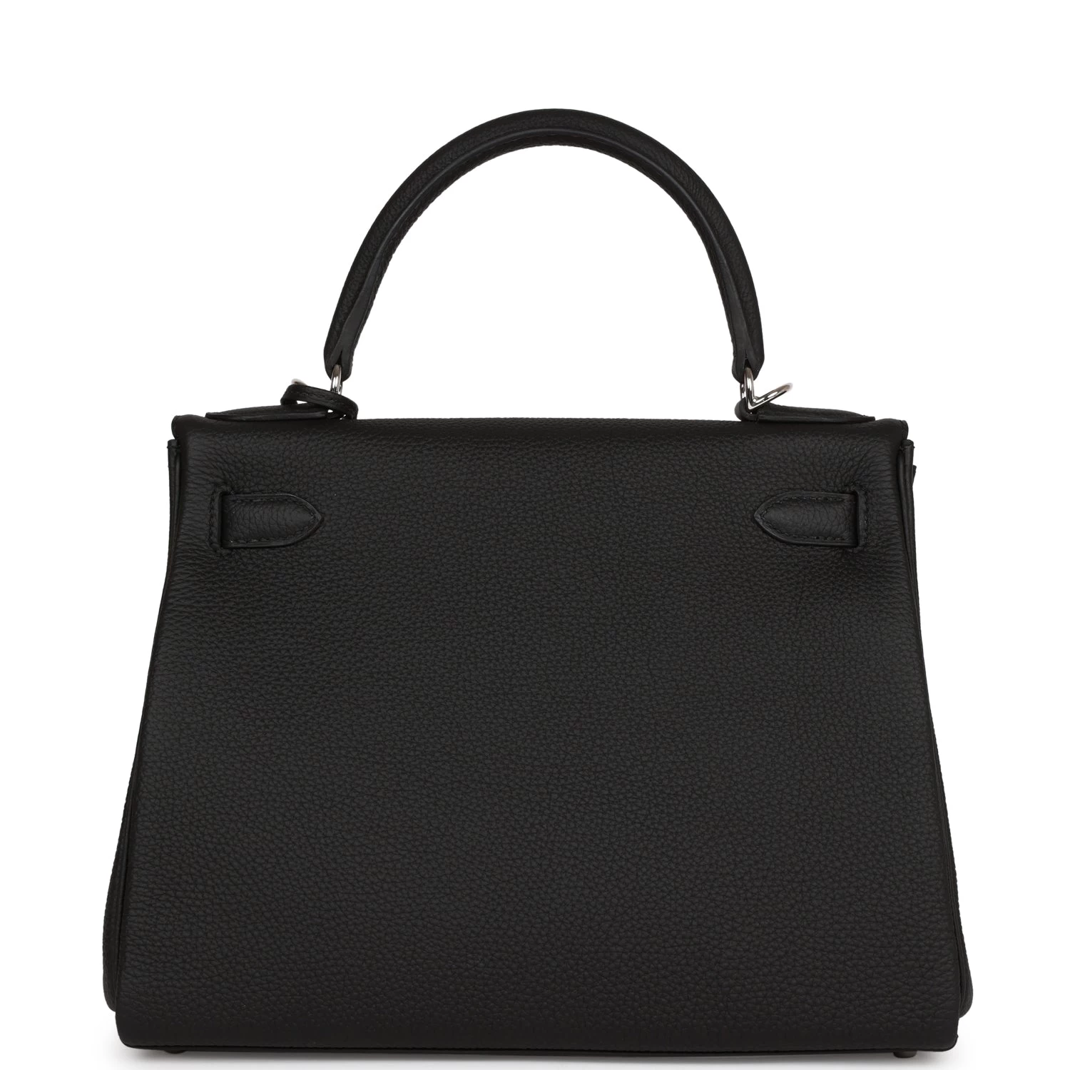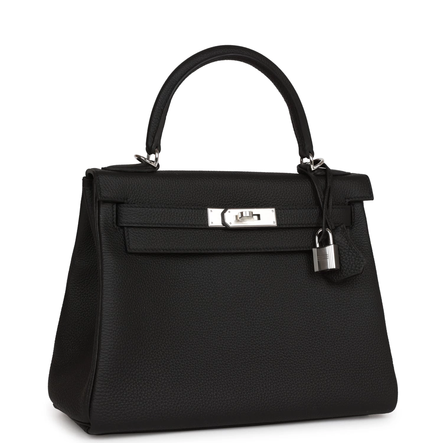 This Kelly, in the Retourne style, is in Black togo leather with palladium hardware and has tonal stitching, two strap with front toggle closure, clochette with lock and two keys, single rolled handle and removable shoulder strap.