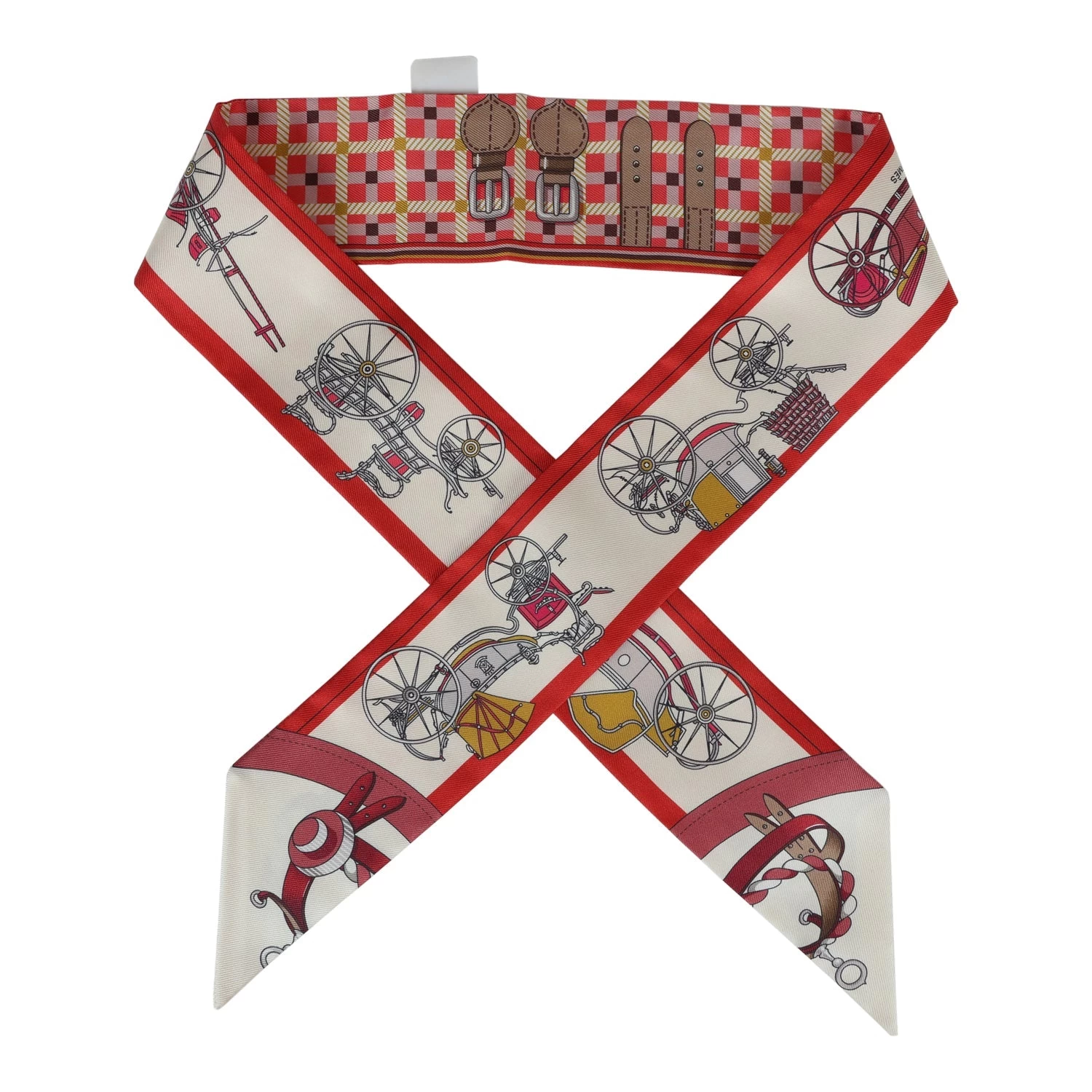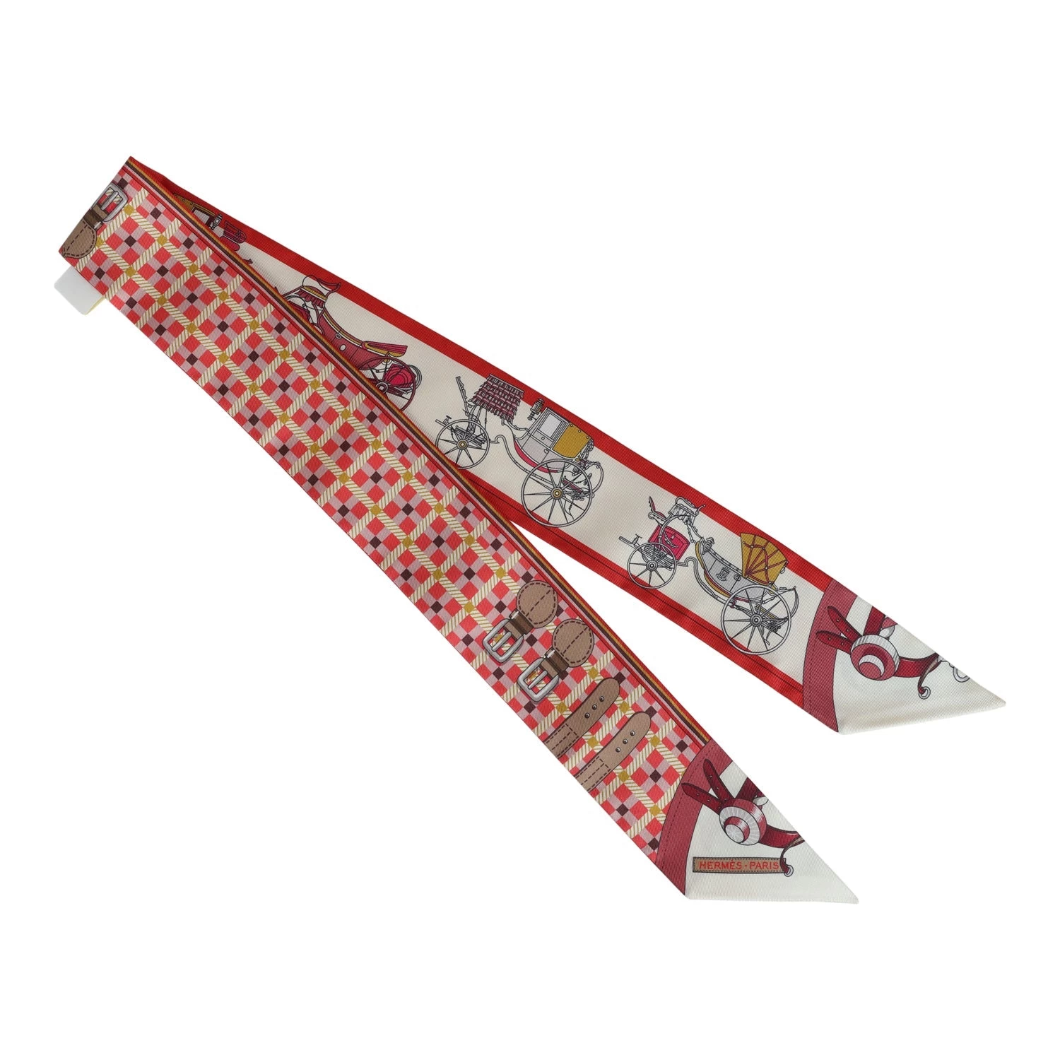 This silk twilly pair is in a Vanille and Grenadine colorway.