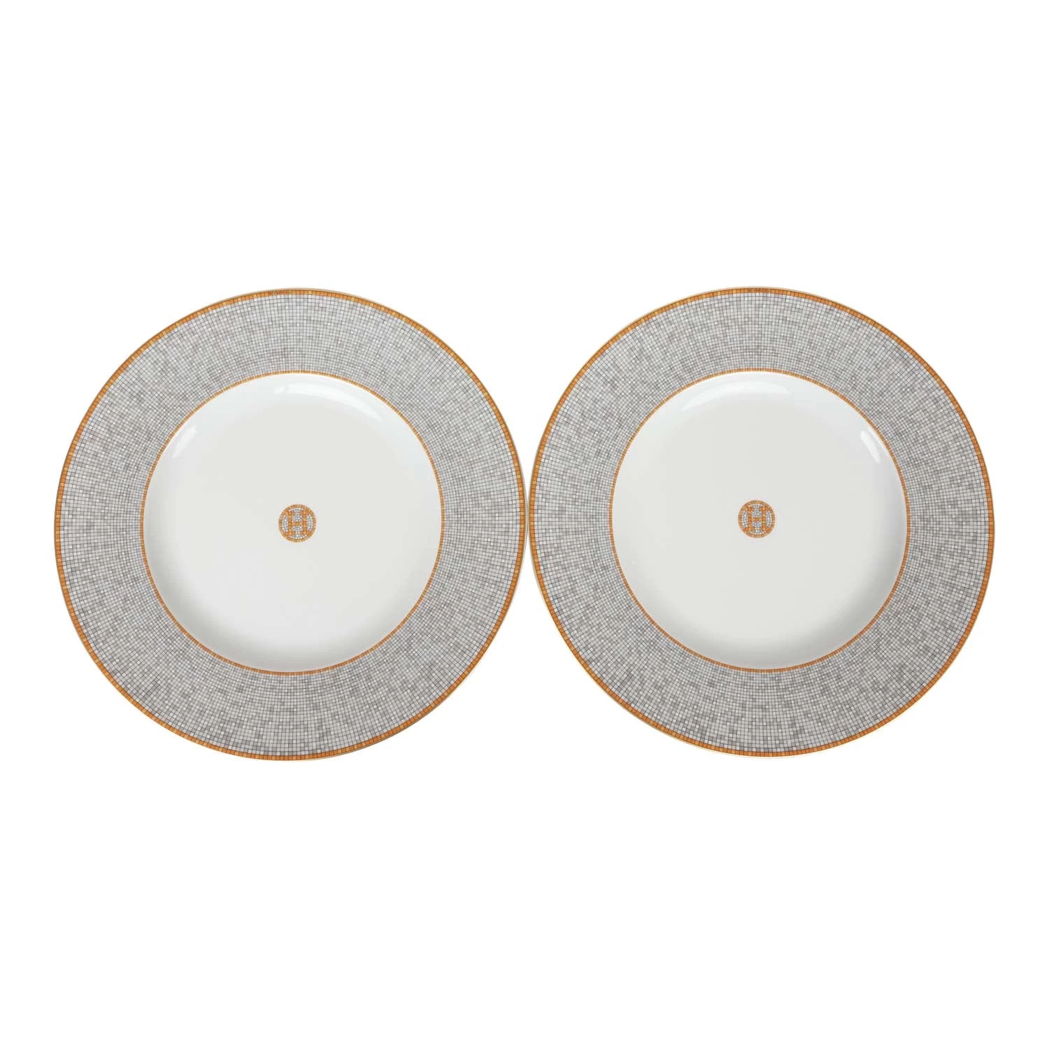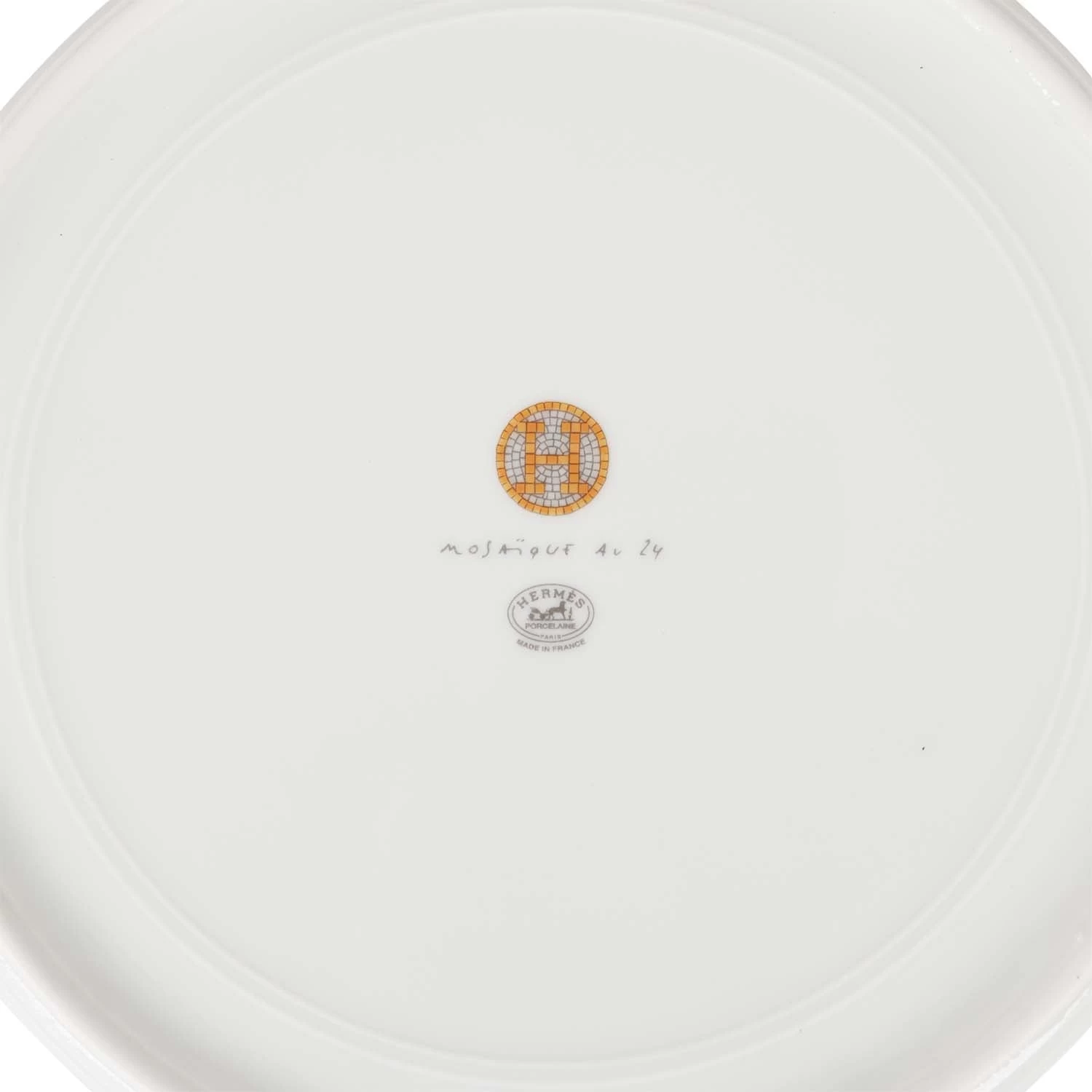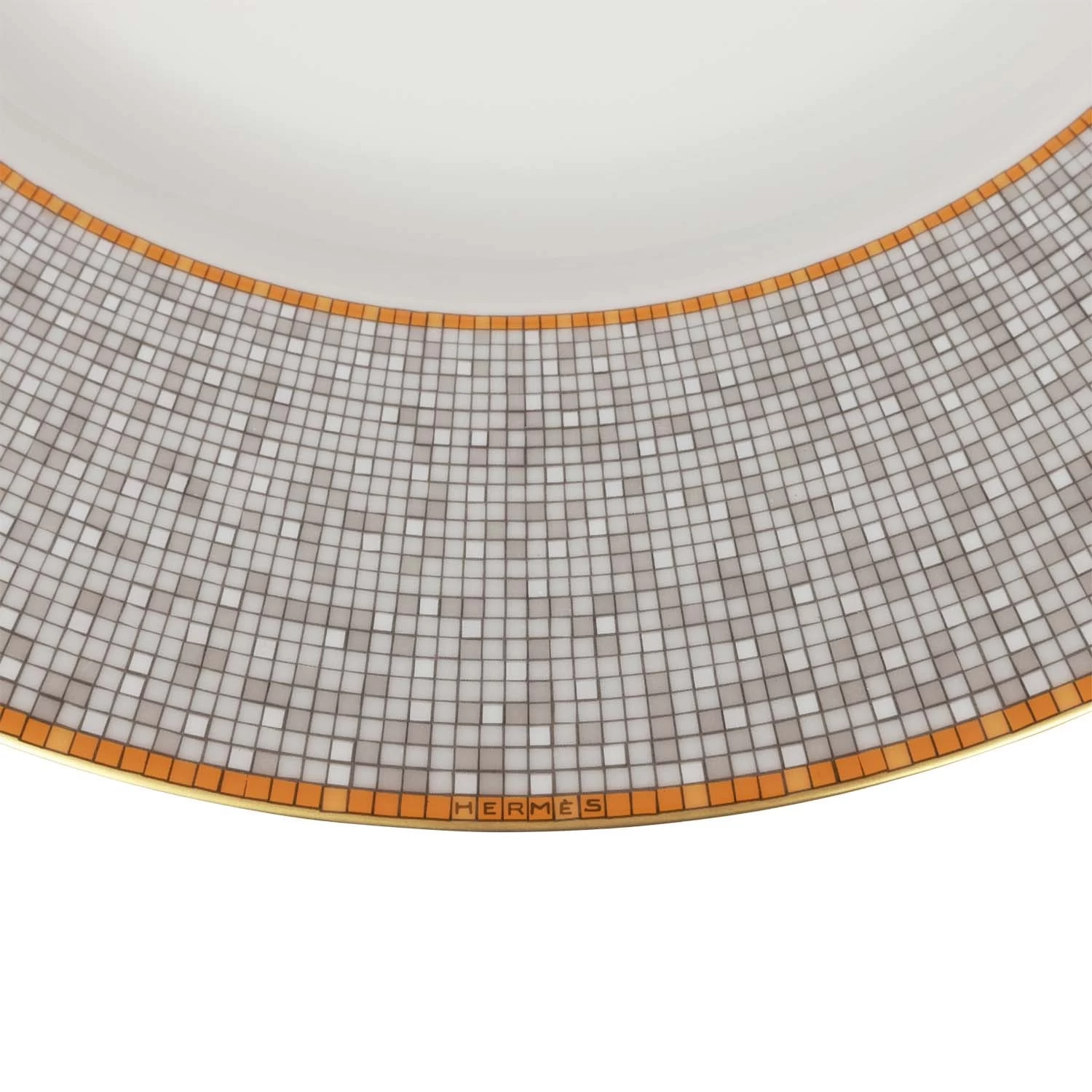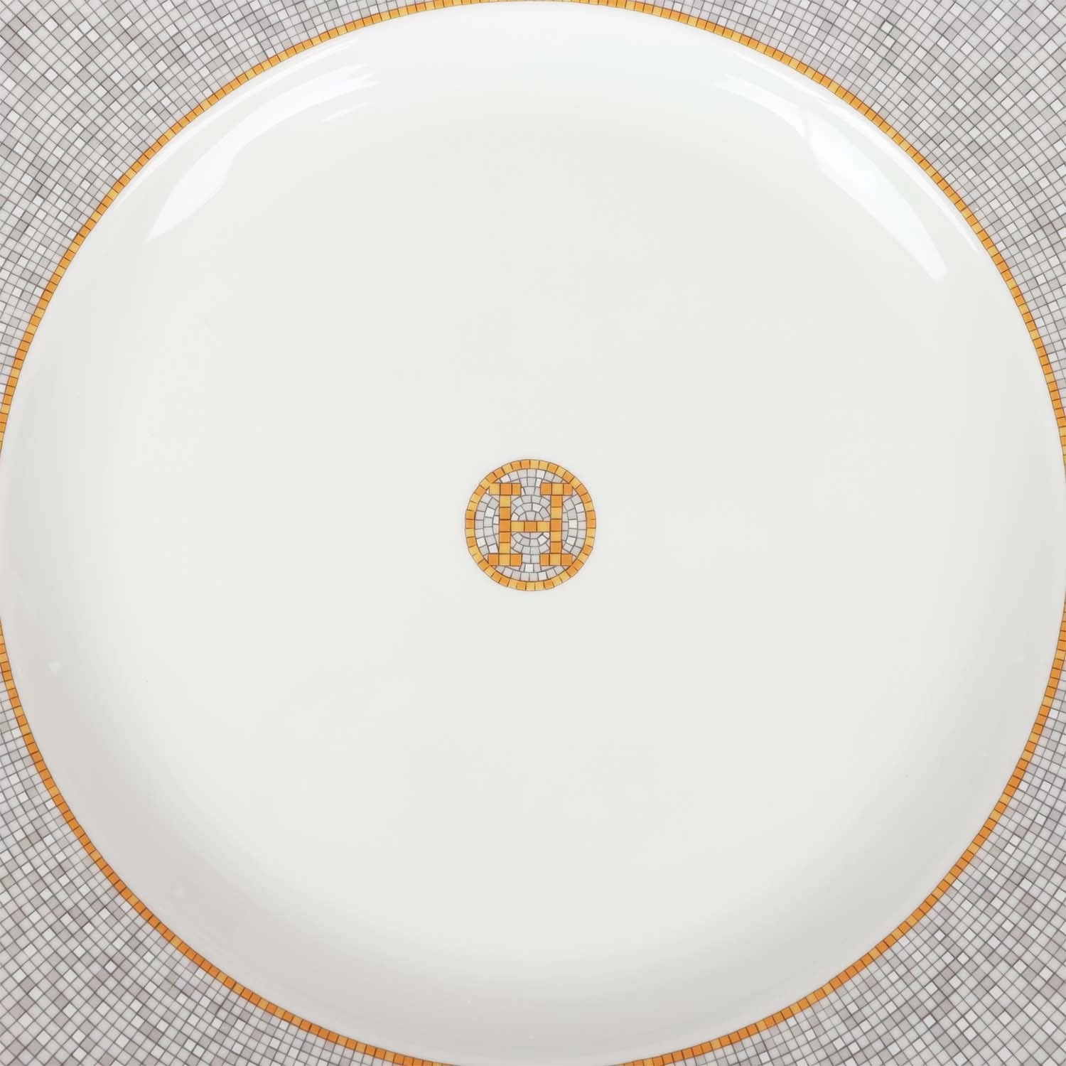 This “Mosaique Au 24” presentation plate is in gold and grey porcelain.