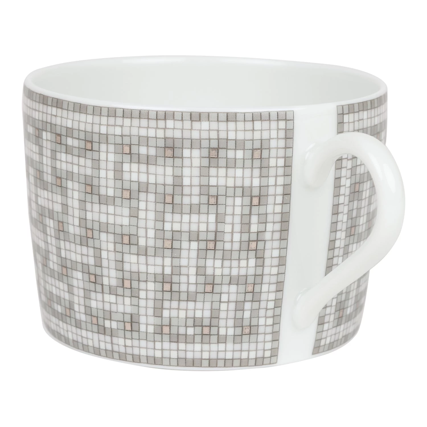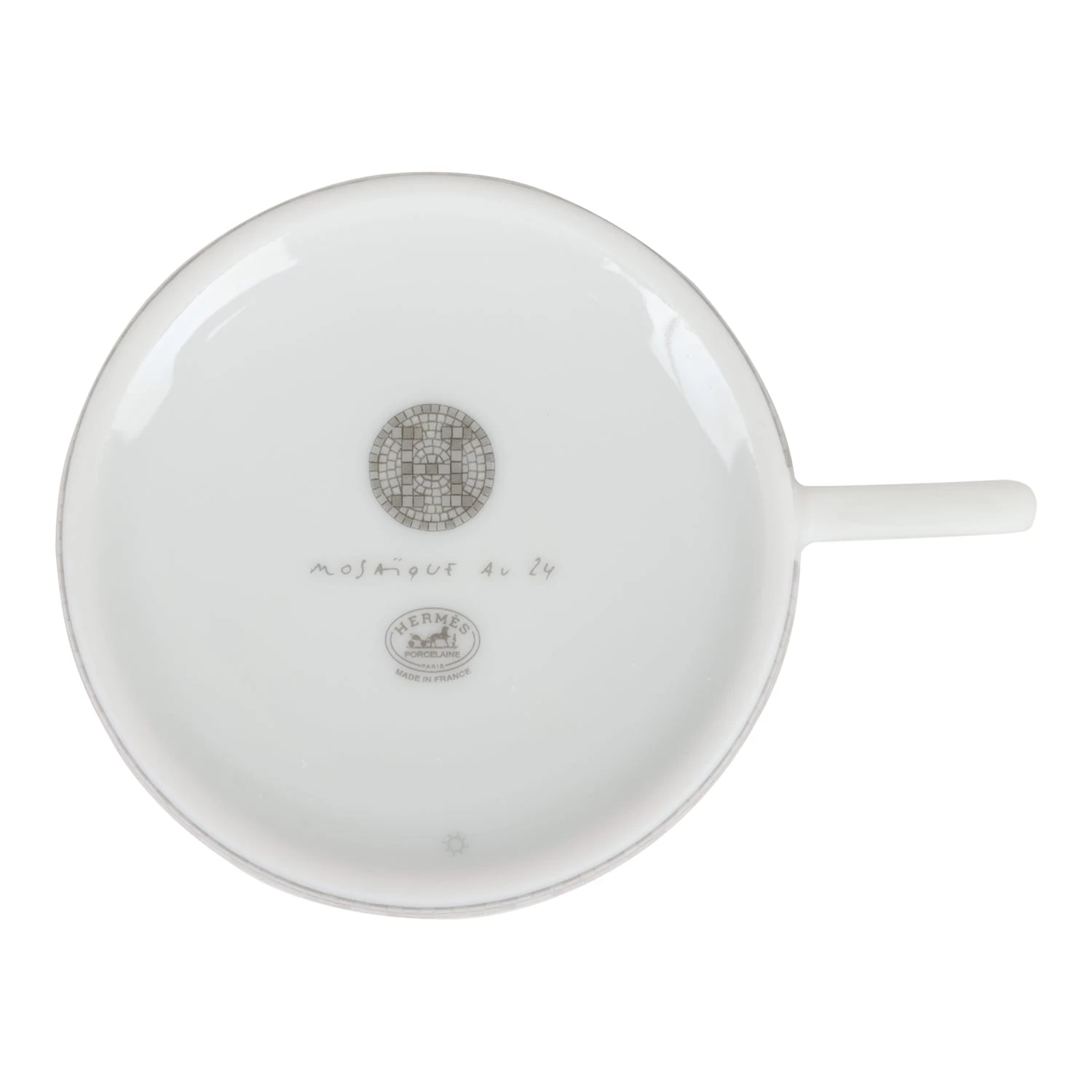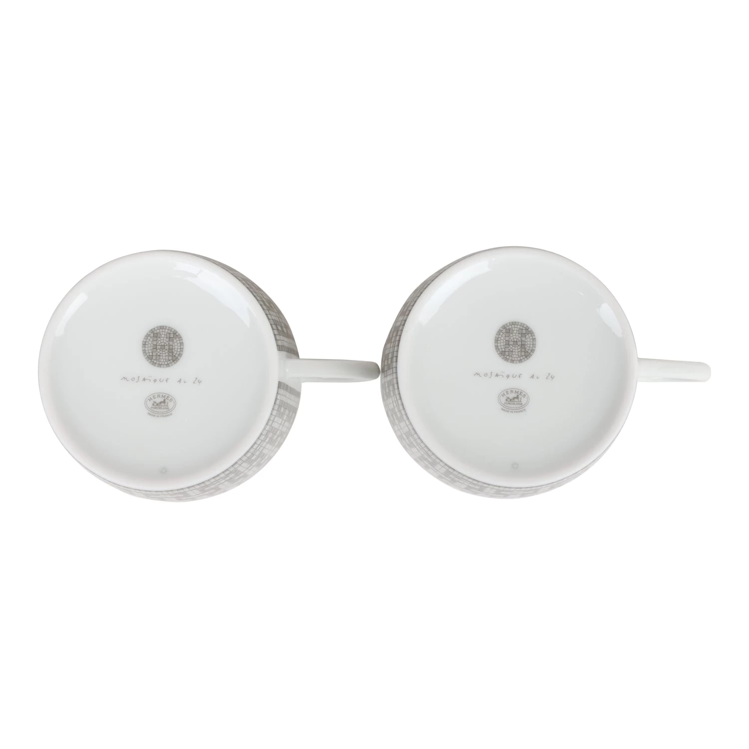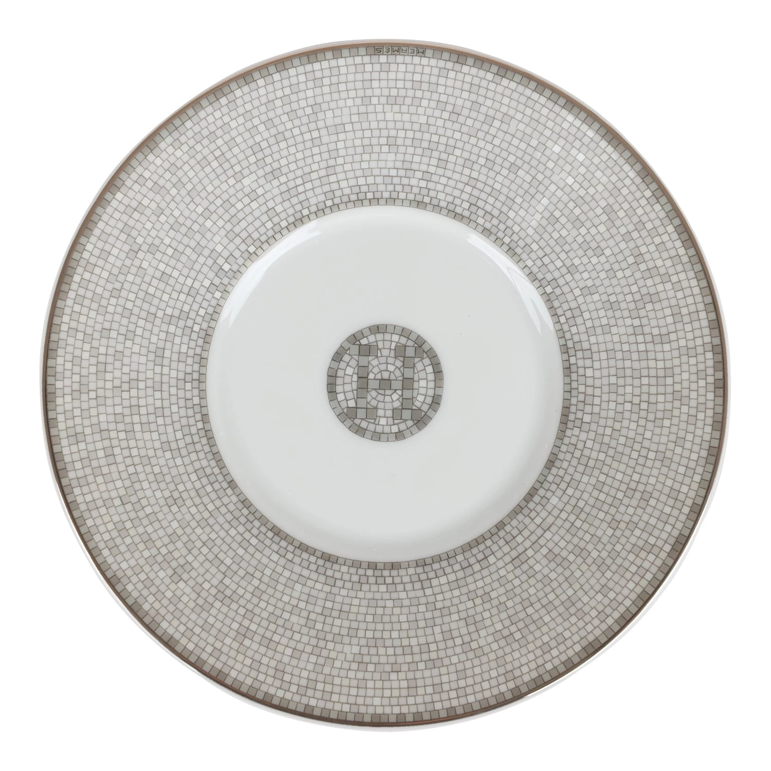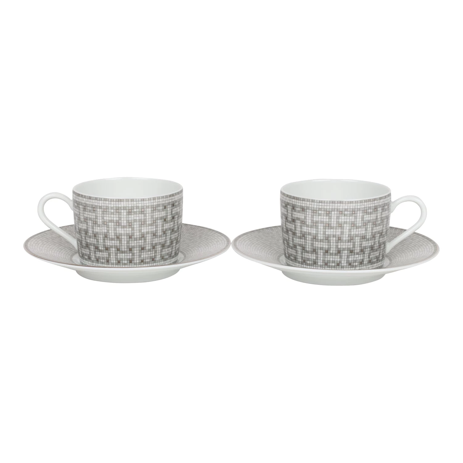 Hermes “Mosaique Au 24” tea cup and saucer set of porcelain in platinum.