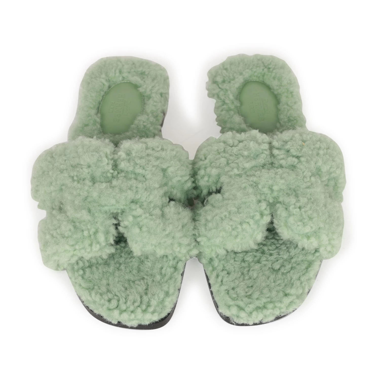 This pair of Oran Sandals are in Vert D’eau woolskin and feature the iconic H crossover strap.