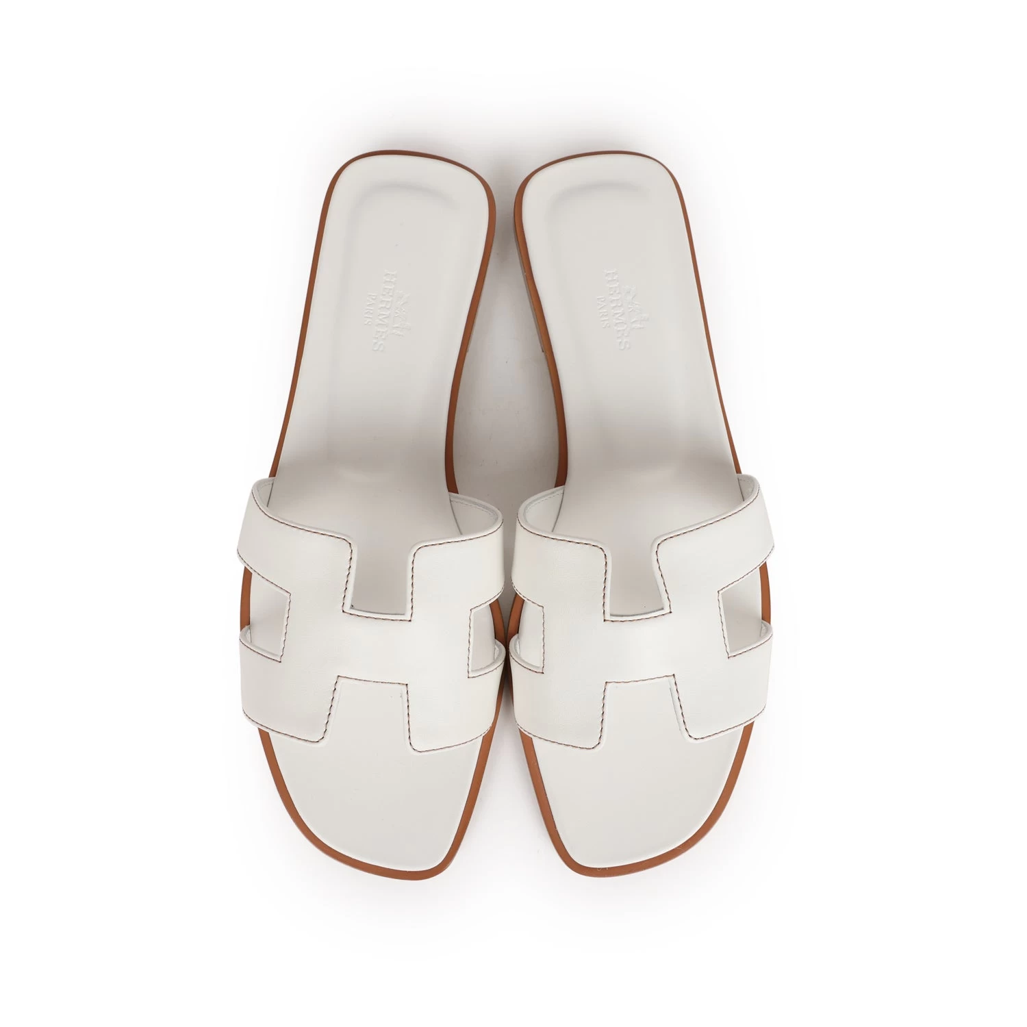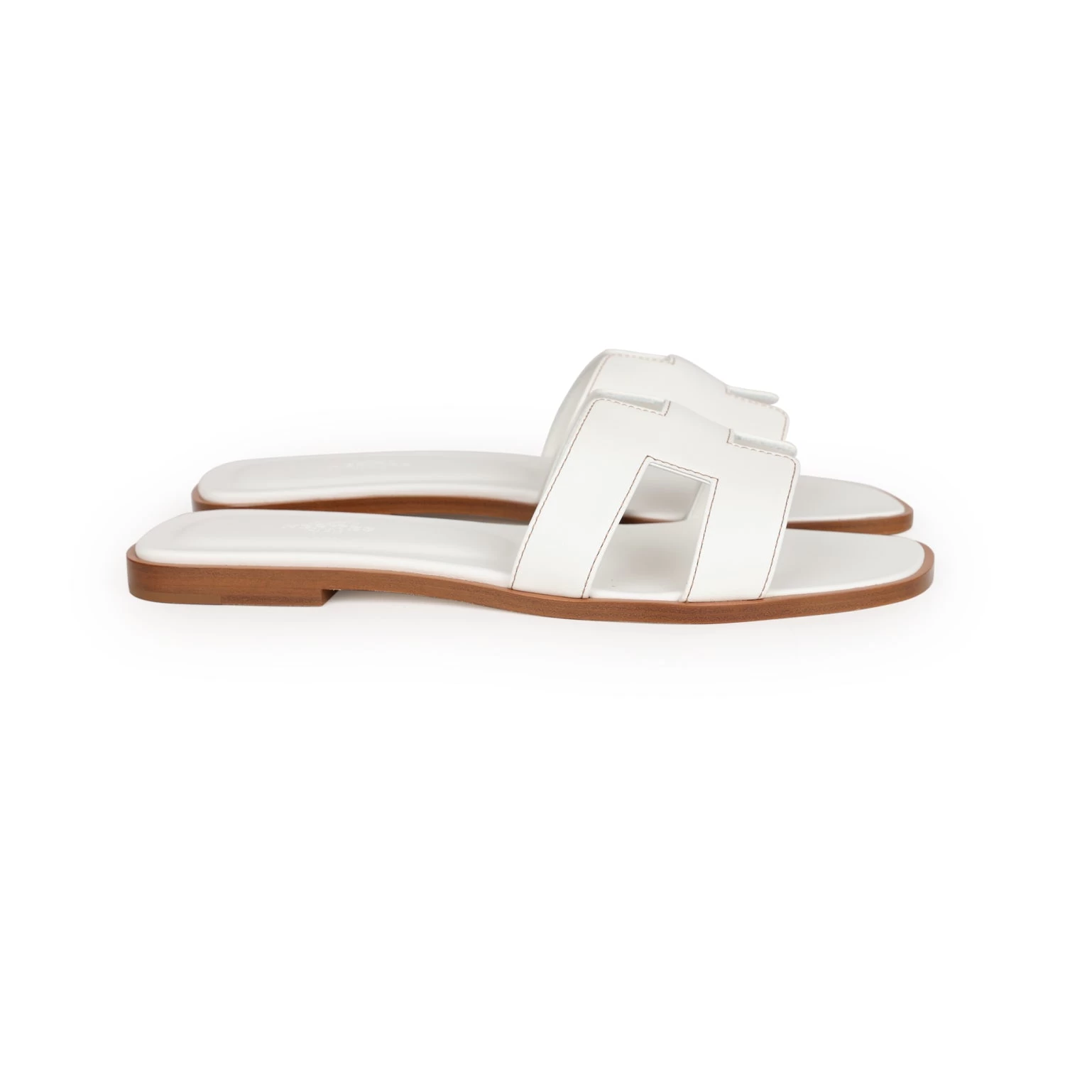 This pair of Oran Sandals are in white box leather with contrast stitching and feature the iconic H crossover strap.
