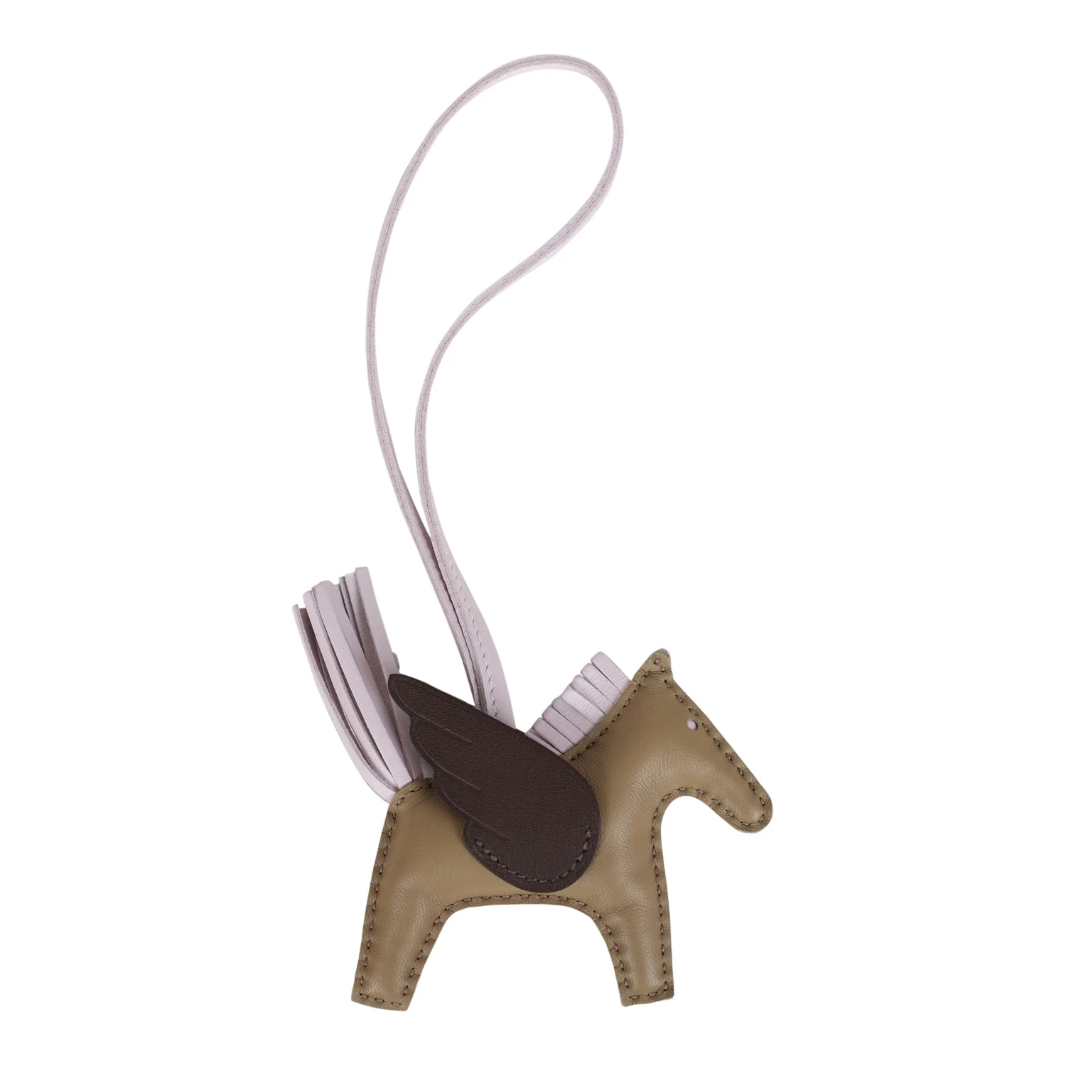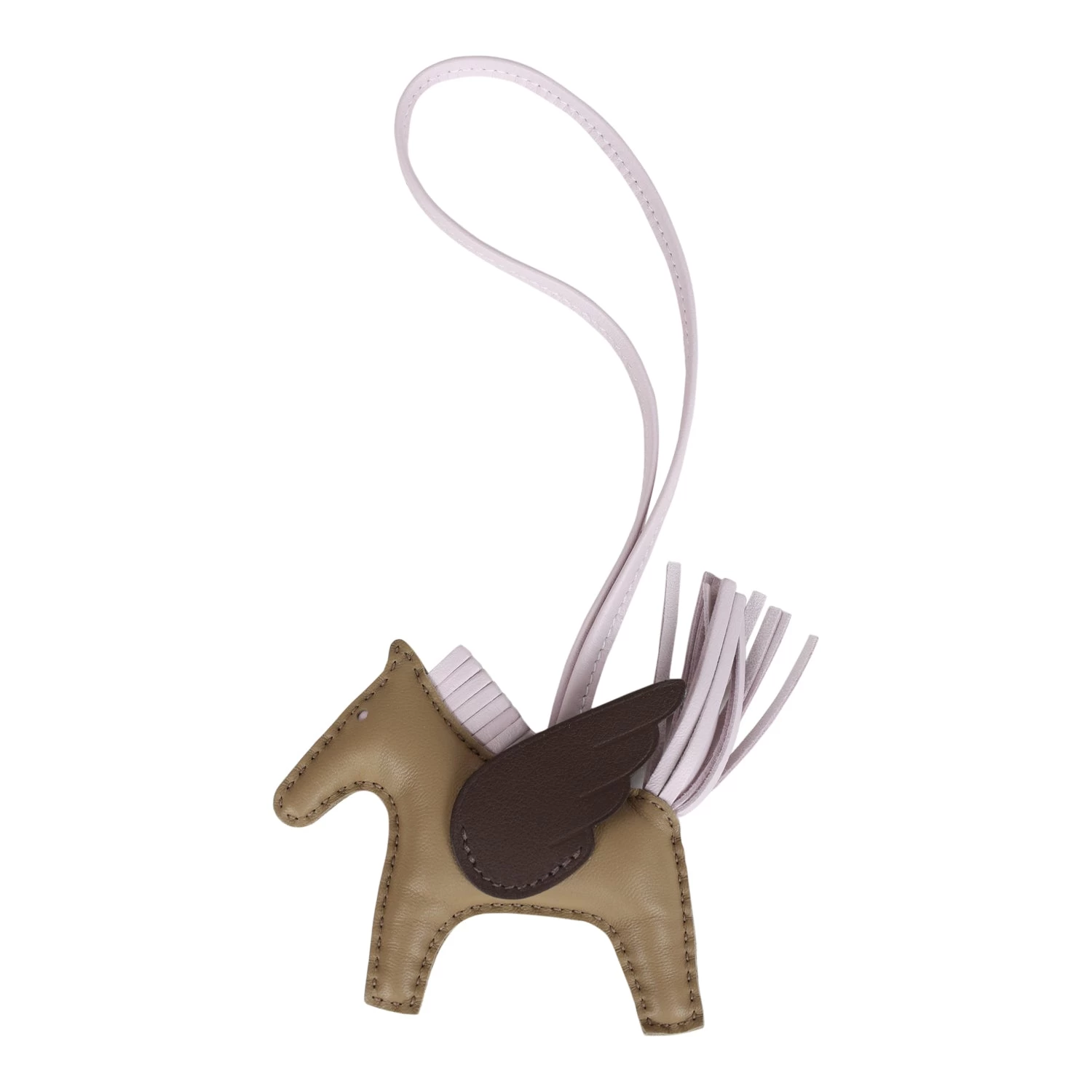 This Pegasus Rodeo bag PM charm is in Beige, Marfa, Mauve Pale and Moka Milo lambskin leather with tonal stitching.