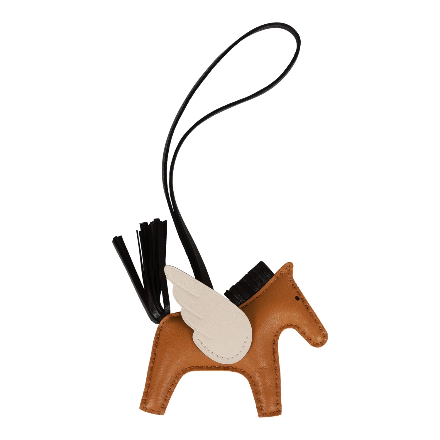 This Pegasus Rodeo bag PM charm is in Chai, Black, and Nata lambskin leather with tonal stitching