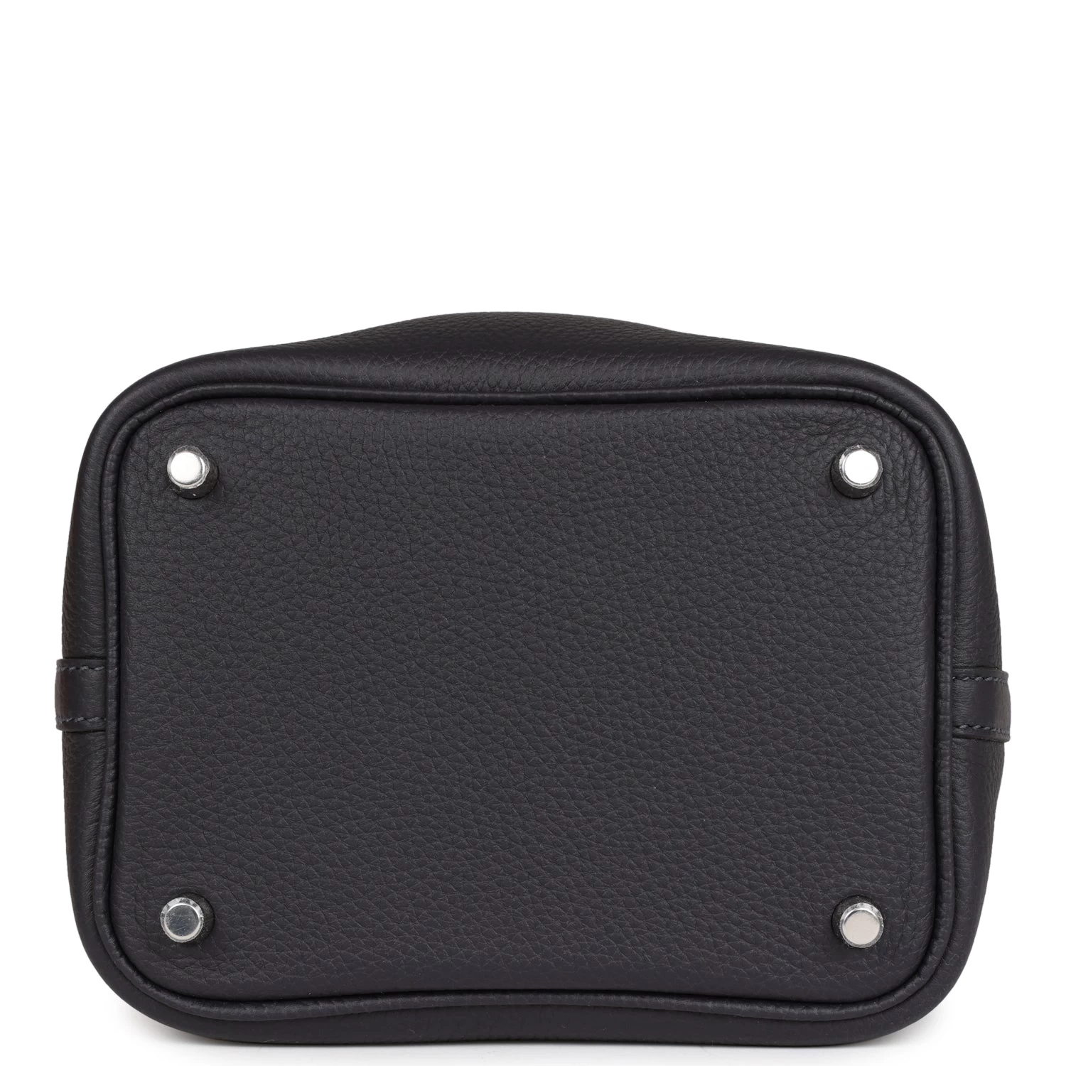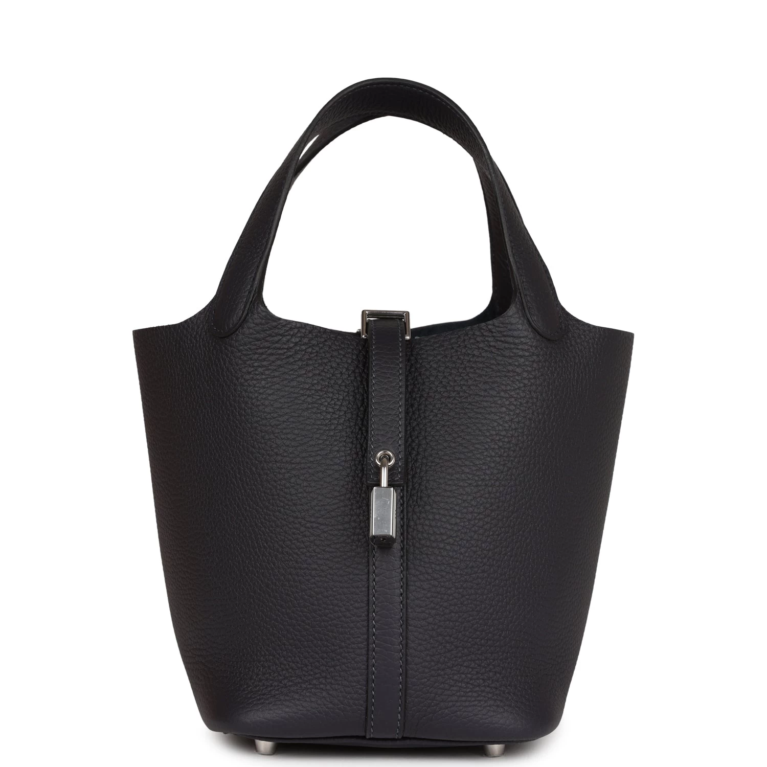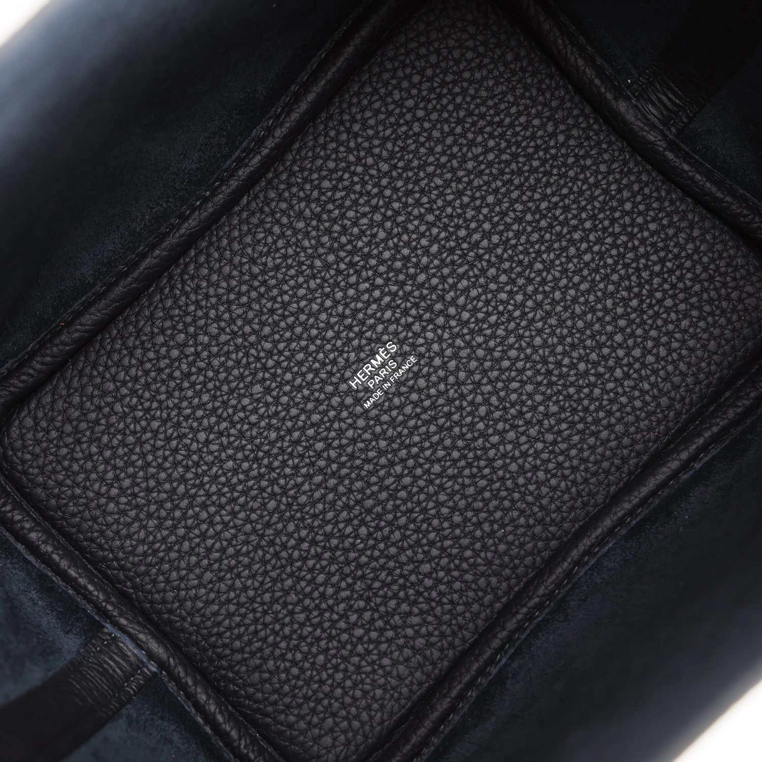 This Picotin Lock is in Caban clemence leather with palladium hardware and has tonal stitching with two top handles.