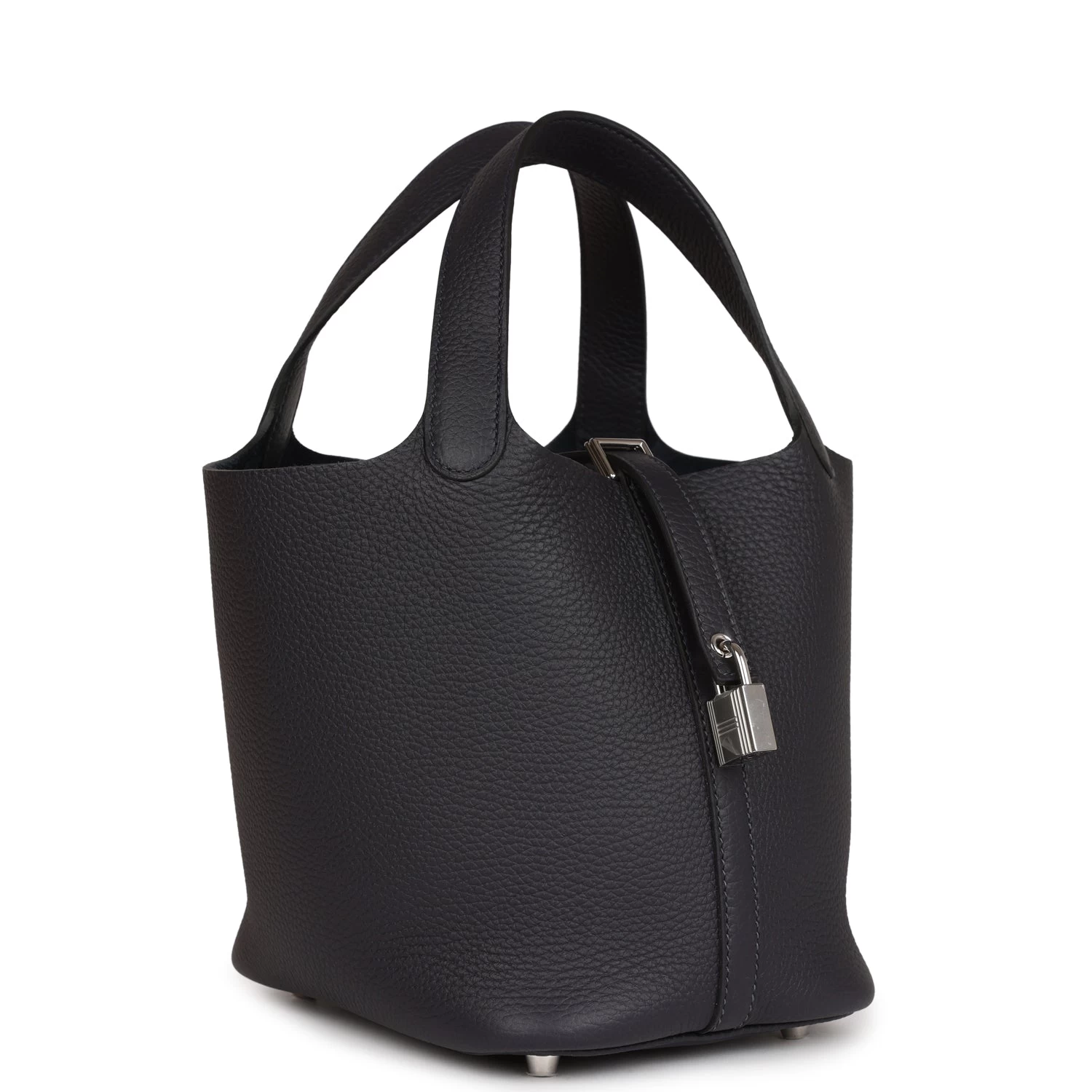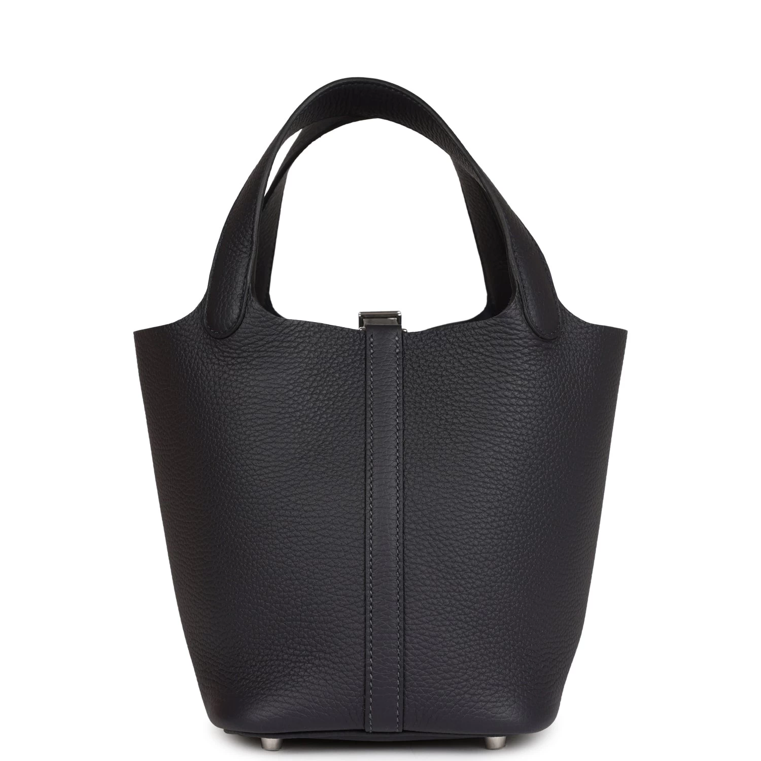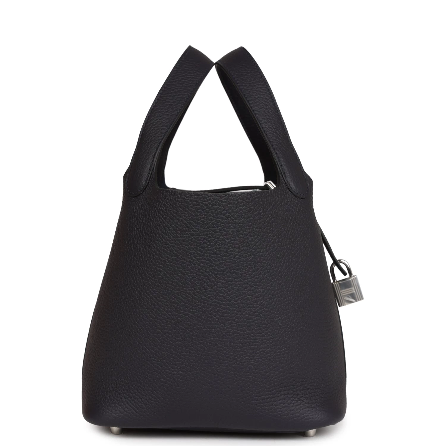 This Picotin Lock is in Caban clemence leather with palladium hardware and has tonal stitching with two top handles.