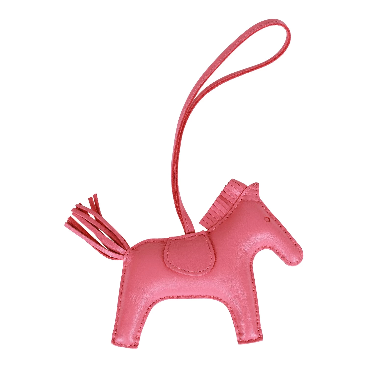 This Grigri Rodeo bag charm is in Rose Azalee Milo lambskin leather and matching mane, tail, saddle and holder.